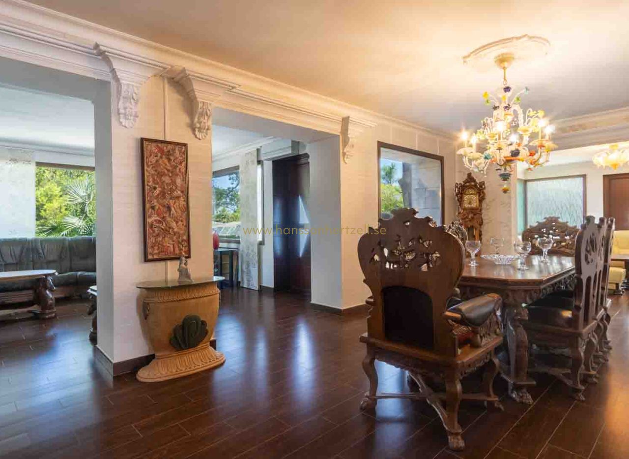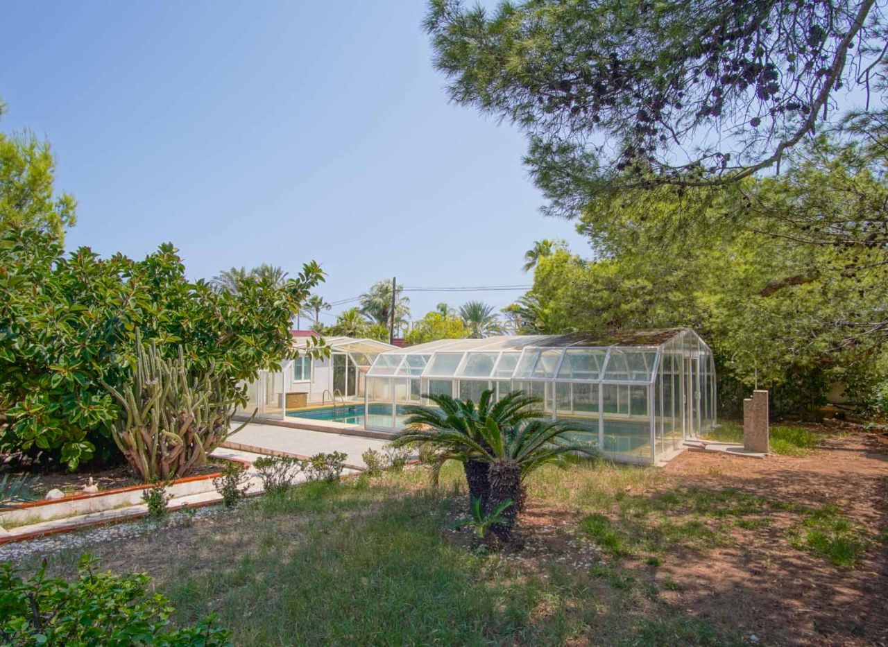 Nestled on a large private plot surrounded by Mediterranean vegetation, this unique property in Las Rotas represents an exceptional opportunity in one of the most desirable areas of Dénia. Just 100 meters from the iconic coves of Las Rotas, known for their natural beauty, crystal-clear waters, and excellent areas for swimming, snorkeling, and enjoying the sea, this house combines privacy, space, and an unbeatable location. Within walking distance are some of the coast's most popular restaurants, and the center of Dénia is also a comfortable stroll away. The property stands out not only for its size and location, but also for the versatility of its spaces, with multiple independent constructions offering countless possibilities. Although it is in habitable condition, it is in need of a general renovation, making it an ideal option for those looking to create a custom home or make an investment with great potential for appreciation. The main villa, spread over two floors, offers spacious and bright rooms. On the ground floor, a generous entrance hall leads to an elegant living-dining room, a welcoming family room, a separate kitchen, two bedrooms, a large dressing room, a full bathroom, and a guest toilet. Upstairs, there are two additional bedrooms—one with an en-suite bathroom—a living room, and a guest toilet. This floor opens onto a large terrace with stunning views of the trees and the sea, a perfect place to relax at sunset or enjoy summer nights. In addition to the main residence, the property has three additional buildings. The first is a separate apartment with two bedrooms, a living-dining room, a kitchen, and a guest toilet, ideal for accommodating family, guests, or even as a tourist accommodation. The second building is a space designed for leisure and relaxation, with a living room with a fireplace, a charming library, and an impressive basement wine cellar, perfect for wine lovers. The third building, located next to the pool, offers a living room with direct access to a sauna, ideal for relaxing after a day at the beach or an active day outdoors. Dénia, with its castle, marina, and wide-ranging gastronomic offering, is a vibrant city full of life year-round. The Las Rotas area, in particular, is renowned for its natural charm, with a promenade bordering rocky coves and offering quiet spots to enjoy the sea, much appreciated by locals and visitors alike. This property has all the ingredients to become a spectacular family home, a dream second home, or a profitable investment in a prime location. A place with history, character, and all the potential to transform into something truly extraordinary.