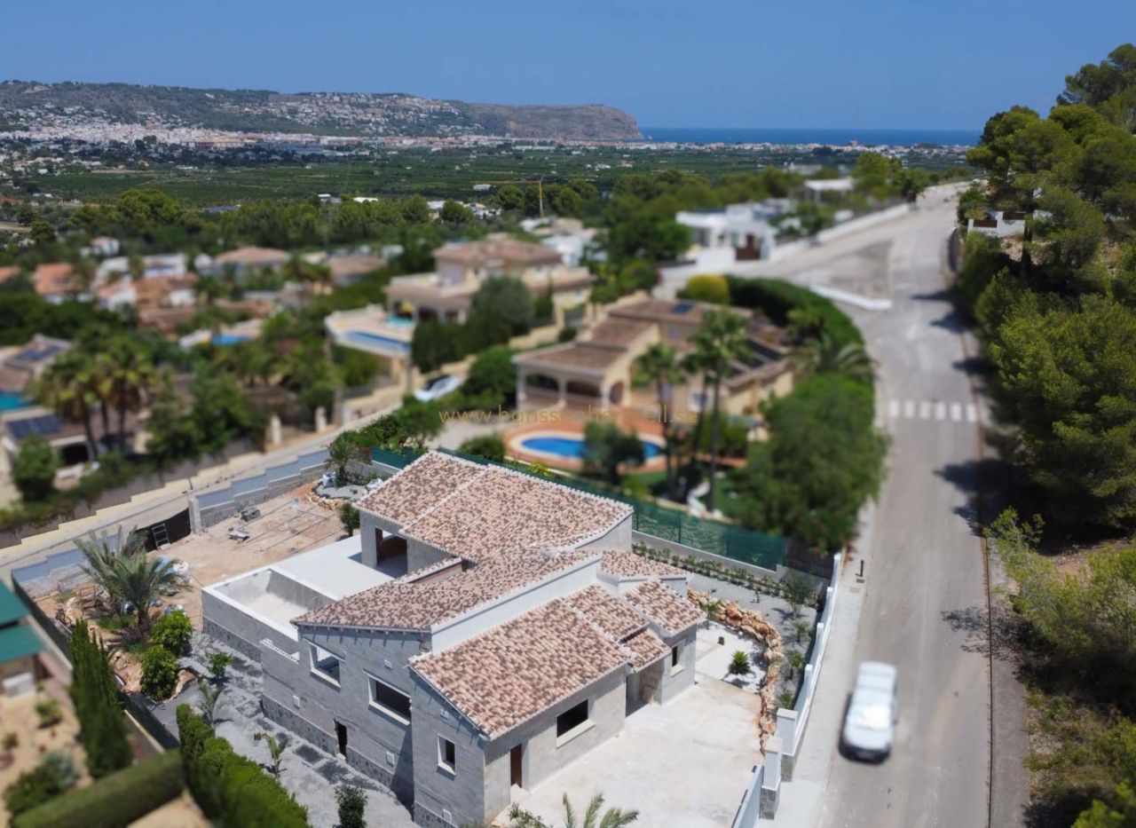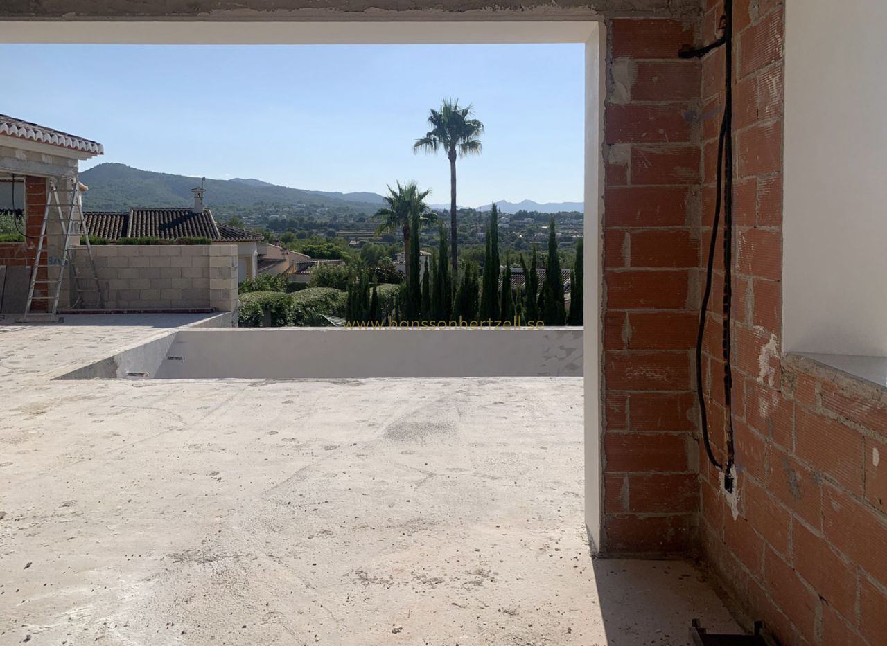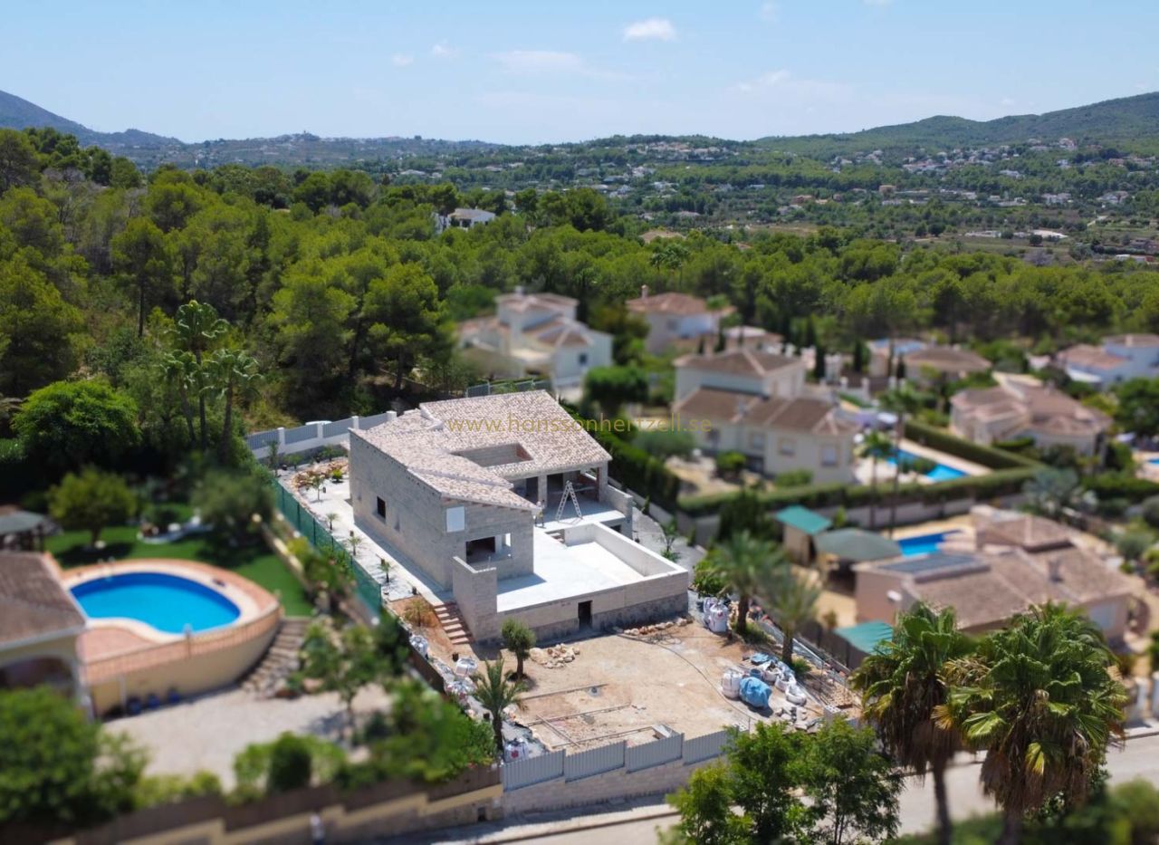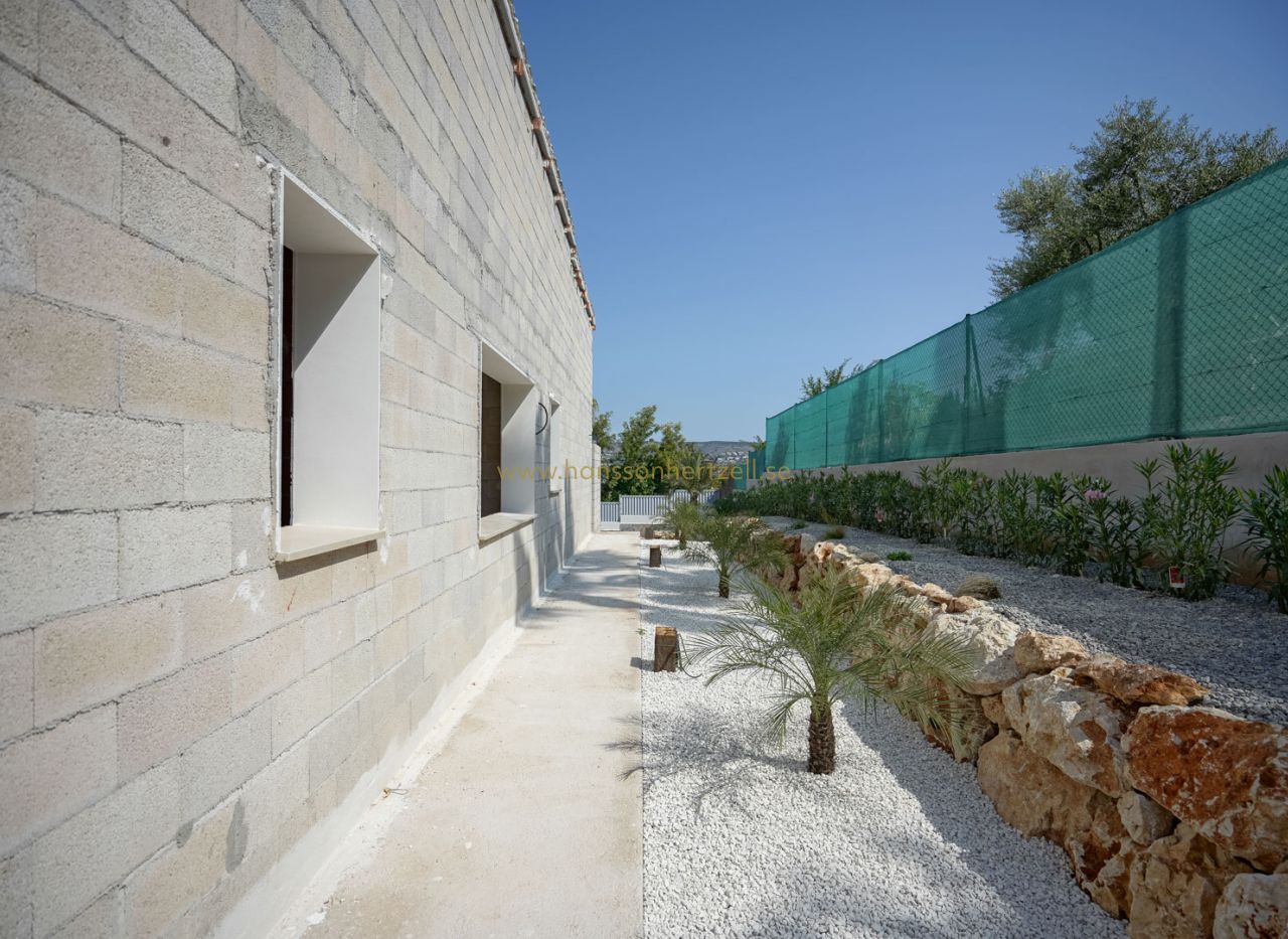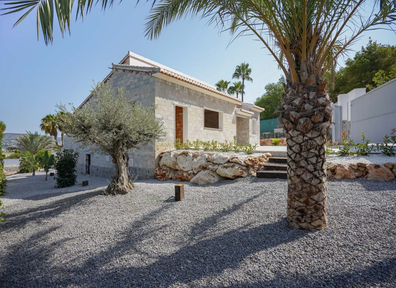Beautiful traditional new build villa for sale in Jávea, This exclusive new build villa, located in the beautiful Piver urbanisation, offers beautifl views of the imposing Montgó and the mountainous interior. The villa is set on a spacious plot of 1,147.94 m2 and is designed entirely on one level for optimal comfort and accessibility. Upon entering, a stylish hall with guest toilet leads to the spacious living-dining room, where large windows provide abundant natural light and a beautiful panorama. Adjacent is a modern, fully equipped kitchen with a practical laundry room that offers direct access to the outside. Sliding windows in the living room open onto the inviting terrace with swimming pool, ideal for enjoying the view and the Mediterranean climate. The sleeping area comprises three bedrooms, including an elegant master bedroom with en-suite bathroom and direct access to the terrace, while the two other bedrooms share a second bathroom. The outdoor area is an oasis of tranquillity with a covered terrace, a pergola, a spacious sun terrace and a low-maintenance Mediterranean garden. With two parking spaces on site and a location just 2 km from the historic centre and 3 km from the coast, this villa combines luxury, privacy and excellent accessibility. The villa is currently under construction and is scheduled for completion at the end of 2025 (subject to change).