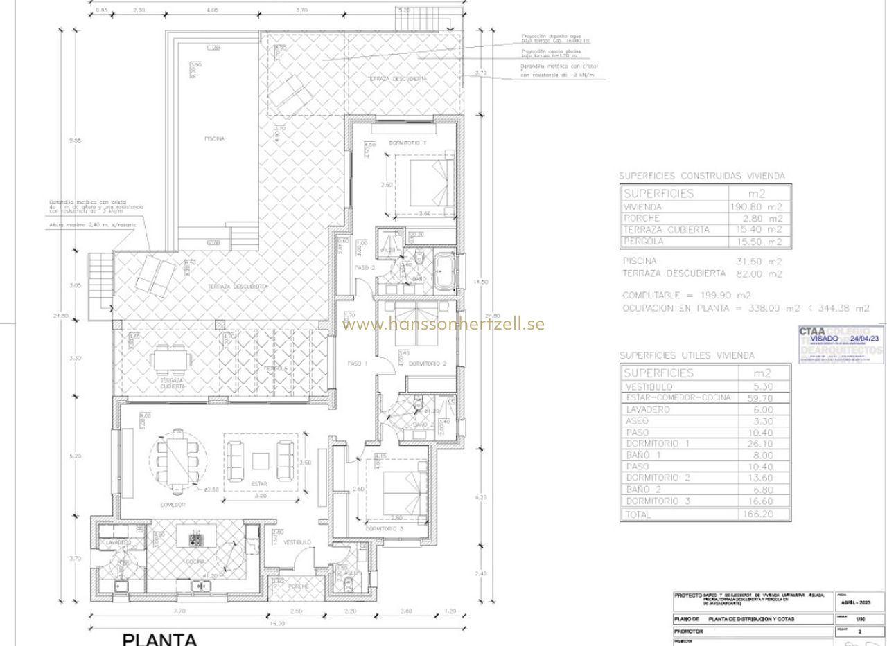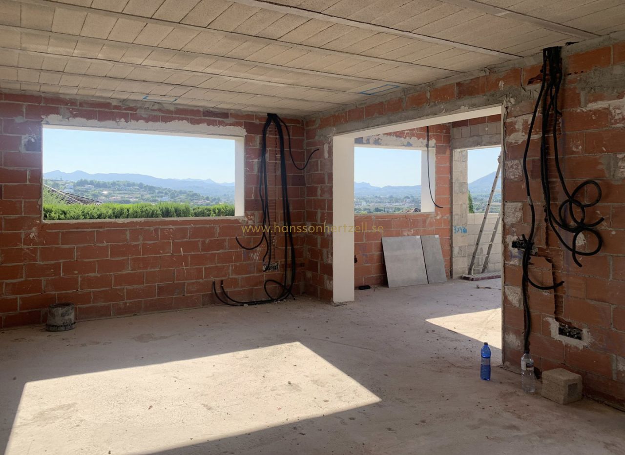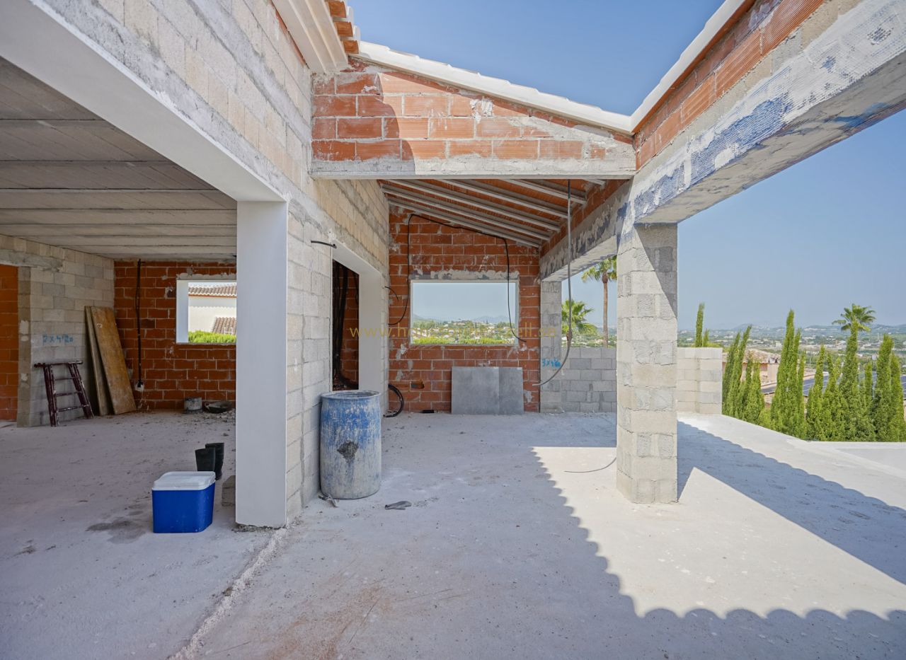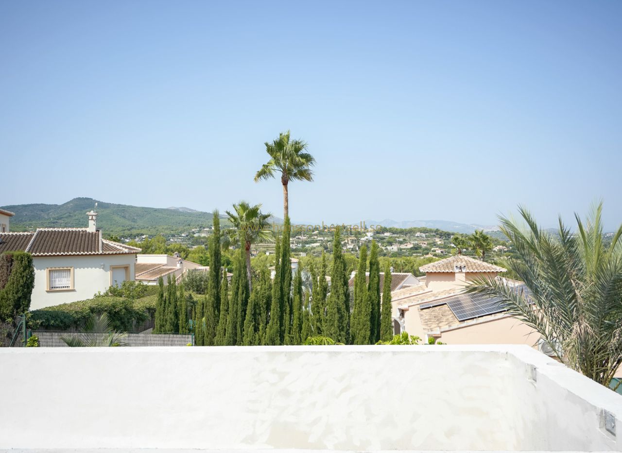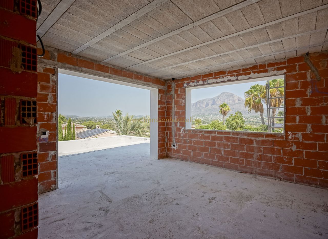 Beautiful traditional new build villa for sale in Jávea, This exclusive new build villa, located in the beautiful Piver urbanisation, offers beautifl views of the imposing Montgó and the mountainous interior. The villa is set on a spacious plot of 1,147.94 m2 and is designed entirely on one level for optimal comfort and accessibility. Upon entering, a stylish hall with guest toilet leads to the spacious living-dining room, where large windows provide abundant natural light and a beautiful panorama. Adjacent is a modern, fully equipped kitchen with a practical laundry room that offers direct access to the outside. Sliding windows in the living room open onto the inviting terrace with swimming pool, ideal for enjoying the view and the Mediterranean climate. The sleeping area comprises three bedrooms, including an elegant master bedroom with en-suite bathroom and direct access to the terrace, while the two other bedrooms share a second bathroom. The outdoor area is an oasis of tranquillity with a covered terrace, a pergola, a spacious sun terrace and a low-maintenance Mediterranean garden. With two parking spaces on site and a location just 2 km from the historic centre and 3 km from the coast, this villa combines luxury, privacy and excellent accessibility. The villa is currently under construction and is scheduled for completion at the end of 2025 (subject to change).