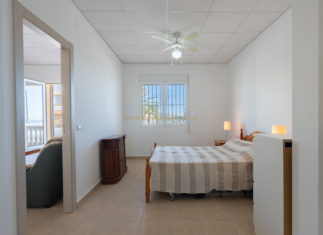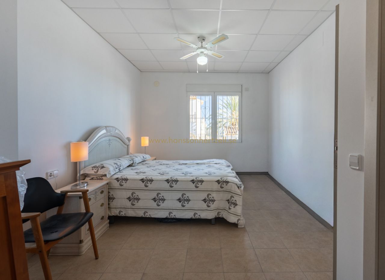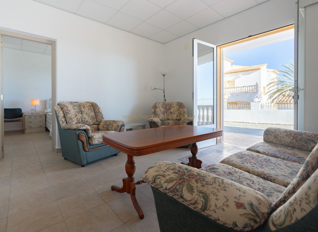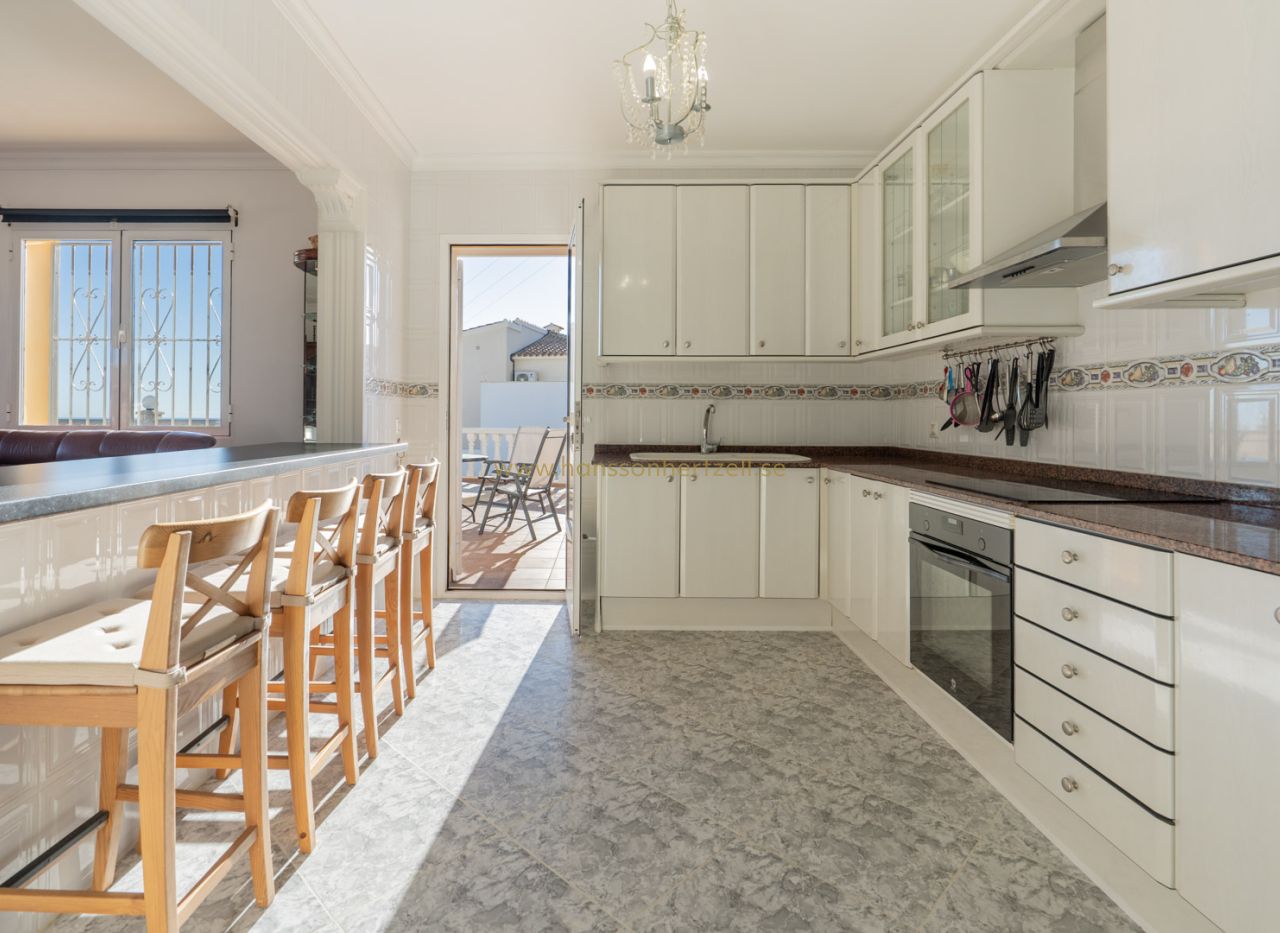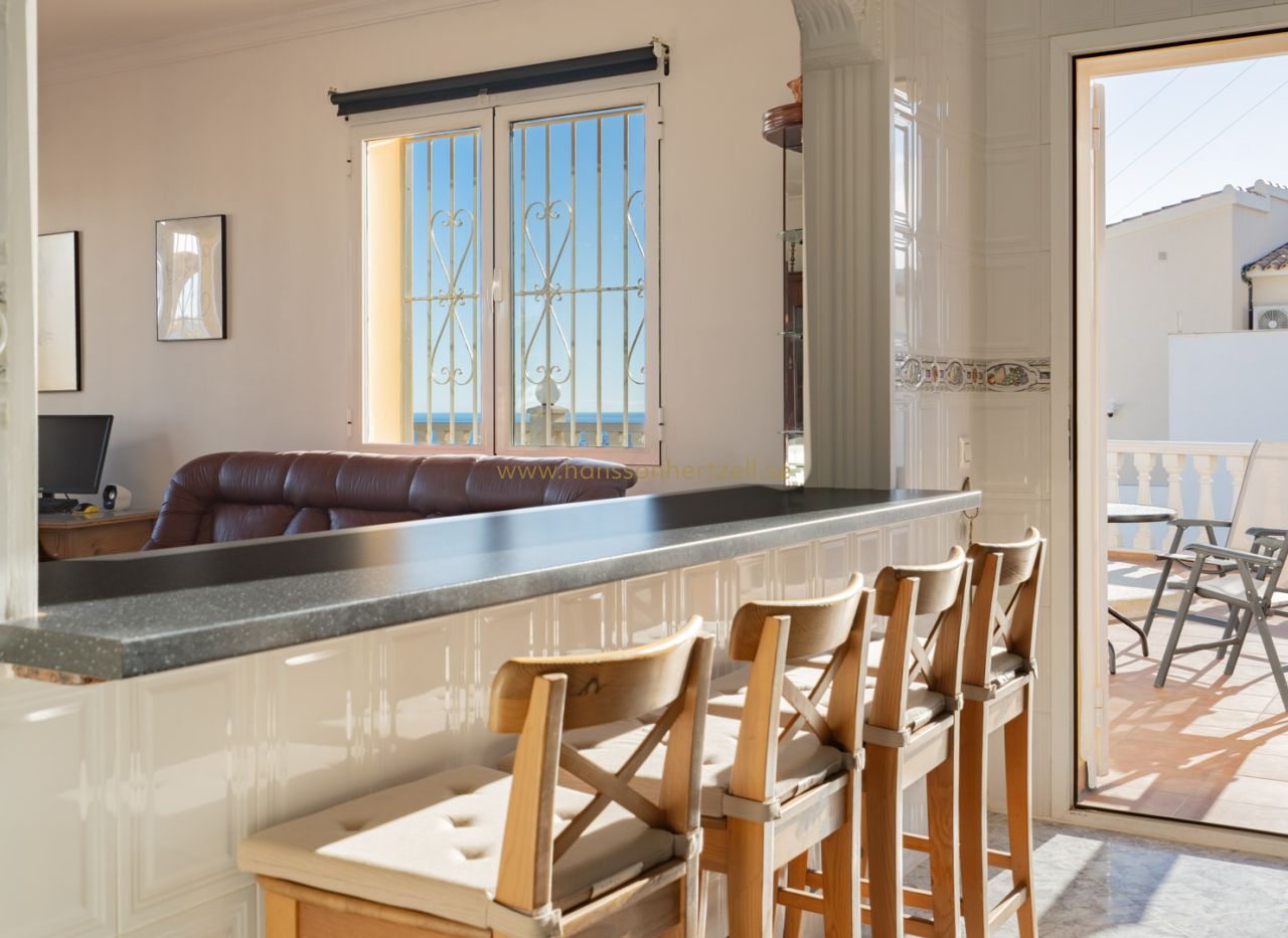 Traditional villa with spacious guest accommodation and panoramic sea views for sale in Partida Cucarres, This charming villa is located on the quiet eastern slope of the impressive Sierra de Oltà mountain range. Thanks to its elevated position, you can enjoy truly breathtaking panoramic views of the Mediterranean coastline, stretching from Cap d’Or in Moraira to beyond the iconic Peñón de Ifach in Calpe. The property also offers beautiful views of Calpe’s skyline, the vast inland area reaching towards the Montgó in Jávea, and of course the nearby Sierra de Oltà with its striking rock formations and deep green forests. Despite the exceptional views, the villa is situated just a short distance from the centre of Calpe, where you will find all amenities, beaches, and restaurants. The villa is divided over two separate floors. The main residence is on the lower floor and consists of a living-dining room, a semi-open kitchen, a master bedroom with en-suite bathroom, and a second bedroom with a separate bathroom. From the living room there is direct access to the covered terrace, while from the kitchen you reach the sunny south terrace. The semi-basement contains a fully independent guest apartment with a living room, an open kitchen, and two spacious bedrooms, each with an en-suite bathroom. The property is equipped with recently installed air conditioning (2021), central heating via radiators, built-in wardrobes, shutters, and photovoltaic panels. The villa also features a spacious garage, a storage room, and multiple parking spaces. Outside, next to the pool, you will find a generous terrace with an outdoor shower and a covered summer kitchen. On the north side of the villa there is also a large terrace, ensuring you can always find a pleasant shaded spot during warmer days. An ideal property for those looking to combine peace, wide-open views, and proximity to lively Calpe.
