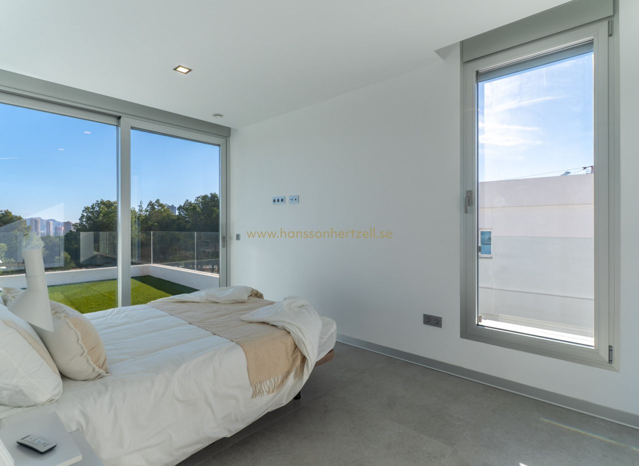 Villa in a setting that combines the serenity of nature with proximity to the sea. Located just a few kilometers from the beaches and the lively atmosphere of Altea, Albir, and Benidorm. This villa stands out for its elegant layout: a spacious living-dining room with an open-plan kitchen, three double bedrooms, including a luxurious master suite, plus a separate bathroom and a guest toilet. Outside, residents can enjoy their own private swimming pool, a well-maintained garden, and a rooftop terrace ideal for relaxing in the afternoons.The property also features private parking. The location is unbeatable: less than 10 minutes by car from the beaches and the center of Benidorm, and only 700 meters from a shopping center with supermarkets and shops. For sports and leisure enthusiasts, the area offers golf courses, yacht clubs, hiking trails, and a wide variety of restaurants. Within the development, there is also the option to purchase homes with a garage, an additional floor, or a larger garden, according to your preferences. (Subject to availability and subject to availability*) Live between the sea and the mountains, enjoy tranquility, nature, and sunshine in an unparalleled setting. Don't hesitate to contact us for more information about this collection of exclusive villas.