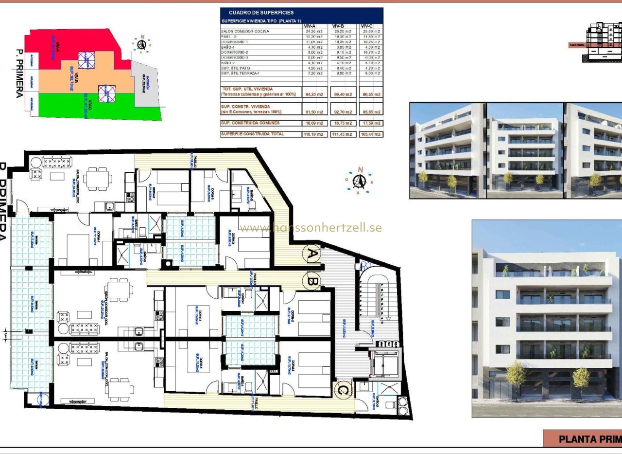 New Build Apartments in Torrevieja Just 400 m from Playa del Cura Prime Location in the Heart of Torrevieja Discover these brand new apartments and penthouses in one of the most sought after areas of Torrevieja, only 400 m from Playa del Cura and just 150 m from the seafront promenade. Located in the city centre, this vibrant neighborhood offers all essential services within walking distance, including supermarkets, shops, restaurants, cafes and public transport. Torrevieja is a well known coastal city on the Costa Blanca, famous for its mild Mediterranean climate, lively atmosphere and year round lifestyle by the sea. Modern Apartments with Spacious Layouts This exclusive new development consists of only 12 apartments and penthouses with 2 or 3 bedrooms, designed to offer comfort, functionality and contemporary style. Middle floor apartments feature generous terraces, while the penthouses enjoy an additional private solarium, ideal for sunbathing or outdoor dining. All homes include an open plan kitchen connected to the living and dining area, creating bright and welcoming interiors. Bedrooms come with fitted wardrobes, and bathrooms are fully equipped with furniture, mirrors and shower screens. Optional underground parking spaces and storage rooms are available at an extra cost. Quality Finishes and Energy Efficient Features The apartments are built with high quality materials and a strong focus on energy efficiency. Exterior aluminum carpentry includes thermal break technology and double glazing for thermal and acoustic insulation. Motorized shutters add comfort and security. Each home has pre installation for ducted air conditioning and heating, reinforced entrance doors and white lacquered interior doors. Hot water is produced through an aerothermal system, reducing energy consumption and improving sustainability. Rooftop Solarium with Communal Pool Residents can enjoy an exclusive rooftop solarium with a communal swimming pool, accessible by lift or stairs. This private area is perfect for relaxing, sunbathing and enjoying open views over the city. It provides a peaceful retreat above the lively streets of Torrevieja and adds significant value to the development. Torrevieja Lifestyle and Surroundings Torrevieja is known for its long coastline, sandy beaches and iconic salt lagoons. The Natural Park of La Mata and Torrevieja lagoons is approximately 5 km away and offers walking trails and unique landscapes. Several golf courses such as Villamartin Golf and Las Colinas Golf are within 12 to 18 km. Torrevieja Marina and port are around 1 km away. Alicante Airport is approximately 45 km and Murcia International Airport around 65 km, both with excellent European connections. Your Coastal Home Awaits Do not miss this opportunity to own a modern new build apartment close to the beach in Torrevieja. Contact us today for more information or to arrange a private viewing.