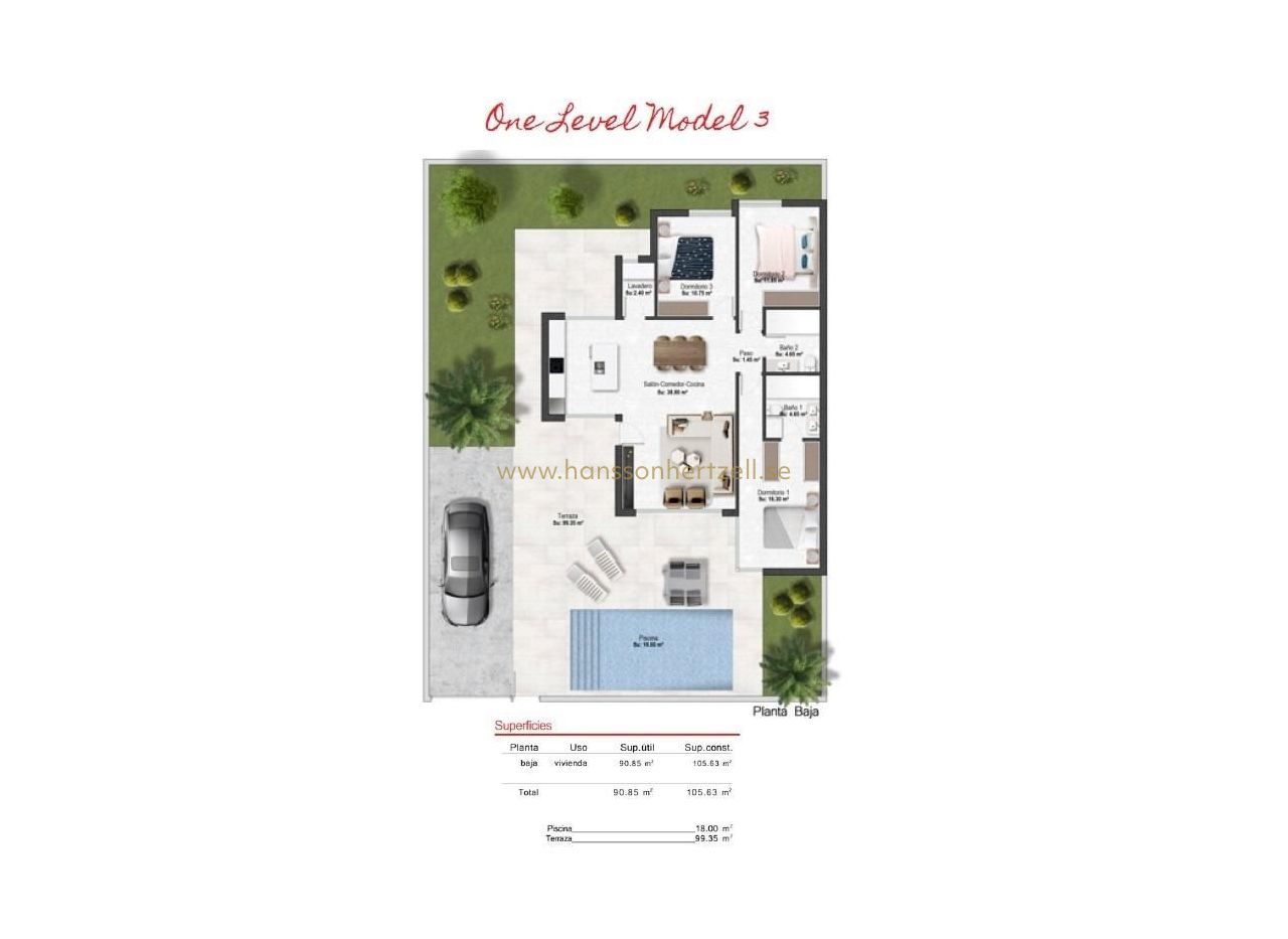 VILLAS DE OBRA NUEVA DE UNA SOLA PLANTA EN CAMPO DE GOLF ALTAONA , MURCIA Residencial de nueva construcción de hermosas villas en Altaona Golf resort, Murcia. Situado en un entorno privilegiado donde podemos vivir tranquilamente, en contacto con la naturaleza y la montaña, conseguimos calidad de vida, aire puro y espacios abiertos. Chalets de una sola planta construidos en parcelas desde 300 m2 con 3 dormitorios, 2 baños y piscina privada con múltiples opciones donde la calidad es nuestra máxima y donde integramos el exterior con el interior de la vivienda. Exclusivo residencial de Obra Nueva situado en Altaona Golf a tan solo 15 minutos en coche del centro de Murcia capital y a 20 minutos de las playas podrá disfrutar de la tranquilidad y seguridad que ofrece el Campo de Golf que cuenta con 18 hoyos y la comodidad de vivir cerca de todos los servicios. El aeropuerto de Murcias Corvera a solo 15 minutos en coche.