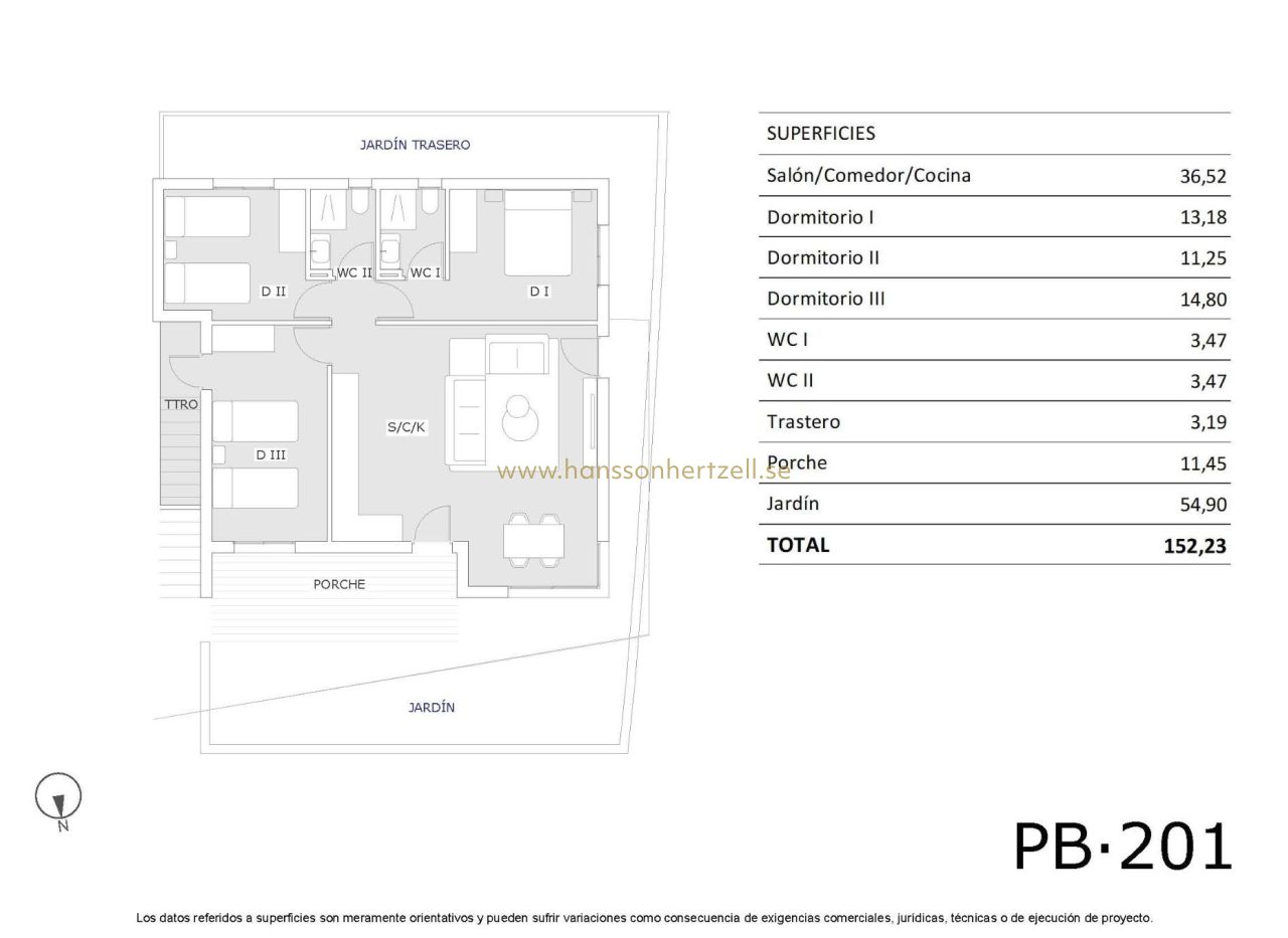 Bungalows de Obra Nueva en San Miguel de Salinas con 2 Piscinas Comunitarias Estilo de Vida Mediterráneo en un Entorno Natural Descubre este moderno residencial de bungalows de obra nueva en San Miguel de Salinas, una localidad al sur de la provincia de Alicante, perteneciente a la comarca de la Vega Baja del Segura. Este encantador municipio combina la cercanía al mar con la tranquilidad de la naturaleza, convirtiéndose en un lugar ideal tanto para residencia habitual como para vacaciones. Opciones de Vivienda para Todos los Estilos de Vida El residencial ofrece apartamentos tipo bungalow con 2 o 3 dormitorios distribuidos en dos opciones: Planta baja con jardín privado y trastero Planta alta con solárium privado Cada vivienda ha sido diseñada con un enfoque moderno y funcional, proporcionando comodidad, luz natural y espacios exteriores para disfrutar del clima mediterráneo durante todo el año. Zonas Comunes para el Disfrute Familiar Este complejo residencial está completamente cerrado y dispone de excelentes zonas comunes: 2 piscinas comunitarias de gran tamaño para adultos y niños Más de 2.600 m² de zonas verdes ajardinadas Área de juegos infantiles Estas instalaciones hacen del residencial un espacio ideal para familias, parejas y jubilados que buscan calidad de vida en un entorno seguro y relajado. Calidades Modernas y Eficiencia Energética Las viviendas cuentan con materiales de alta calidad y acabados cuidados: Cocina completamente amueblada Carpintería exterior con rotura de puente térmico y doble acristalamiento Puerta de entrada blindada Muebles de baño incluidos Preinstalación de aire acondicionado por split en salón y dormitorios Excelente Ubicación Cerca de Golf, Playas y Servicios San Miguel de Salinas se sitúa estratégicamente cerca de zonas turísticas y naturales: Campos de golf como Vistabella, Las Colinas y Campoamor a menos de 10 km Playas de Orihuela Costa a 11 km Lagunas de Torrevieja y La Mata a solo 8 km Centro comercial La Zenia Boulevard a 9 km Aeropuerto de Alicante-Elche a 58 km (35 minutos en coche) Aeropuerto Internacional de Murcia a 63 km (1 hora en coche) Tu Nuevo Hogar en la Costa Blanca Estas viviendas representan una excelente oportunidad para quienes buscan calidad, comodidad y ubicación. Contáctanos ahora para más información o para agendar tu visita y dar el primer paso hacia tu vida en la Costa Blanca.