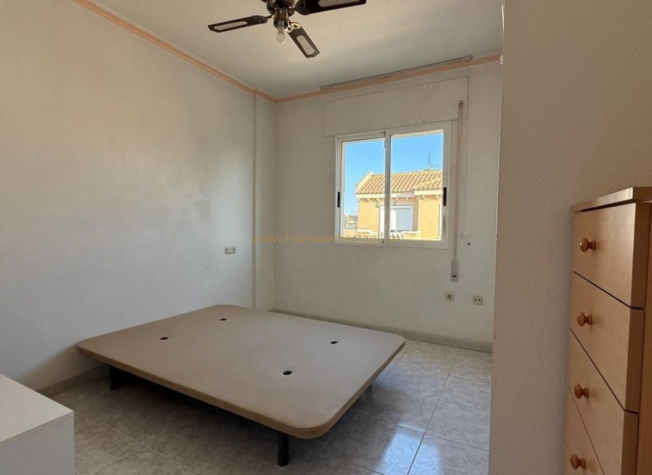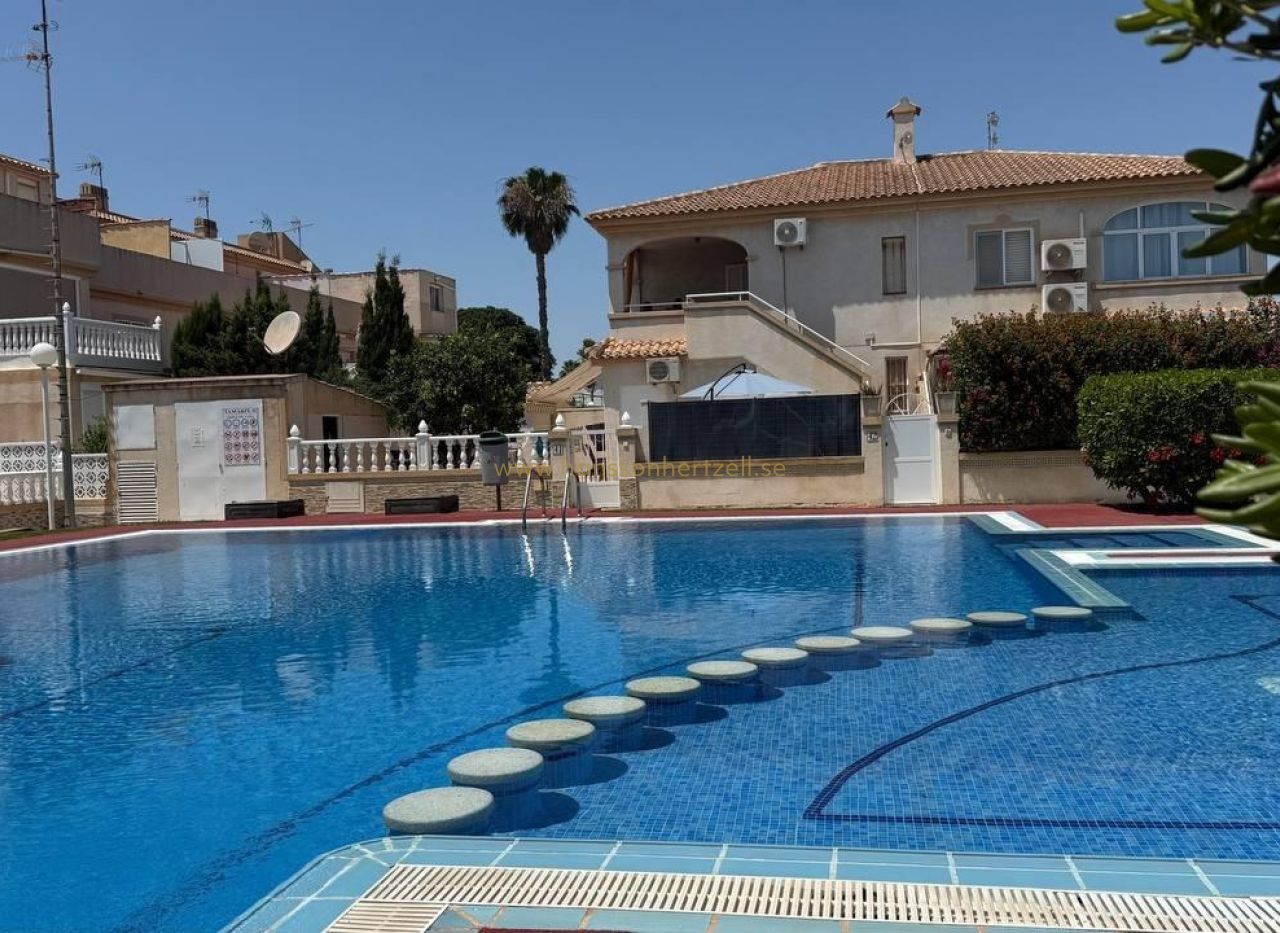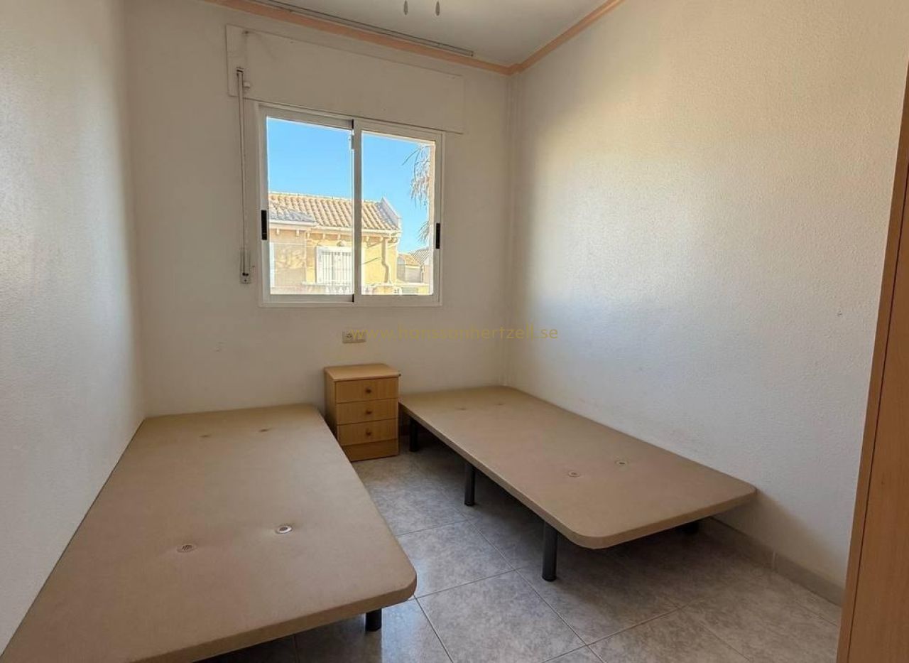 Este bungalow en planta alta, ubicado en la codiciada zona de Aguas Nuevas 2 en Torrevieja, combina comodidad y ubicación privilegiada. A solo 1,5 km de la playa, ofrece 55 m² de espacio habitable con dos dormitorios dobles, un baño y una terraza orientada al sur ideal para disfrutar del sol mediterráneo. Construido en 1997, se entrega completamente amueblado y con aire acondicionado. La urbanización cuenta con piscina comunitaria y plaza de aparcamiento incluida. Perfecto como vivienda vacacional, inversión de alquiler o residencia permanente. ¡Listo para entrar a vivir!