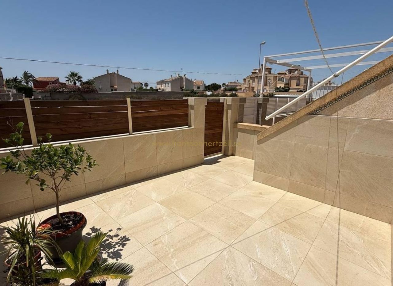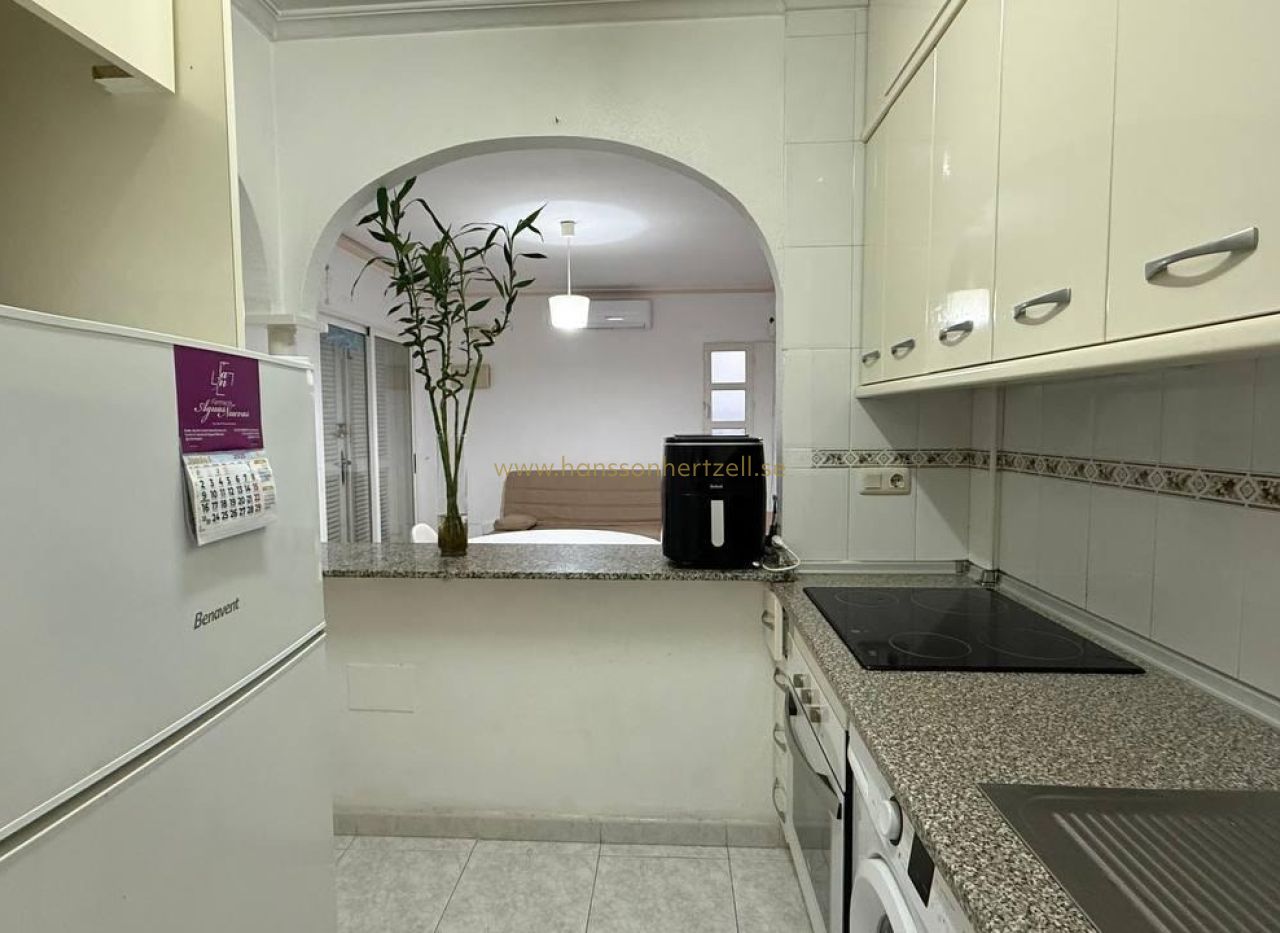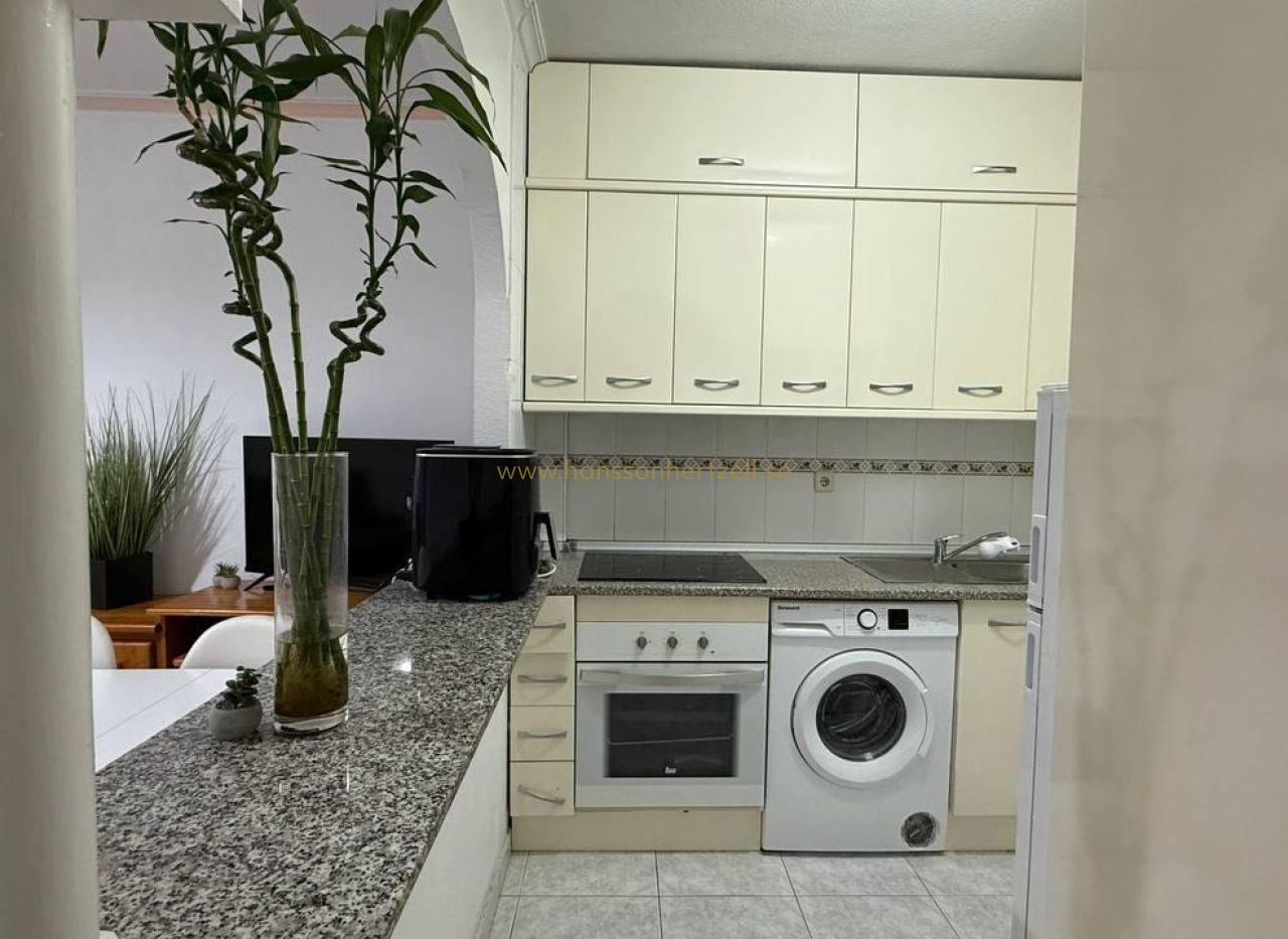 Este bungalow en planta alta, ubicado en la codiciada zona de Aguas Nuevas 2 en Torrevieja, combina comodidad y ubicación privilegiada. A solo 1,5 km de la playa, ofrece 55 m² de espacio habitable con dos dormitorios dobles, un baño y una terraza orientada al sur ideal para disfrutar del sol mediterráneo. Construido en 1997, se entrega completamente amueblado y con aire acondicionado. La urbanización cuenta con piscina comunitaria y plaza de aparcamiento incluida. Perfecto como vivienda vacacional, inversión de alquiler o residencia permanente. ¡Listo para entrar a vivir!