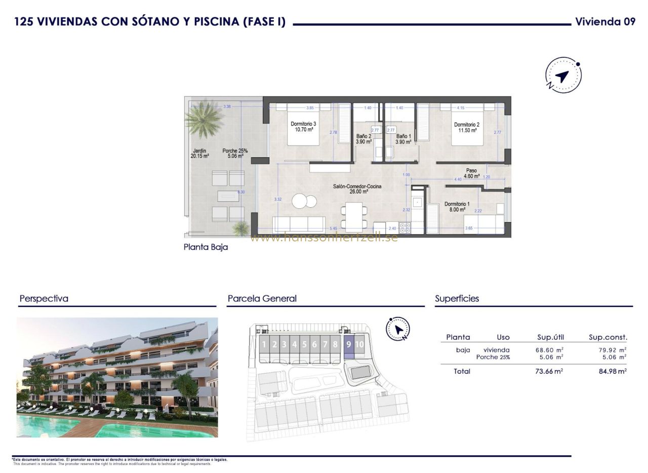 Apartamentos turísticos de nueva construcción en Santiago de la Ribera, San Javier, a solo 750 m de la playa Exclusiva promoción en la Costa Cálida Este exclusivo complejo residencial de 125 apartamentos turísticos se encuentra en Santiago de la Ribera (San Javier), una encantadora localidad costera de la Costa Cálida, famosa por sus hermosas playas de arena, su relajado estilo de vida mediterráneo y su excelente clima durante todo el año. Con el Mar Menor a solo 750 metros, estas viviendas ofrecen la combinación perfecta de comodidad, estilo y proximidad al mar. Apartamentos modernos con múltiples opciones La promoción ofrece amplios apartamentos de 3 dormitorios y 2 baños, incluyendo un dormitorio principal con baño en suite. Los compradores pueden elegir entre: Viviendas en planta baja con jardín privado Apartamentos en plantas intermedias con amplias terrazas Áticos con solárium privado Cada vivienda está diseñada para maximizar la luz natural y la vida al aire libre. Las características incluyen cocinas totalmente equipadas y amuebladas con electrodomésticos, iluminación interior y exterior, baños con muebles y mamparas de ducha. Todas las propiedades cuentan con una plaza de aparcamiento en superficie, mientras que el aparcamiento subterráneo y los trasteros están disponibles con un coste adicional. Servicios y comodidades de primera calidad Los propietarios disfrutarán de un edificio moderno equipado con ascensores, dos piscinas comunitarias y hermosos jardines. Las viviendas incluyen la preinstalación de aire acondicionado por conductos para disfrutar de comodidad durante todo el año. Una oportunidad de inversión inteligente Estos apartamentos cuentan con licencia turística ya concedida, lo que los convierte en una excelente inversión para alquileres vacacionales. Los propietarios pueden generar ingresos mediante alquileres a corto plazo, al tiempo que disfrutan de la propiedad para sus propias vacaciones familiares. Tenga en cuenta que estas residencias están destinadas a uso vacacional y no pueden utilizarse como viviendas permanentes. Ubicación privilegiada en San Javier La promoción está estratégicamente situada cerca de todos los servicios esenciales y actividades de ocio. Distancias a los principales puntos de interés: Playa del Mar Menor: 750 m Centro comercial La Ribera: 2 km Centro comercial Dos Mares: 3 km Roda Golf: 5 km Puerto deportivo de Lo Pagán: 4 km Aeropuerto de Murcia (Corvera): 40 km Cartagena: 30 km Ciudad de Murcia: 40 km Haga realidad su sueño costero Este nuevo proyecto de construcción en Santiago de la Ribera representa una oportunidad única para disfrutar del estilo de vida mediterráneo y, al mismo tiempo, realizar una inteligente inversión en alquiler. Póngase en contacto con nosotros hoy mismo para obtener más detalles o concertar una visita a estos modernos apartamentos turísticos a pocos pasos del Mar Menor.