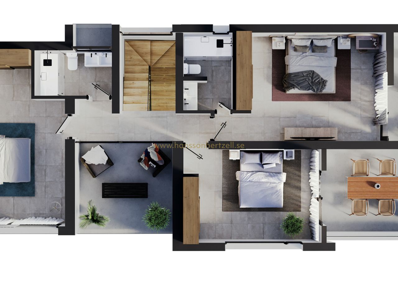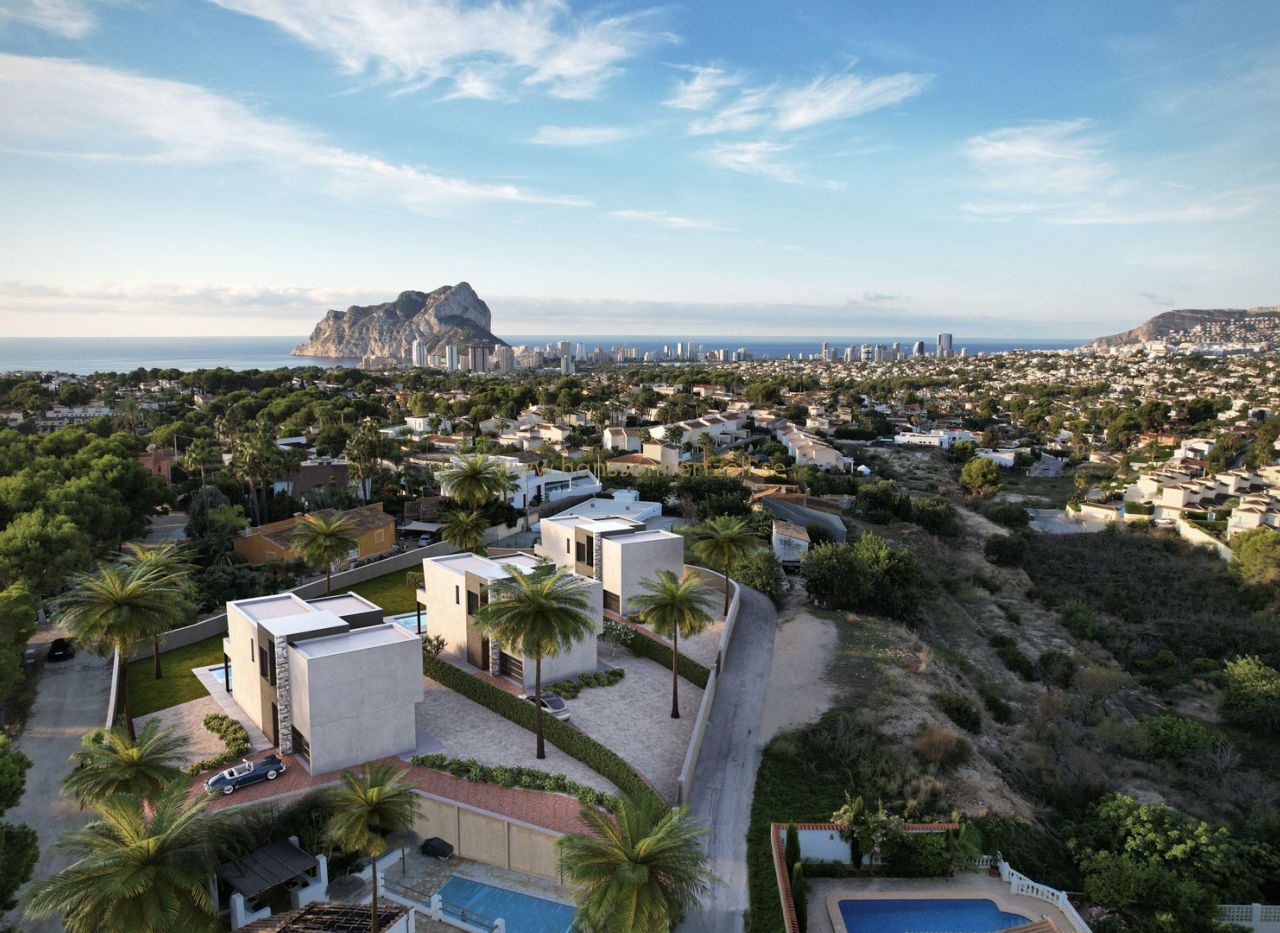 Lujosa villa de nueva construcción con vistas al skyline de Calpe. Este proyecto de tres modernas villas de lujo se construirá en una parcela llana en la tranquila urbanización Partida Gran Sol y se entregará a principios de 2026 (bajo reserva). Todas las villas tienen la misma distribución y disponen de jardín y piscina privados. Gracias a su orientación sur, podrá disfrutar del sol durante todo el año. Dependiendo de la ubicación, los precios varían entre 925 000 € y 975 000 €. Cada villa se distribuye en dos plantas. La planta baja consta de un amplio salón-comedor con cocina abierta contigua con isla. Para mayor comodidad, también hay un cuarto de baño en esta planta. En la planta superior se encuentra el dormitorio principal con cuarto de baño en suite y una amplia terraza con orientación sureste. Además, hay dos amplios dormitorios que comparten un cuarto de baño y una terraza. Además, cada villa dispone de un garaje en la planta baja. Equipadas con calefacción por suelo radiante, aire acondicionado y etiqueta energética A, estas villas ofrecen un confort óptimo. Junto a la piscina hay una terraza privada, parcialmente cubierta, donde podrá disfrutar plenamente de la vida al aire libre mediterránea. Hay unas bonitas vistas al skyline de Calpe y a la Sierra d'Olta. Las vistas al skyline de Calpe y a la Sierra d'Olta completan el conjunto. La preciosa costa de Benissa, con varias calas idílicas, se encuentra a solo 2 km, y las playas de arena y el animado centro de Calpe están a menos de 10 minutos. Más información disponible bajo petición.
