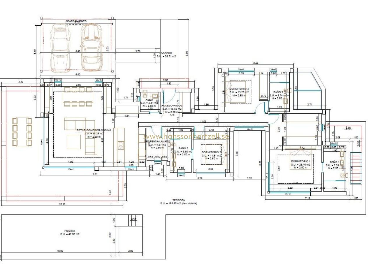Villa de nueva construcción de estilo ibicenco en Javea Vida mediterránea contemporánea cerca de la playa de El Arenal Esta villa de nueva construcción de estilo ibicenco en Javea se encuentra actualmente en fase de construcción y se entregará en un breve plazo. Situada a solo 3 km de la playa de El Arenal, una de las zonas más populares y animadas de la Costa Blanca Norte, esta propiedad combina el encanto mediterráneo con la elegancia moderna. Javea es conocida por sus calas de aguas cristalinas, sus parques naturales, sus puertos deportivos, su gastronomía tradicional y su relajado estilo de vida costero, lo que la convierte en un lugar excepcional para vivir o invertir. Elegante arquitectura inspirada en Ibiza y el Mediterráneo La villa destaca por su fachada blanca, sus esquinas redondeadas y los detalles en piedra del Montgó tallados a mano, que le aportan calidez y autenticidad. Los acabados de alta calidad, como los suelos de microcemento, las ventanas de aluminio con doble acristalamiento en colores óxido y los grifos negros en los baños, contribuyen a crear un ambiente refinado y contemporáneo. Todas las habitaciones están equipadas con persianas eléctricas exteriores para garantizar el confort y la privacidad. Interiores espaciosos diseñados para el confort En el interior, la villa ofrece un salón-comedor amplio y luminoso con acceso directo a las terrazas exteriores y a la piscina orientada al sur, lo que permite disfrutar de la luz del sol durante todo el día. La moderna cocina abierta está totalmente equipada y se complementa con un lavadero contiguo y un aseo para invitados. La zona de dormitorios incluye tres dormitorios dobles, cada uno con su propio cuarto de baño en suite. La suite principal cuenta con un vestidor para mayor comodidad y estilo. Apartamento independiente adicional y vida al aire libre En la planta baja, la villa incluye un apartamento independiente de 37 m² con un dormitorio y un cuarto de baño, ideal para invitados o familiares. Las zonas exteriores están diseñadas para vivir todo el año, con amplias terrazas soleadas, vistas a la montaña y dos plazas de aparcamiento cubiertas bajo una elegante pérgola. La villa está equipada con calefacción por suelo radiante y aire acondicionado por conductos, lo que garantiza el máximo confort en todas las estaciones. Desde la propiedad se pueden admirar las verdes montañas circundantes y el emblemático monte Montgó, uno de los hitos más reconocibles de Jávea. Ubicación privilegiada en Jávea Distancias clave desde la villa: Playa del Arenal 3 km Puerto y marina de Jávea 7 km Club de golf de Jávea 3 km Aeropuerto de Alicante 100 km Aeropuerto de Valencia 125 km Su hogar mediterráneo le espera Esta villa es la elección perfecta para aquellos que buscan una residencia de lujo, una casa de vacaciones o una inversión segura en la Costa Blanca. Póngase en contacto con nosotros hoy mismo para concertar una visita y descubrir esta excepcional propiedad en Jávea.