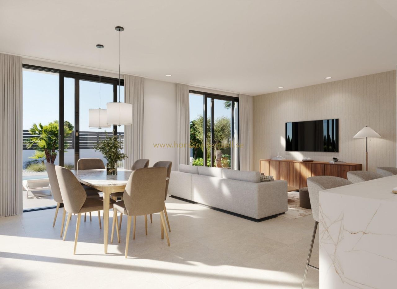 Villas de Obra Nueva en Hacienda del Álamo Golf Resort, Murcia Viviendas Modernas en un Entorno Natural y Exclusivo Descubre estas fantásticas villas de obra nueva en el prestigioso Hacienda del Álamo Golf Resort, una urbanización cerrada en la región de Murcia que combina tranquilidad, seguridad y una completa oferta de servicios. Rodeado de naturaleza y con un clima privilegiado, este complejo es ideal para quienes buscan un estilo de vida relajado sin renunciar al confort. Villas de 2 o 3 Dormitorios en una planta con solarium privado El residencial está compuesto por 17 villas en parcelas a partir de 300 m2. Podrá elegir entre viviendas con 2 o 3 dormitorios y 2 baños completos en una sola planta, además de una zona de terraza con piscina privada de 6x2.4 y un solarium privado en la azotea. Acabados de Alta Calidad y Confort Garantizado Las viviendas están diseñadas con materiales de alta calidad y pensadas para ofrecer eficiencia energética y bienestar: Carpintería exterior con rotura de puente térmico Agua caliente mediante sistema de aerotermia Preinstalación de aire acondicionado por conductos Piscina privada Instalación independiente de agua de riego con depósito acumulador y grupo de presión individual. Puerta de acceso de vehículos motorizada. Persianas motorizadas en dormitorios Puerta de entrada acorazada Un Resort con Servicios Completos y Campo de Golf Hacienda del Álamo es uno de los complejos más completos de la Costa Cálida. Cuenta con: Campo de golf profesional de 18 hoyos Hotel con spa Supermercado Restaurantes y bares Pistas deportivas y zonas verdes Seguridad 24 horas La urbanización recrea el ambiente de un tradicional pueblo mediterráneo, con calles tranquilas y un diseño cuidado. Ubicación Estratégica Cerca de Todo Aeropuerto Internacional de Murcia (Corvera): 20 km Campos de golf adicionales: menos de 10 km Cartagena: 35 km Playas del Mar Menor: 30 km Centro comercial Espacio Mediterráneo: 28 km Puerto de Mazarrón: 40 km Vive con Estilo en la Costa Cálida Estas villas representan una excelente oportunidad para vivir o invertir en una de las zonas con mayor proyección de Murcia. Contáctanos ahora y descubre tu próximo hogar en Hacienda del Álamo Golf Resort.