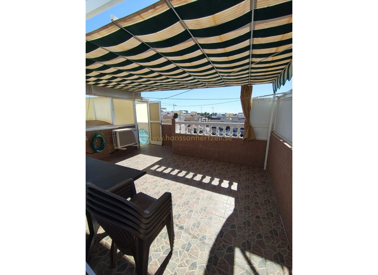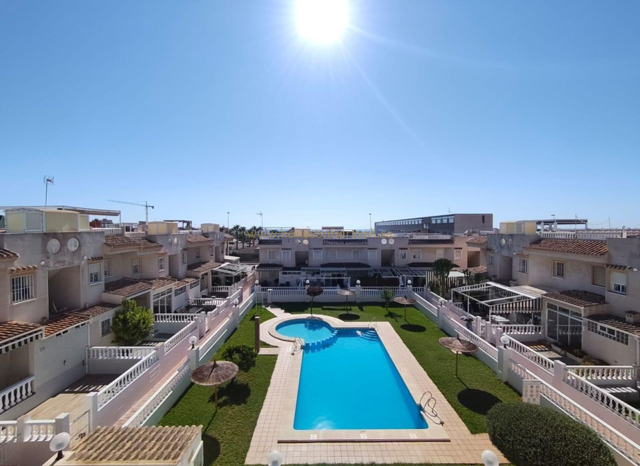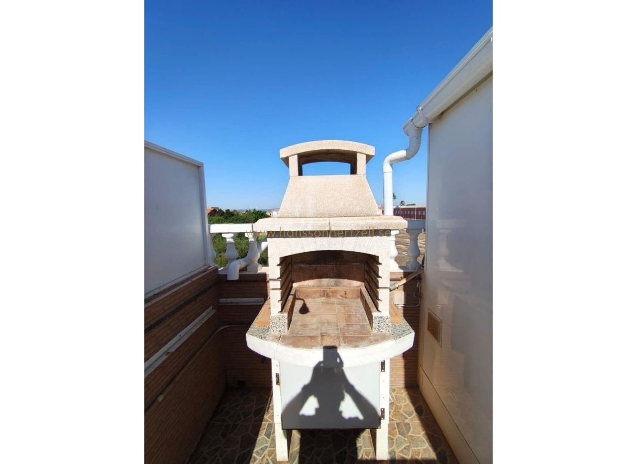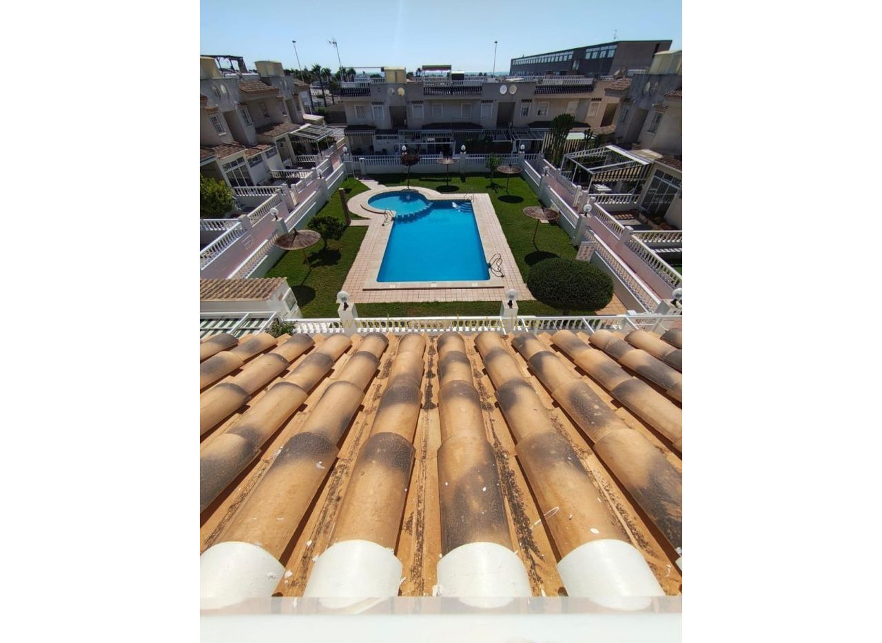 Descubra este encantador bungalow en planta alta perfectamente situado en la codiciada zona de Aguas Nuevas en Torrevieja, uno de los barrios residenciales más populares de la Costa Blanca. Esta propiedad bien mantenida ofrece un valor excepcional con dos cómodos dormitorios, un baño completo y una práctica cocina semi-independiente que proporciona funcionalidad y espacio. Lo más destacado es el generoso solárium privado con zona de barbacoa incorporada y vistas impresionantes a la piscina comunitaria, perfecto para recibir amigos y familiares bajo el sol español.