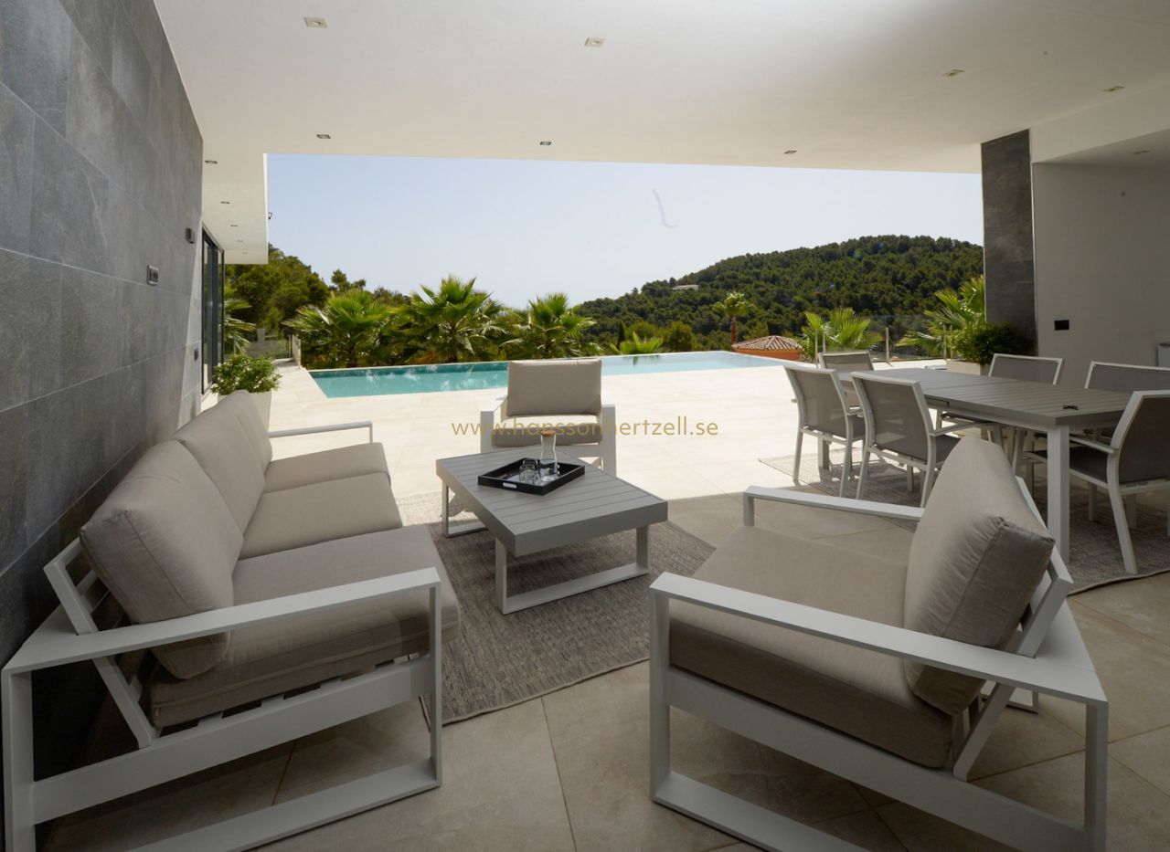 Impresionante villa moderna de lujo en una ubicación privilegiada con vistas al mar en Jávea Esta elegante villa moderna se encuentra en una excelente ubicación dentro de la codiciada urbanización Tosalet 5 en Jávea y disfruta de vistas abiertas sobre las colinas verdes hasta el mar. En días despejados, la vista alcanza incluso la isla de Ibiza en el horizonte. La villa destaca por su arquitectura contemporánea con líneas limpias y formas definidas, donde elementos clásicos se combinan armoniosamente con materiales de vanguardia. En la planta sótano se encuentra un garaje doble con puerta automática, así como una amplia zona multifuncional. La planta principal se distribuye en un amplio salón-comedor, una cocina totalmente equipada con lavadero anexo y un aseo de invitados. A continuación, se accede a una gran terraza cubierta con zona de barbacoa, un agradable espacio sombreado durante los meses de verano, desde donde además se disfrutan magníficas vistas al mar. La terraza solárium alberga una gran piscina con efecto infinity, amplios escalones de acceso e iluminación subacuática. En la planta superior se encuentran tres amplios dormitorios y dos baños, uno de ellos en suite en el dormitorio principal. Todos los dormitorios tienen acceso directo a la gran terraza superior. La cocina está completamente equipada con electrodomésticos integrados, incluyendo placa cerámica, horno, microondas, lavavajillas y mobiliario de alta calidad a medida. La vivienda cuenta con un sistema de calefacción mediante bomba de calor aerotérmica apoyada por energía solar, así como un sistema centralizado de aire acondicionado que climatiza eficientemente todas las estancias. El jardín está distribuido en terrazas con muros de piedra natural y plantado con vegetación mediterránea autóctona. El riego se realiza mediante un sistema centralizado. La parcela está completamente cerrada con muros y vallado, y dispone de un acceso a la entrada del garaje con puerta eléctrica, así como un acceso independiente desde la calle a nivel de la puerta principal. Una villa contemporánea en una ubicación excepcional, ideal para quienes desean combinar confort, diseño y vistas con privacidad y tranquilidad.