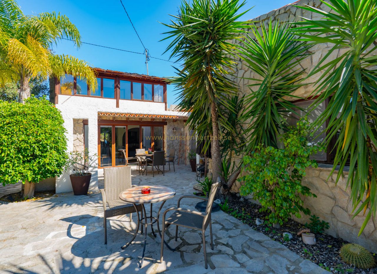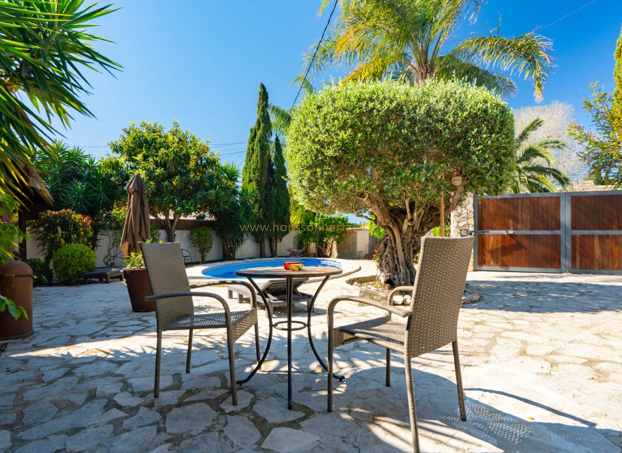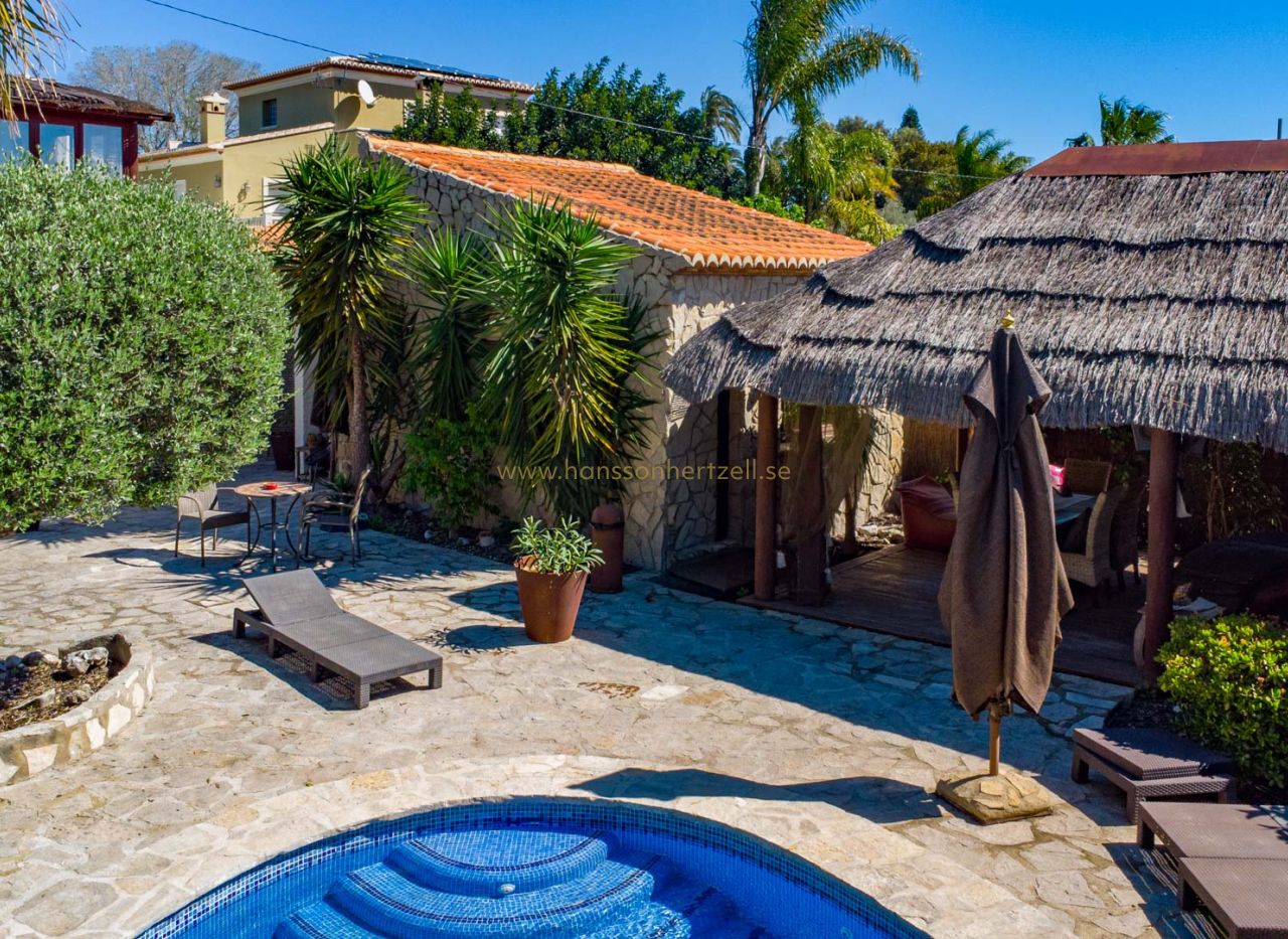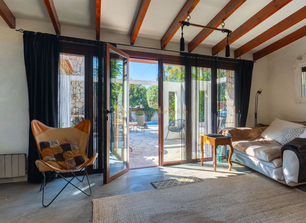 Esta encantadora villa rústica se encuentra al final de una calle sin salida y ofrece un auténtico oasis de tranquilidad, privacidad y naturaleza, con todos los servicios a corta distancia. La villa se sitúa en una parcela llana orientada al sur, con un precioso jardín mediterráneo que crea un ambiente cálido y relajante desde el primer momento. En el exterior encontrará varias terrazas con encanto, ideales para largas veladas de verano con familia y amigos, así como una amplia piscina con una elegante pérgola balinesa donde disfrutar del clima mediterráneo con total tranquilidad. La vivienda principal se distribuye en dos plantas y combina elementos con carácter con espacios confortables. Se accede a través de una amplia y acogedora naya con vistas al jardín, que conecta con el comedor con chimenea. Junto a este se encuentra la cocina, con acceso directo a un encantador patio, perfecto para cocinar y comer al aire libre. En la planta baja también hay un dormitorio y un baño. En la planta superior se encuentra un amplio dormitorio doble y una gran naya acristalada, ideal como espacio adicional de estar, oficina o zona de relax. Un gran valor añadido es la casa de invitados totalmente independiente con entrada propia. Este apartamento dispone de dos dormitorios, una cocina con barra y un baño, siendo perfecto para recibir a familiares y amigos. La propiedad cuenta además con lavadero, trastero y un carport. La ubicación hace que esta propiedad sea especialmente atractiva: una zona residencial tranquila con mucha privacidad, combinada con la cercanía al animado centro, restaurantes, tiendas y playas. Una oportunidad única para quienes buscan una vivienda mediterránea con encanto en una de las zonas más cotizadas de Jávea.