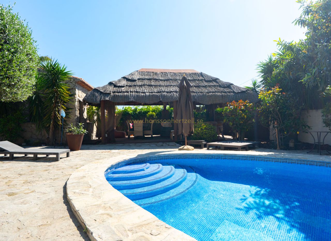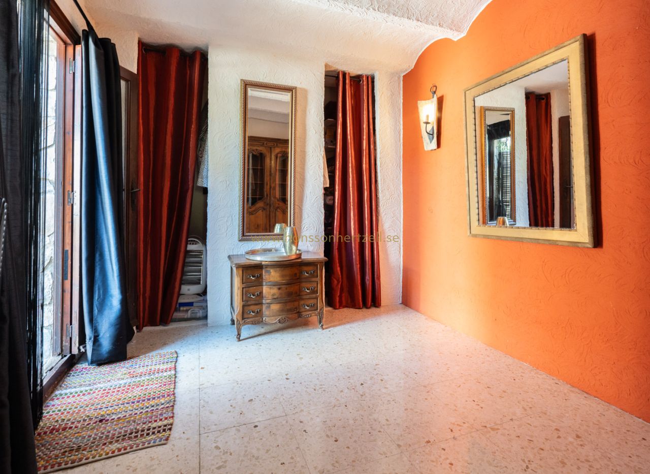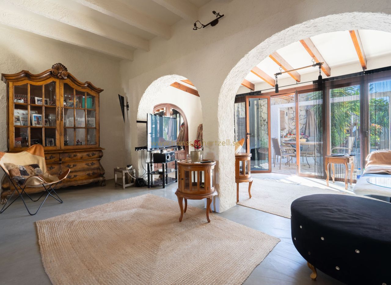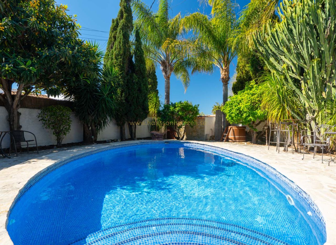 Esta encantadora villa rústica se encuentra al final de una calle sin salida y ofrece un auténtico oasis de tranquilidad, privacidad y naturaleza, con todos los servicios a corta distancia. La villa se sitúa en una parcela llana orientada al sur, con un precioso jardín mediterráneo que crea un ambiente cálido y relajante desde el primer momento. En el exterior encontrará varias terrazas con encanto, ideales para largas veladas de verano con familia y amigos, así como una amplia piscina con una elegante pérgola balinesa donde disfrutar del clima mediterráneo con total tranquilidad. La vivienda principal se distribuye en dos plantas y combina elementos con carácter con espacios confortables. Se accede a través de una amplia y acogedora naya con vistas al jardín, que conecta con el comedor con chimenea. Junto a este se encuentra la cocina, con acceso directo a un encantador patio, perfecto para cocinar y comer al aire libre. En la planta baja también hay un dormitorio y un baño. En la planta superior se encuentra un amplio dormitorio doble y una gran naya acristalada, ideal como espacio adicional de estar, oficina o zona de relax. Un gran valor añadido es la casa de invitados totalmente independiente con entrada propia. Este apartamento dispone de dos dormitorios, una cocina con barra y un baño, siendo perfecto para recibir a familiares y amigos. La propiedad cuenta además con lavadero, trastero y un carport. La ubicación hace que esta propiedad sea especialmente atractiva: una zona residencial tranquila con mucha privacidad, combinada con la cercanía al animado centro, restaurantes, tiendas y playas. Una oportunidad única para quienes buscan una vivienda mediterránea con encanto en una de las zonas más cotizadas de Jávea.