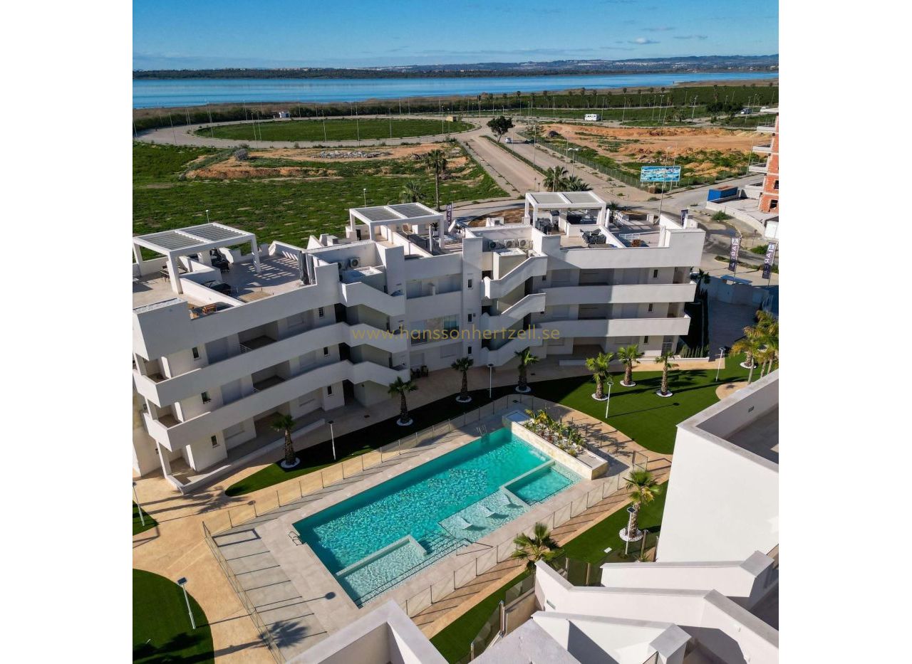 NYBYGGT BOSTADSOMRÅDE I EL RASO, GUARDAMAR DEL SEGURA Nybyggd privat bostadsområde med lägenheter i El Raso, Guardamar del Segura. Komplexet består av 135 bostäder med 2 eller 3 sovrum i block med 3 eller 5 våningar plus solarium, utformade på ett minimalistiskt sätt och med höga kvalitetsstandarder, dess moderna arkitektur harmonierar med våra stora öppna ytor, naturen och simbassängerna och erbjuder en unik och fridfull atmosfär. Vackra bostadskomplex, inklusive en glasad GYM-Spa-avdelning med utsikt över grönområden, simbassänger och från sin terrass med utsikt över saltlagunen La Mata, paddeltennisbana osv. Parkeringsplats ingår i priset. Utvecklingen är belägen på en unik och oöverträffad tomt, som gränsar till det naturliga landskapet i saltlagunen, njut av dess biologiska mångfald och unika miljö, i El Raso de Guardamar del Segura, med alla typer av tjänster och bekvämligheter och nära till de bästa stränderna i Medelhavet. Samtidigt kan du tack vare närheten till stranden El Moncayo ta en cykeltur och njuta av Costa Blancas bästa klimat. Dessutom och tack vare de fem nivåerna i vissa av de block som utgör bostadsområdet, alla i söderläge, inkluderar vi i våra lyxiga takvåningar, fullt utrustat kök på solariumet, utomhusdusch (varmt/kallt vatten) och jacuzziområde, för att fullborda den unika upplevelsen av att bo framför en unik och oöverträffad naturmiljö. El Raso är en del av Guardamar del Segura. Guardamar del Segura är en stad som ligger på Costa Blanca södra. Med sin 11 kilometer långa naturstrand och sin stora tallskog. Guardamar del Segura har en stor hamn med aktiviteter under hela året, den har ett stort sportcenter med paddeltennis, tennis, fotboll och en stor uppvärmd pool som fungerar året runt. Här finns också ett bibliotek där det finns gratis wifi och datorer. Guardamar del Segura ligger bara 20 km från flygplatsen Alicante - Elche (El Altet), där det finns många flygningar varje dag med förbindelser till de största europeiska städerna, på grund av efterfrågan på turister på Costa Blanca.