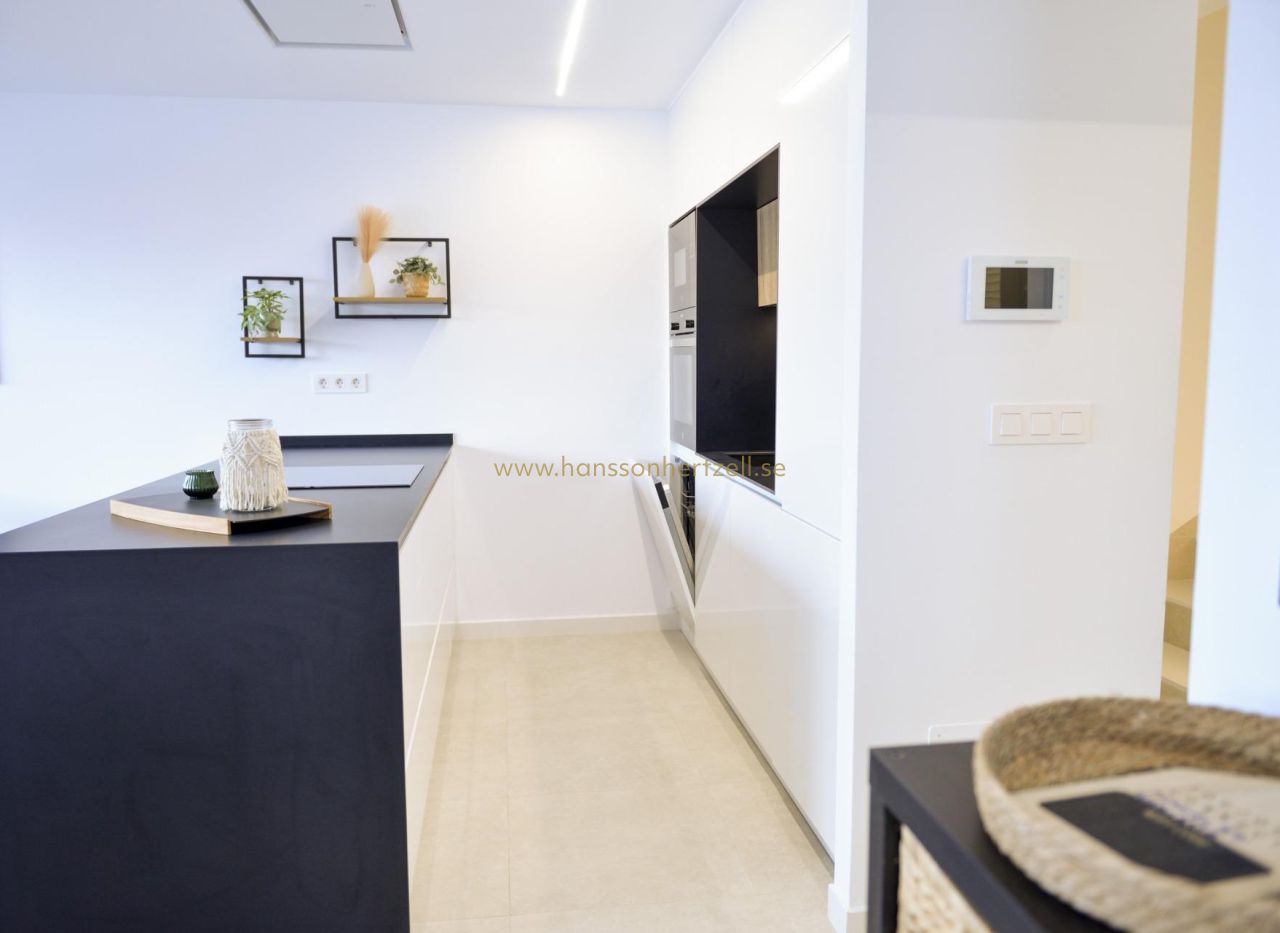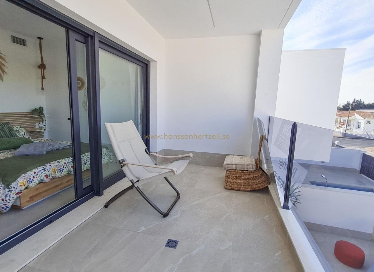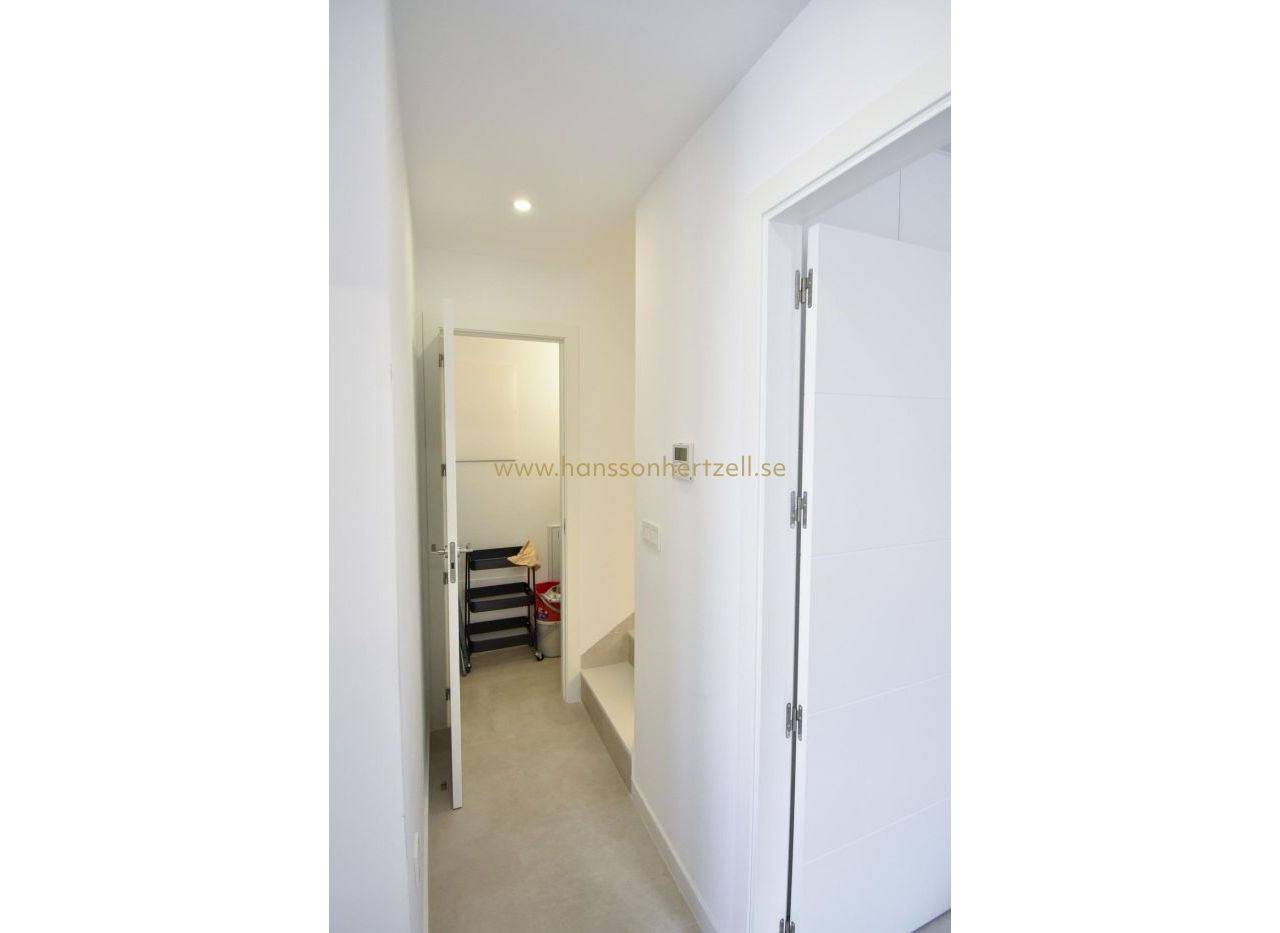 Moderna nybyggda villor i San Pedro del Pinatar med privat pool Elegant design och premiumkvalitet Välkommen till den andra fasen av en exklusiv utveckling i San Pedro del Pinatar, där modernitet möter funktionalitet. Dessa 12 parhusvillor är utformade med en minimalistisk design och högkvalitativa ytbehandlingar, vilket ger en sofistikerad och elegant boendeupplevelse. Varje villa har 3 rymliga sovrum, 3 badrum och en privat pool, tillsammans med terrasser och en privat trädgård. Detta är den perfekta fristaden för dem som söker lugn, avskildhet och oöverträffad komfort. Genomtänkt designade hem för ett modernt liv Dessa nybyggda villor har ett kök med öppen planlösning som är anslutet till ett ljust vardagsrum, vilket skapar ett sömlöst utrymme för familjeliv och underhållning. Viktiga funktioner inkluderar: 3 sovrum med inbyggda garderober. 3 badrum med duschväggar i genomskinligt glas för en elegant look. Privat pool och trädgård, perfekt för avkoppling utomhus. Terrasser på första våningen och ett valfritt takterrass för solbad. Parkeringsplats på tomten. Stora fönster i vardagsrummet ger direkt tillgång till poolområdet och översvämmar interiören med naturligt ljus. Energieffektiva tillägg som solpaneler och förinstallerad luftkonditionering med kanaler garanterar modern komfort och hållbarhet. Balay-apparater som ingår (induktionshäll, ugn, mikrovågsugn, fläkt, kylskåp, integrerad diskmaskin och tvättmaskin) gör det enkelt att flytta in. Förstklassigt läge i San Pedro del Pinatar San Pedro del Pinatar ligger vid den vackra Mar Menor- och Medelhavskusten och är en drömdestination för vattensportentusiaster och strandälskare. Området är känt för sina lugna stränder, naturliga gyttjebad och livliga småbåtshamn, som erbjuder aktiviteter året runt i ett milt klimat. Intressanta platser i närheten av dessa villor inkluderar: Dos Mares Shopping Center: 5 km (5 minuter med bil). Murcia-Corvera flygplats: 30 km (30 minuter med bil). Alicante flygplats: 80 km (1 timme med bil). Lokala golfbanor: Olika alternativ inom 10-15 km. Stränder i Lo Pagán: Bara en kort bilresa på 3 km bort. Området är välförsörjt med skolor, idrottsanläggningar, affärer och kollektivtrafik, vilket gör det idealiskt för både familjer och pensionärer. Upptäck ditt drömhem idag Missa inte chansen att äga en av dessa exklusiva villor i ett blomstrande samhälle. Upplev det bästa av kustlivet och gör San Pedro del Pinatar till ditt nya hem. Kontakta oss nu för att boka en visning och säkra din bit av paradiset!