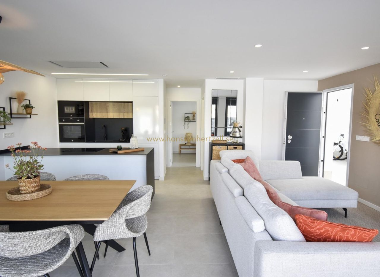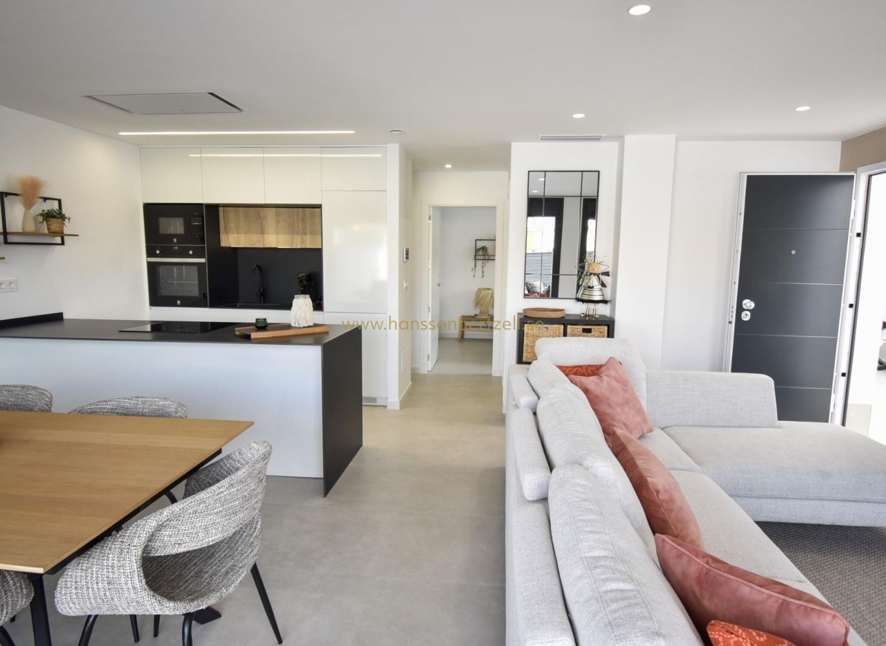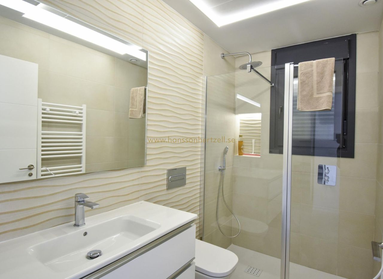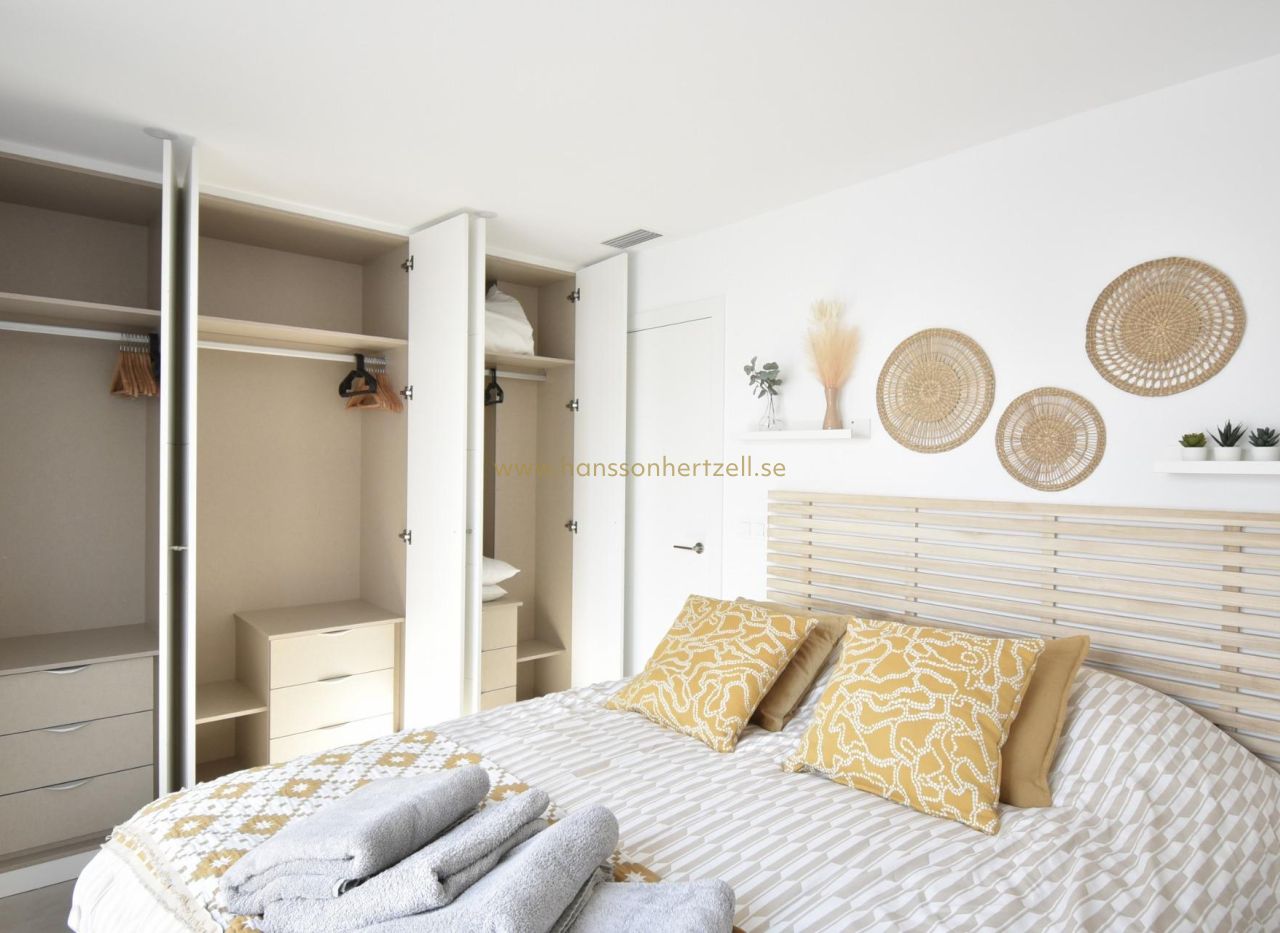 Moderna nybyggda villor i San Pedro del Pinatar med privat pool Elegant design och premiumkvalitet Välkommen till den andra fasen av en exklusiv utveckling i San Pedro del Pinatar, där modernitet möter funktionalitet. Dessa 12 parhusvillor är utformade med en minimalistisk design och högkvalitativa ytbehandlingar, vilket ger en sofistikerad och elegant boendeupplevelse. Varje villa har 3 rymliga sovrum, 3 badrum och en privat pool, tillsammans med terrasser och en privat trädgård. Detta är den perfekta fristaden för dem som söker lugn, avskildhet och oöverträffad komfort. Genomtänkt designade hem för ett modernt liv Dessa nybyggda villor har ett kök med öppen planlösning som är anslutet till ett ljust vardagsrum, vilket skapar ett sömlöst utrymme för familjeliv och underhållning. Viktiga funktioner inkluderar: 3 sovrum med inbyggda garderober. 3 badrum med duschväggar i genomskinligt glas för en elegant look. Privat pool och trädgård, perfekt för avkoppling utomhus. Terrasser på första våningen och ett valfritt takterrass för solbad. Parkeringsplats på tomten. Stora fönster i vardagsrummet ger direkt tillgång till poolområdet och översvämmar interiören med naturligt ljus. Energieffektiva tillägg som solpaneler och förinstallerad luftkonditionering med kanaler garanterar modern komfort och hållbarhet. Balay-apparater som ingår (induktionshäll, ugn, mikrovågsugn, fläkt, kylskåp, integrerad diskmaskin och tvättmaskin) gör det enkelt att flytta in. Förstklassigt läge i San Pedro del Pinatar San Pedro del Pinatar ligger vid den vackra Mar Menor- och Medelhavskusten och är en drömdestination för vattensportentusiaster och strandälskare. Området är känt för sina lugna stränder, naturliga gyttjebad och livliga småbåtshamn, som erbjuder aktiviteter året runt i ett milt klimat. Intressanta platser i närheten av dessa villor inkluderar: Dos Mares Shopping Center: 5 km (5 minuter med bil). Murcia-Corvera flygplats: 30 km (30 minuter med bil). Alicante flygplats: 80 km (1 timme med bil). Lokala golfbanor: Olika alternativ inom 10-15 km. Stränder i Lo Pagán: Bara en kort bilresa på 3 km bort. Området är välförsörjt med skolor, idrottsanläggningar, affärer och kollektivtrafik, vilket gör det idealiskt för både familjer och pensionärer. Upptäck ditt drömhem idag Missa inte chansen att äga en av dessa exklusiva villor i ett blomstrande samhälle. Upplev det bästa av kustlivet och gör San Pedro del Pinatar till ditt nya hem. Kontakta oss nu för att boka en visning och säkra din bit av paradiset!