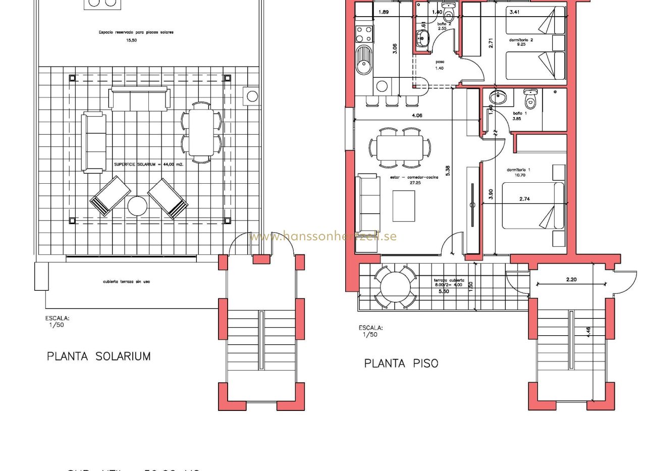 NYBYGGDA BUNGALOWER I FUENTE ALAMO, MURCIA Nybyggda bungalower i Fuente Álamo, Murcia. Bungalower på bottenvåningen med privat trädgård och bungalower på övervåningen med privat solterrass. Denna plats erbjuder en exceptionell naturlig miljö, långt bort från storstadens liv och rörelse och turisttrycket vid kusten. Dessutom är vi engagerade i att arbeta utifrån ett hållbart perspektiv, minimera vår miljöpåverkan och maximera integrationen med det lokala samhället. Här blir dina drömmar om en lugn och hållbar livsstil verklighet. Tänk dig att vakna varje morgon i en fantastisk natur, omgiven av fridfulla landskap och den unika skönheten i Murcias landsbygd. De nybyggda projekten prioriterar energieffektivitet, användning av miljövänliga material och harmonisk integration med den lantliga omgivningen. Från fastighetens design till utvecklingsplaneringen för att minska vårt koldioxidavtryck och främja ansvarsfulla metoder i alla verksamheter. Utveckling med fokus på energieffektivitet och integration i samhället för att skapa högkvalitativa bostäder i harmoni med den naturliga omgivningen. Komplett installation av luftkonditionering med kanaler, kall/värme. Videointercomsystem. Färglackerad säkerhetsdörr med lås och vandalskyddade beslag. Skåp med förvaringsutrymme, invändigt klädda, lackerade i vitt. Köksmöbler med vitvaror ingår Varmvatten med aerotermisk värme. Elektriska persienner. Pergolor i solrum. Solcellspaneler med ackumulator. Möjlighet att göra ändringar i bostaden efter godkännande av båda parter. Fuente Álamo de Murcia är en ort och kommun i regionen Murcia i södra Spanien. Den ligger 22 km nordväst om Cartagena och 35 km sydväst om Murcia. Staden ligger i Mar Menor-bassängen, omgiven av bergskedjorna Algarrobo, Los Gómez, Los Victorias och Carrascoy. Vattnet från dessa berg rinner ner i Rambla de Fuente Álamo och sedan ut i Mar Menor. Fuente Álamo ligger 30 minuter från flygplatsen Murcia - Corvera. Närmaste affärer ligger 6 km bort.