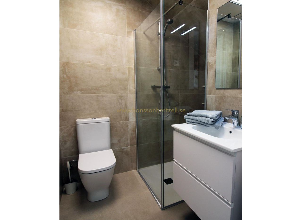 Moderna radhus och parhus i Pilar de la Horadada Upptäck detta exklusiva bostadsområde med endast sex moderna parhus och radhus i den lugna staden Pilar de la Horadada, på Costa Blancas södra spets. Dessa nybyggda fastigheter är designade med modern arkitektur och högkvalitativa ytbehandlingar och erbjuder en perfekt blandning av komfort och stil i ett eftertraktat läge. Rymliga planlösningar med tre och fyra sovrum Varje bostad har rymliga vardagsrum med öppen planlösning mellan kök och vardagsrum, utformade för att maximera det naturliga ljusinsläppet. Välj mellan planlösningar med tre eller fyra sovrum, med två eller tre badrum beroende på modell. Planlösningen på bottenvåningen inkluderar två terrasser: en terrass på framsidan med plats för privat parkering och en terrass på baksidan med direkt tillgång till den gemensamma poolen. På första våningen finns en ytterligare terrass utanför sovrummen, medan takterrassen på övervåningen erbjuder panoramautsikt och ett perfekt utrymme för umgänge utomhus. Högkvalitativa ytfinish Interiören är inredd med högkvalitativa material, inklusive släta gipsväggar, porslinsgolv i hela huset och inbyggda garderober i varje sovrum. De öppna köken är fullt utrustade med moderna skåp. Ytterligare bekvämligheter inkluderar förinstallation för luftkonditionering och aerotermiska system för energieffektivt varmvatten. Gemensamma bekvämligheter och privat parkering Boende har tillgång till en välskött gemensam pool, perfekt för avkoppling på soliga dagar. Varje bostad har en privat parkeringsplats på tomten, vilket garanterar säkerhet och bekvämlighet. Pilar de la Horadada: Traditionell charm på Costa Blanca Pilar de la Horadada är en charmig spansk stad känd för sin välkomnande atmosfär och traditionella arkitektur. Stadskärnan ligger bara en kort promenad bort, där du hittar stormarknader, lokala butiker, restauranger, barer och pittoreska torg. Njut av en lugn promenad längs huvudgatan, prova autentisk medelhavsmat eller utforska hantverksbutiker. Närhet till stränder och flygplatser Upplev det bästa av livet vid kusten med de fina sandstränderna i Torre de la Horadada och Mil Palmeras bara 5 minuters bilresa (cirka 2 km) från ditt nya hem. Dessa stränder har klart vatten, gyllene sand och en livlig strandpromenad med kaféer och restauranger med havsutsikt. För smidiga resor ligger Corvera flygplats (Murcia) cirka 40 km bort (40 minuter med bil) och Alicante flygplats cirka 55 km (55 minuter med bil). Dessutom ligger shoppingcentret La Zenia Boulevard 15 km (15 minuter) från bostadsområdet, med ett brett utbud av butiker, restauranger och nöjen. Säkra ditt nya hem idag Missa inte denna möjlighet att äga en helt ny parhusvilla eller radhus i Pilar de la Horadada. Dessa fastigheter kombinerar modern design, högkvalitativa ytbehandlingar och ett utmärkt läge nära stränder, affärer och service, och är perfekta som permanentbostad, semesterhus eller investering. Kontakta oss nu för mer information och för att boka en visning.