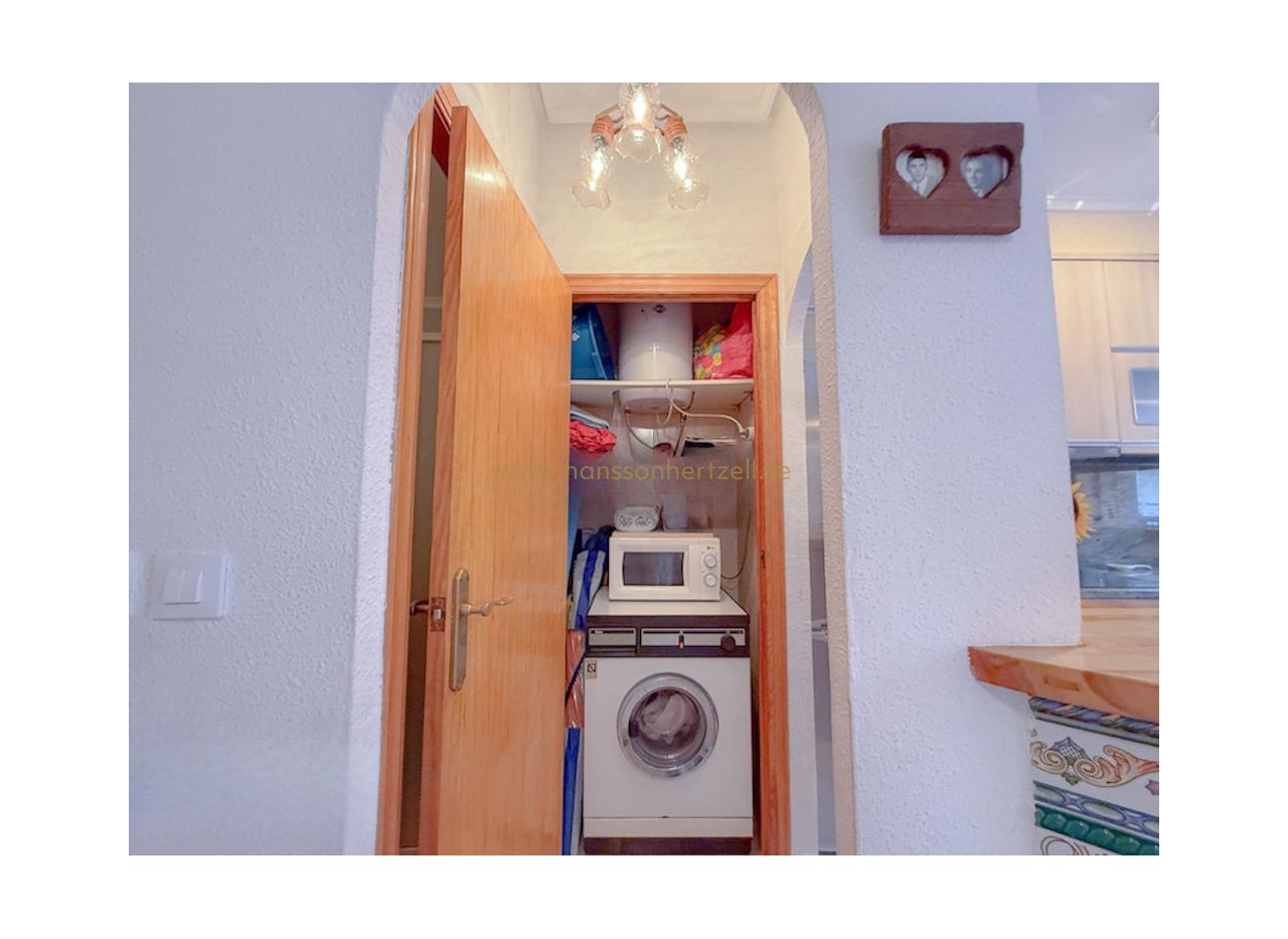 Denna bostad på 66m², byggd 1988, har hiss, parkeringsplats och tillgång till alla lokala bekvämligheter. Det är ett idealiskt semesterboende för dig som vill ha lugn, närhet till havet och ett vänligt grannskap i ett av Torreviejas mest eftertraktade områden.