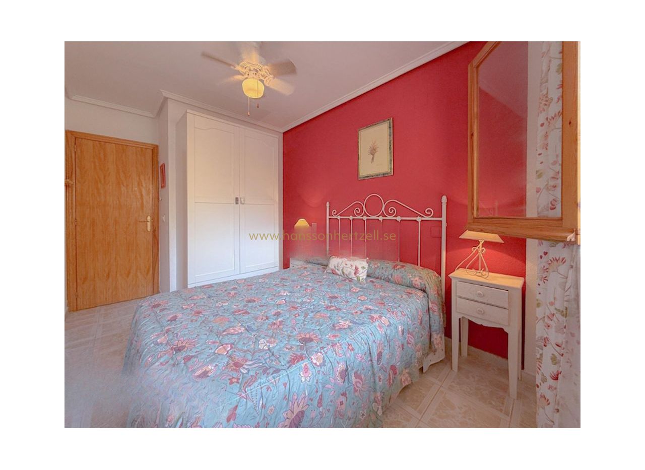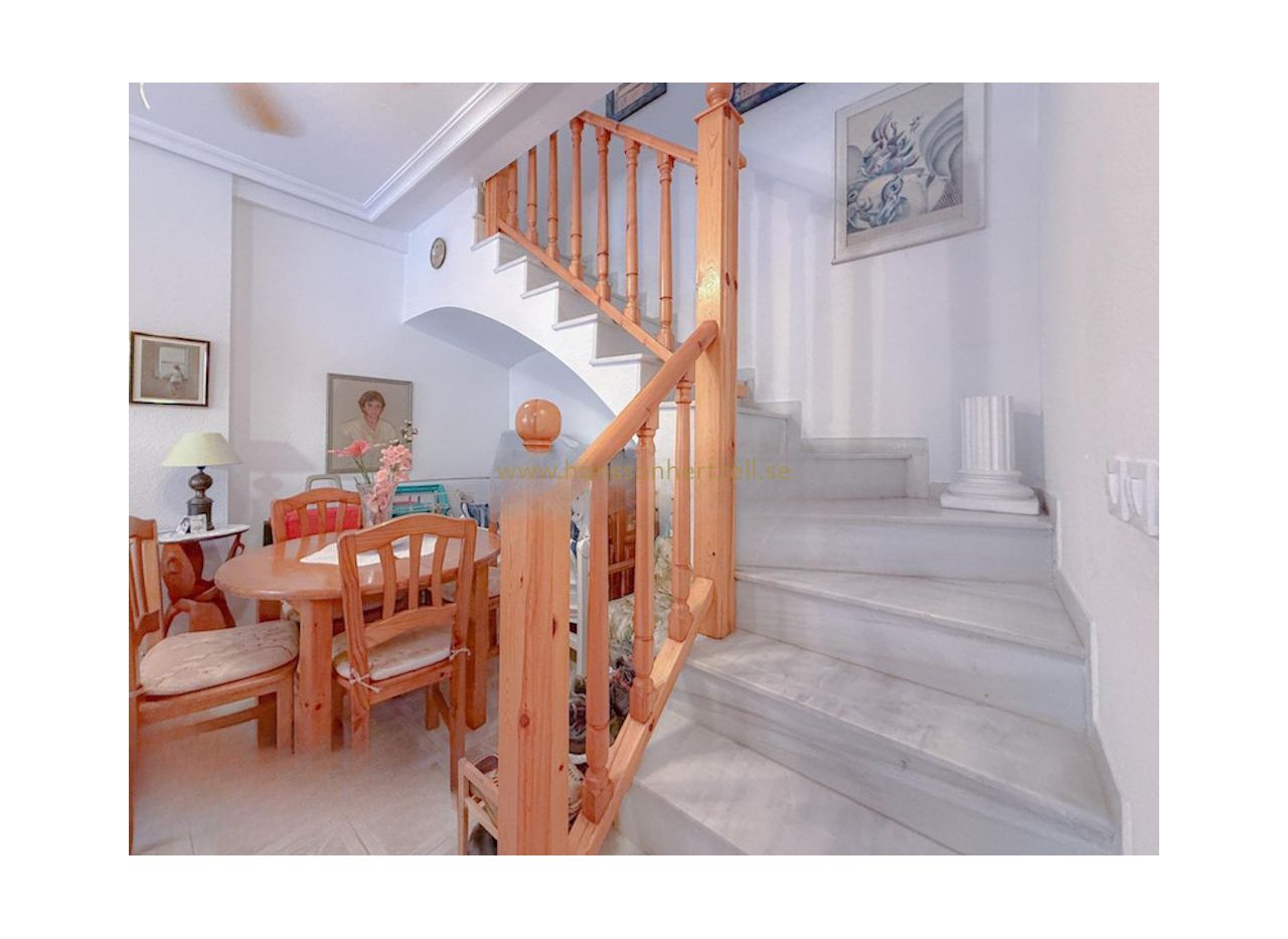 Upptäck charmen och komforten i detta fantastiska dubblexhus, beläget i ett exklusivt privat bostadsområde endast 300 meter från La Matas gyllene stränder. Detta inbjudande hem erbjuder två rymliga sovrum, två badrum och ett ljust vardagsrum som är perfekt för avkoppling efter en solig dag. Njut av svalkande dopp i den gemensamma poolen eller känn Medelhavsbrisen från din privata terrass.