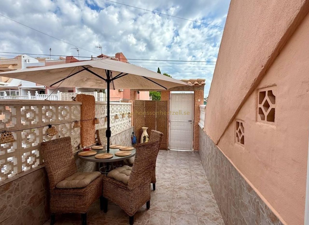 Los Frutales är ett av Torreviejas mest önskvärda bostadsområden, känt för sin lugna atmosfär och närhet till både strand och lokala bekvämligheter. Detta charmiga område ligger inom gångavstånd från Playa de Los Locos, känd för sin gyllene sand och kristallklara vatten. Torrevieja är en livlig kuststad i provinsen Alicante, berömd för sina saltsjöar, utmärkta klimat med över 320 soldagar per år, och rika kulturella arv. Staden erbjuder utmärkta sjukvårdsanläggningar, internationella skolor, köpcentra och en blomstrande expat-gemenskap, vilket gör den till en idealisk destination för permanent boende eller fritidshus.