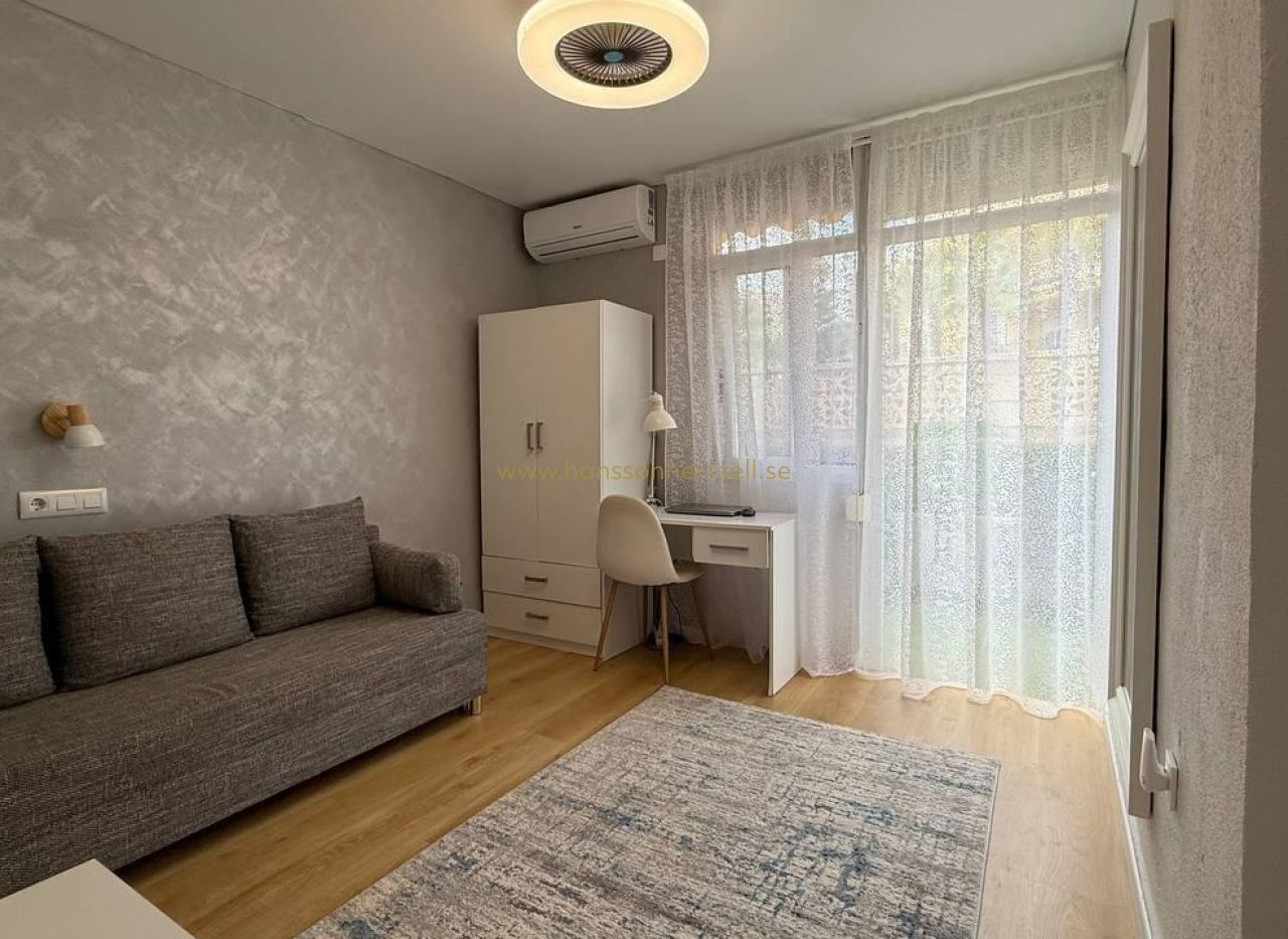 Byggd 1988 och helt renoverad enligt moderna standarder, har denna bottenvånings bungalow två bekväma sovrum och ett välutrustat badrum. Det öppna vardagsrummet maximerar det tillgängliga utrymmet och skapar en ljus och luftig atmosfär. Stora fönster låter naturligt ljus flöda in i interiören, medan den genomtänkta renoveringen säkerställer att alla moderna bekvämligheter finns inom räckhåll.