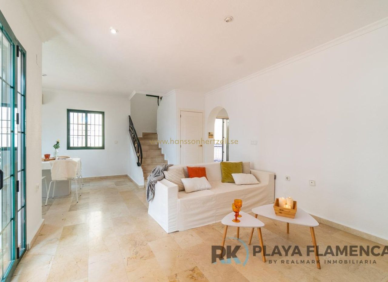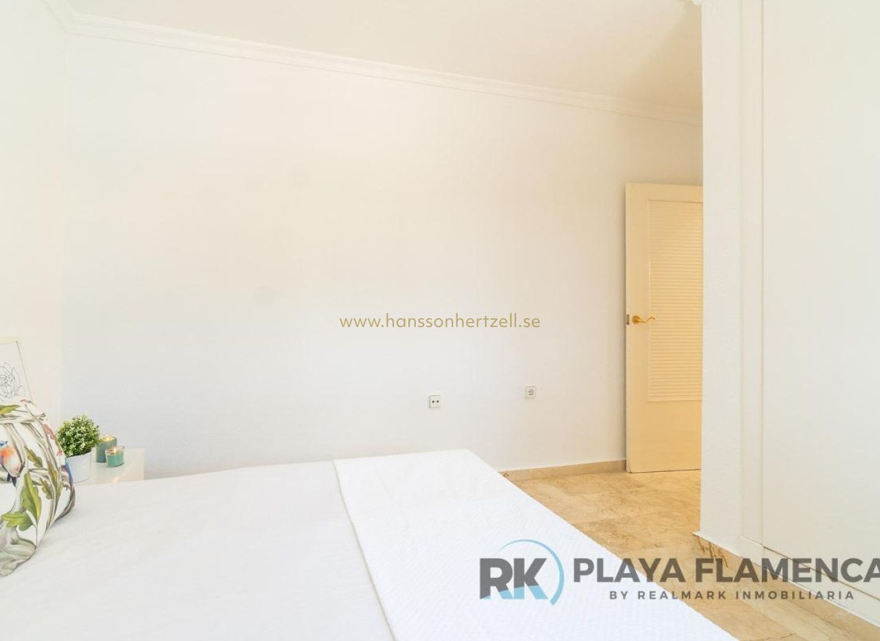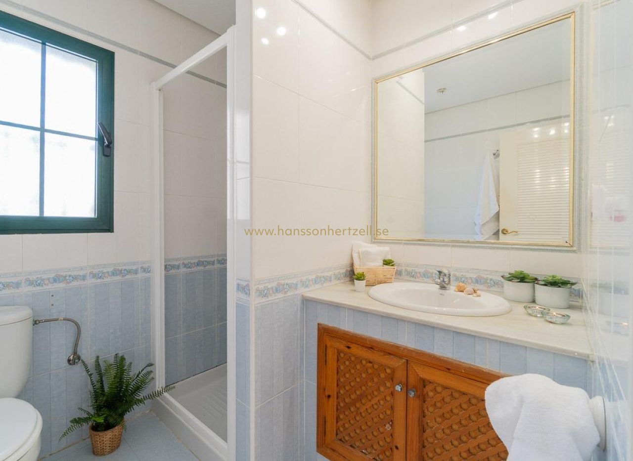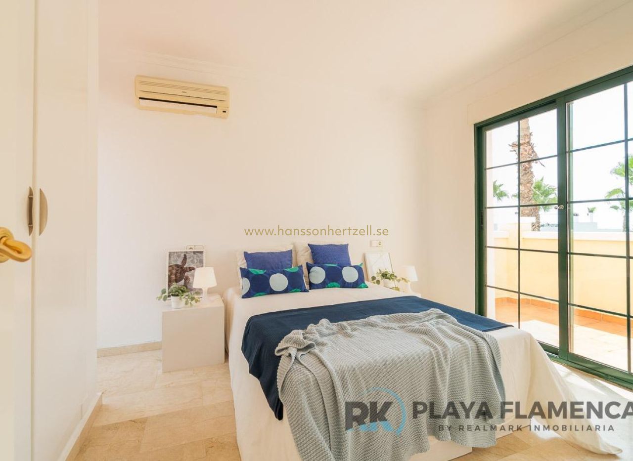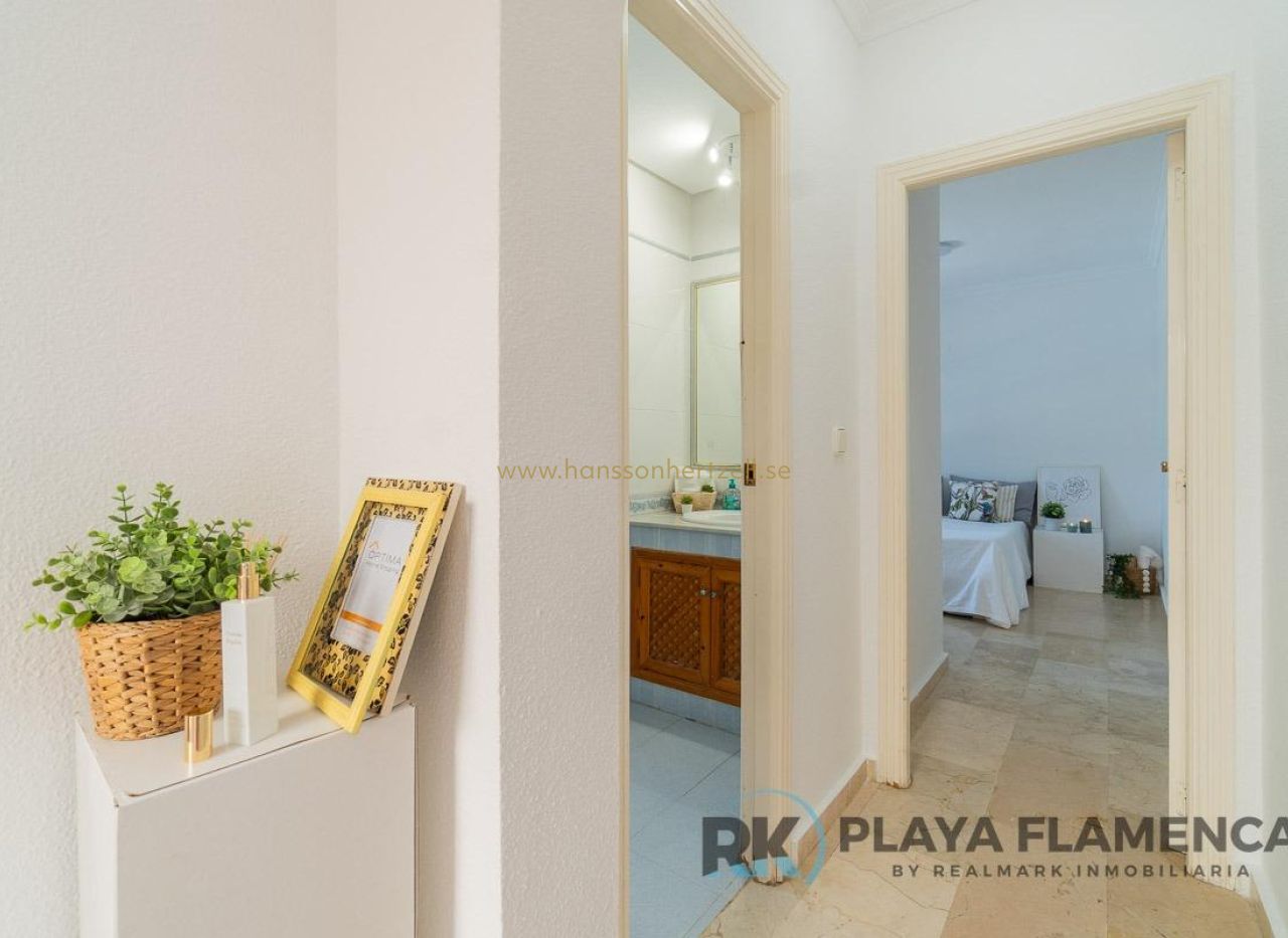 I ett av de lugnaste och mest exklusiva områdena i VillaMartin-området, mycket nära tre golfbanor och med egen trädgård och pool, ligger denna vackra villa med utsikt över grönområden, perfekt för en stor familj.~Fastigheten ligger nära tre golfbanor: Las Ramblas, Campoamor och Villamartín. Den har också enkel tillgång till avfarten från motorväg AP-7, med direkta förbindelser till flygplatserna i Alicante (ca 40 km) och Murcia (ca 40 km).~Den har en gemensam pool med trädgårdar, där du kan njuta av solbad och bad med resten av grannarna. Den har också en egen trädgård och kaklade terrasser, samt en pool i behov av renovering.~Villans storlek är idealisk för dem som söker utrymme, eller för att underhålla gäster och vänner; med sina 3 sovrum, 2 badrum och en rymlig tomt och trädgårdsområde.~Den 410 kvadratmeter stora tomten är perfekt för att ha utrymme och en känsla av självständighet, med sin stenlagda trädgård på framsidan med en bilinfart och en stenlagd bakgård med fri utsikt. Men eftersom den är stenlagd och inte har många träd och växter kräver den inte mycket underhåll eller arbete. Villan vetter mot söder på sin huvudfasad, terrasser och solarium, så den har sol praktiskt taget hela dagen. Denna villa är utan tvekan mångas dröm.~Och husets planlösning: från trädgården nås, som nämnts, den första terrassen, som vetter mot syd-sydväst. Den har sol hela dagen, men samtidigt, eftersom den är öppen mot trädgården och gatan, släpper den in en frisk bris. Denna rymliga terrass, med plats för soffor och bord, leder till husets huvudentré med en säkerhetsdörr, som öppnar sig mot det rymliga och ljusa vardagsrummet och matsalen med öppen spis. Det finns också ett separat kök med egen dörr och fönster, så att du kan laga mat utan att behöva oroa dig för lukt och fett som kommer in i resten av huset.~På bottenvåningen finns också ett rymligt sovrum med inbyggd garderob och ett badrum med duschkabin. Det betyder att om familjen har en äldre person eller någon med rörelsehinder kan de bo ensamma på denna våning utan att behöva gå upp och ner för trappor.~~Första våningen, som nås via den tvåvånings inre trappan med enkel åtkomst, leder till de andra två sovrummen med inbyggda garderober och direkt tillgång till det stora solariet och balkongen. Denna våning har också ett andra badrum, den här gången med badkar för avkopplande dopp och inbyggda möbler.~~Det betyder att varje våning har sitt eget badrum, sovrum och utrymme att njuta av både utomhus och inomhus, med terrasser, vilket gör det till det perfekta hemmet för en stor familj.~~~Bostaden är värd ett besök för sin rymlighet, sitt ljus, sin närhet till alla bekvämligheter och golfbanan, och sitt lugn.