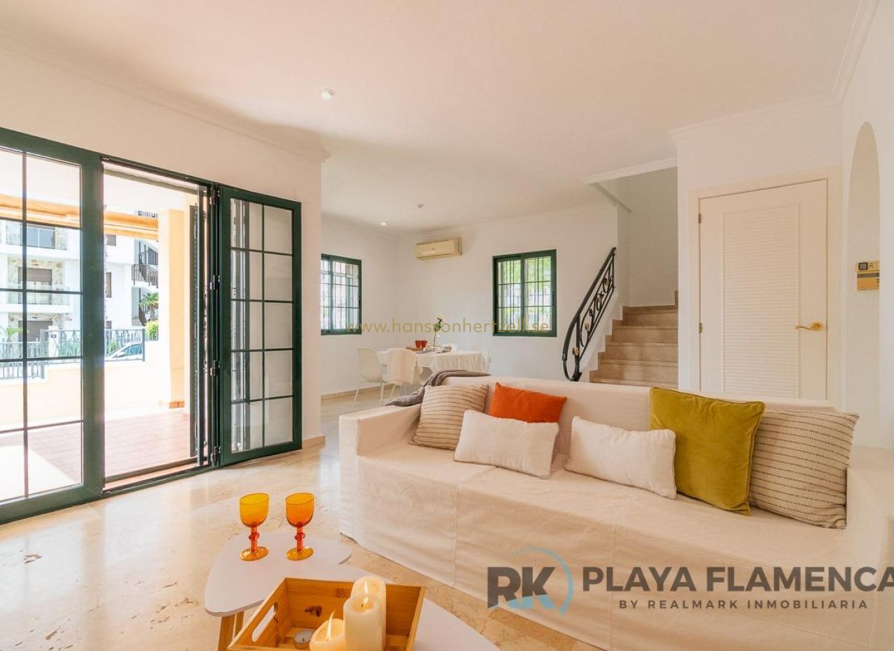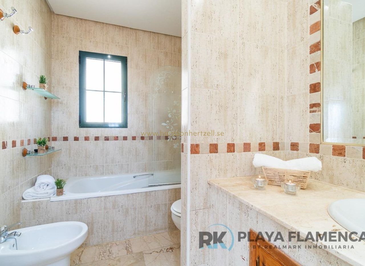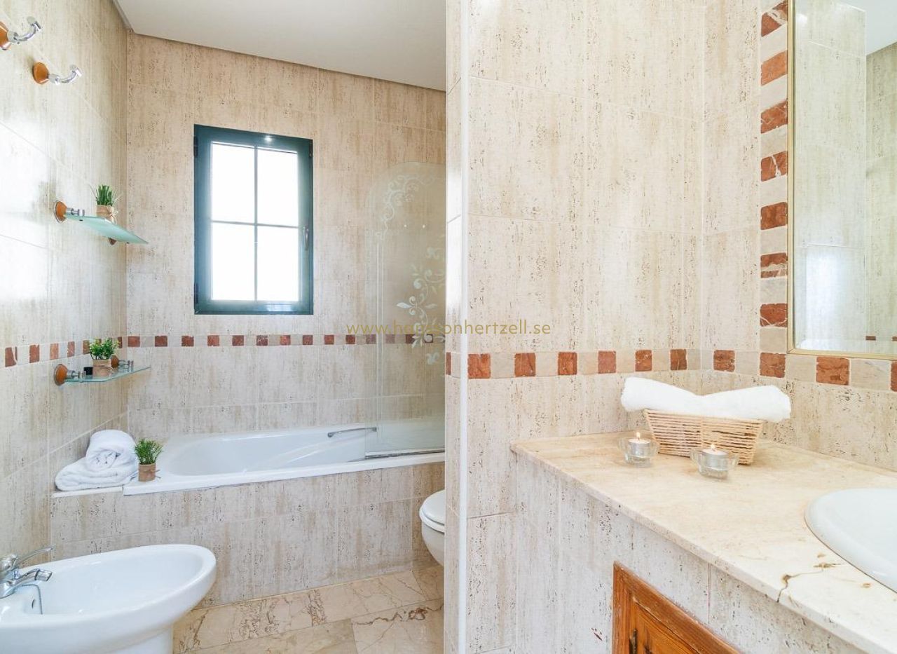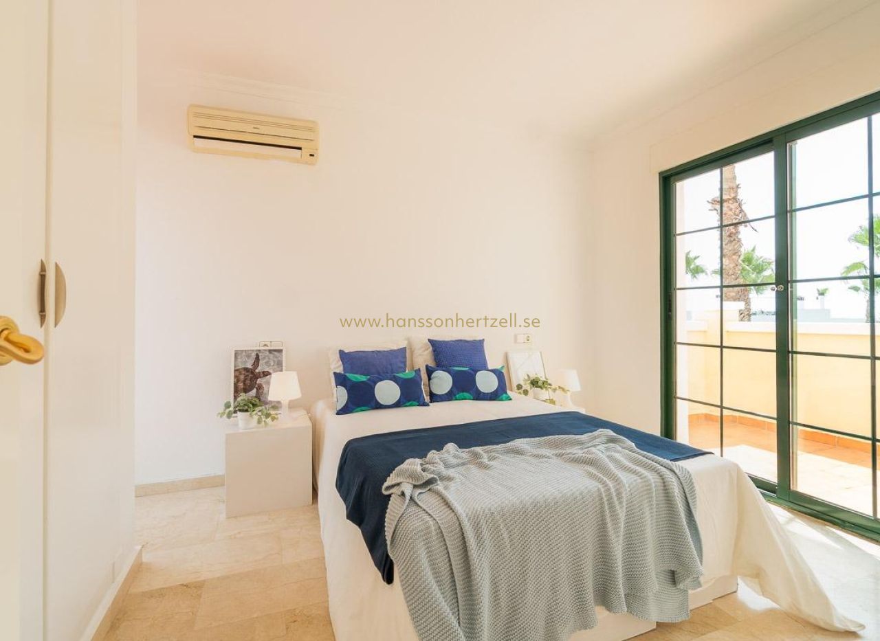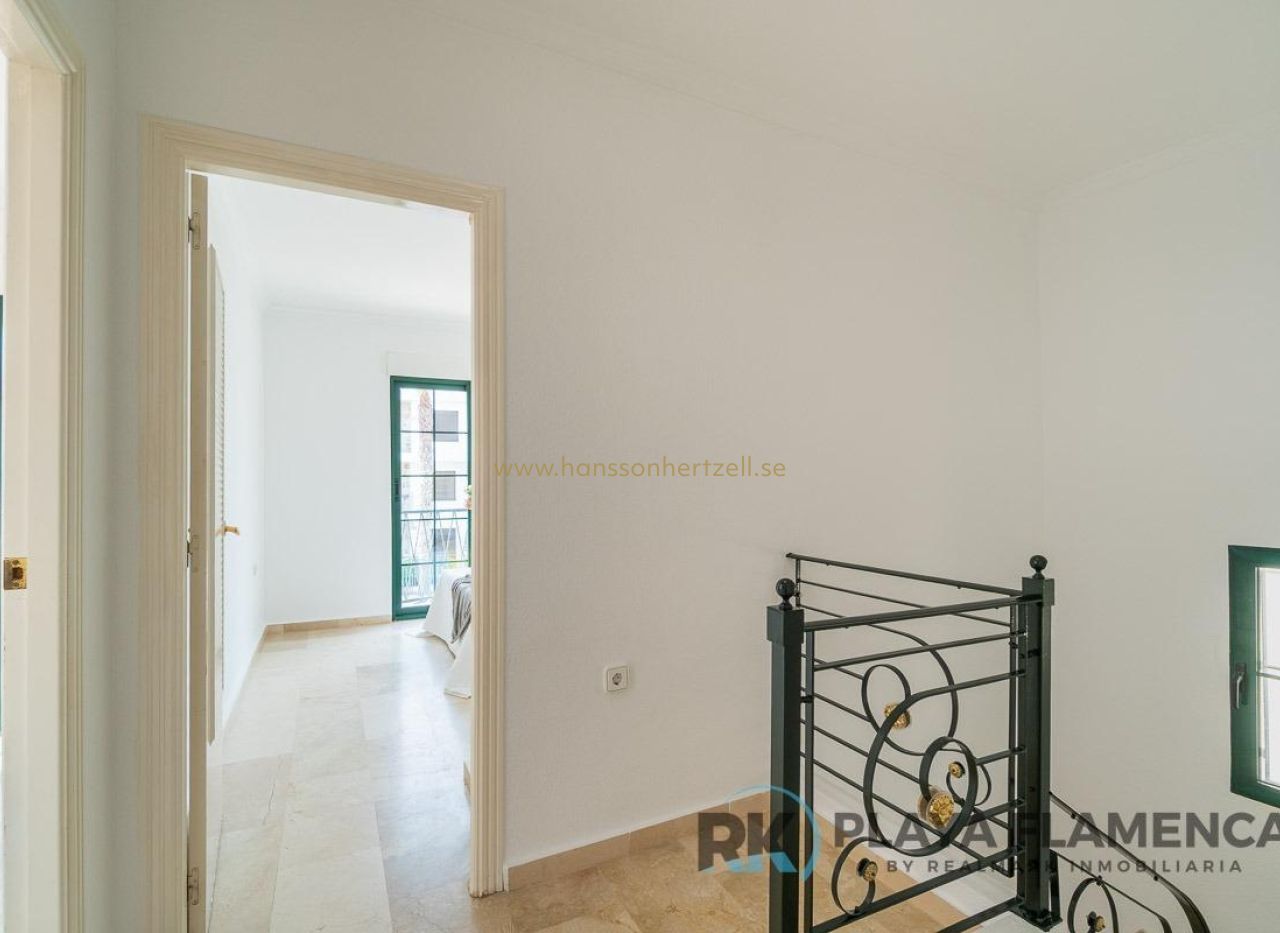 I ett av de lugnaste och mest exklusiva områdena i VillaMartin-området, mycket nära tre golfbanor och med egen trädgård och pool, ligger denna vackra villa med utsikt över grönområden, perfekt för en stor familj.~Fastigheten ligger nära tre golfbanor: Las Ramblas, Campoamor och Villamartín. Den har också enkel tillgång till avfarten från motorväg AP-7, med direkta förbindelser till flygplatserna i Alicante (ca 40 km) och Murcia (ca 40 km).~Den har en gemensam pool med trädgårdar, där du kan njuta av solbad och bad med resten av grannarna. Den har också en egen trädgård och kaklade terrasser, samt en pool i behov av renovering.~Villans storlek är idealisk för dem som söker utrymme, eller för att underhålla gäster och vänner; med sina 3 sovrum, 2 badrum och en rymlig tomt och trädgårdsområde.~Den 410 kvadratmeter stora tomten är perfekt för att ha utrymme och en känsla av självständighet, med sin stenlagda trädgård på framsidan med en bilinfart och en stenlagd bakgård med fri utsikt. Men eftersom den är stenlagd och inte har många träd och växter kräver den inte mycket underhåll eller arbete. Villan vetter mot söder på sin huvudfasad, terrasser och solarium, så den har sol praktiskt taget hela dagen. Denna villa är utan tvekan mångas dröm.~Och husets planlösning: från trädgården nås, som nämnts, den första terrassen, som vetter mot syd-sydväst. Den har sol hela dagen, men samtidigt, eftersom den är öppen mot trädgården och gatan, släpper den in en frisk bris. Denna rymliga terrass, med plats för soffor och bord, leder till husets huvudentré med en säkerhetsdörr, som öppnar sig mot det rymliga och ljusa vardagsrummet och matsalen med öppen spis. Det finns också ett separat kök med egen dörr och fönster, så att du kan laga mat utan att behöva oroa dig för lukt och fett som kommer in i resten av huset.~På bottenvåningen finns också ett rymligt sovrum med inbyggd garderob och ett badrum med duschkabin. Det betyder att om familjen har en äldre person eller någon med rörelsehinder kan de bo ensamma på denna våning utan att behöva gå upp och ner för trappor.~~Första våningen, som nås via den tvåvånings inre trappan med enkel åtkomst, leder till de andra två sovrummen med inbyggda garderober och direkt tillgång till det stora solariet och balkongen. Denna våning har också ett andra badrum, den här gången med badkar för avkopplande dopp och inbyggda möbler.~~Det betyder att varje våning har sitt eget badrum, sovrum och utrymme att njuta av både utomhus och inomhus, med terrasser, vilket gör det till det perfekta hemmet för en stor familj.~~~Bostaden är värd ett besök för sin rymlighet, sitt ljus, sin närhet till alla bekvämligheter och golfbanan, och sitt lugn.