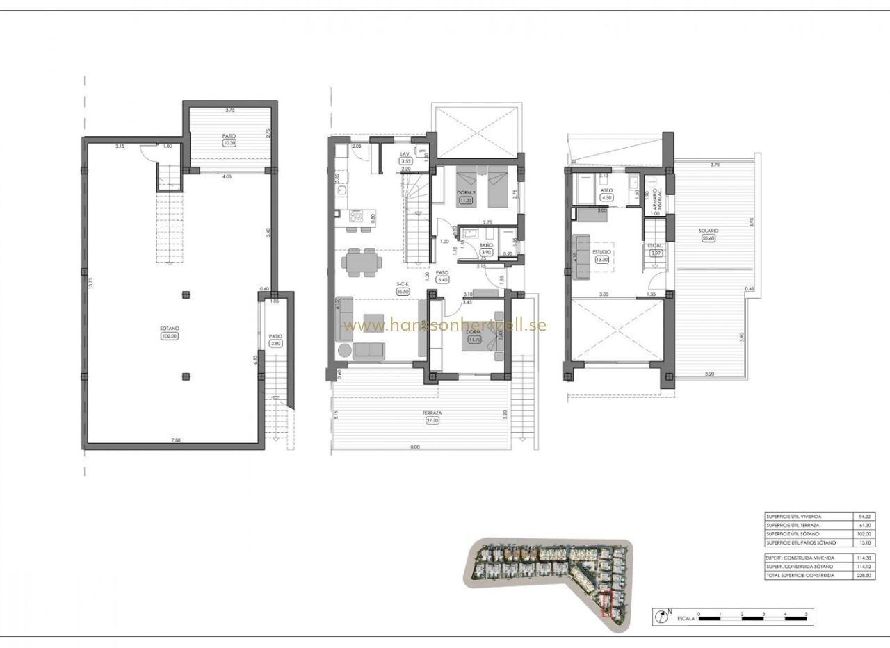 NYBYGGDA BOSTADSOMRÅDEN I ALGORFA Nybyggd bostadsområde med fristående eller parhusvillor och lägenheter med fantastisk gemensam pool och grönområden i La Finca Golfbana, Algorfa. Nybyggda parhusvillor med 3 sovrum, 2 badrum, ett öppet kök med matplats, ett rymligt vardagsrum med terrassdörrar som leder ut till trädgården med pool och parkeringsplats, halvfärdig källare. Bostadskomplex beläget i La Finca Golf resort, i kommunen Algorfa, i området Vega Baja på Costa Blanca Syd. Endast 15 minuters bilresa från sandstränderna i Guardamar del Segura och endast 35 minuter från Alicantes flygplats. De större städerna Almoradi, Benijófar och Ciudad Quesada ligger en kort bilresa bort. Torrevieja och Orihuela Costa, med sina stora köpcentrum, ligger 15 minuter bort.