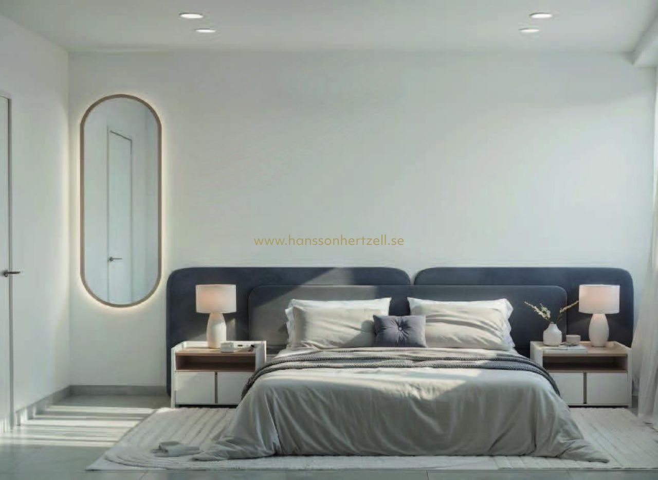 Moderna lägenheter till salu bara 250 meter från El Cura-stranden i Torrevieja, Costa Blanca Exklusiv nybyggnation nära havet Denna nya bostadsanläggning med 16 moderna bostäder är utformad för att fånga essensen av medelhavslivet. Belägen bara 250 meter från El Cura-stranden i Torrevieja (Alicante) erbjuder denna anläggning en perfekt blandning av komfort, design och läge. Med alla tjänster i närheten och utmärkta kollektivtrafikförbindelser, inklusive huvudbusstationen inom gångavstånd, erbjuder det en idealisk miljö för både åretruntboende och semester vid havet. Modern design och funktionella bostadsutrymmen Bostadsområdet omfattar ett urval av bostäder med 1 eller 2 sovrum och 1 eller 2 badrum, med olika planlösningar som passar alla livsstilar. Varje bostad kännetecknas av ljusa, öppna ytor, elegant finish och utmärkt byggkvalitet. Bland funktionerna finns inbyggda garderober, förinstallation av luftkonditionering, hiss och högkvalitativa material i hela lägenheten. Lägenheterna på bottenvåningen och standardlägenheterna har privata terrasser som är perfekta för avkoppling utomhus, medan takvåningarna har rymliga privata solterrasser – perfekta för solbad, middagar eller för att njuta av de vackra solnedgångarna över Medelhavet. Exklusiva gemensamma utrymmen för din njutning Bostadskomplexet är utformat för komfort och socialt umgänge. Boende kan njuta av ett spektakulärt gemensamt område på taket med pool, solstolar och anlagda områden – en fridfull oas för sommarens avkoppling. Utmärkt läge i Torrevieja Torrevieja är en av de mest populära destinationerna på Costa Blanca, känd för sina kristallklara stränder, behagliga klimat året runt och livliga atmosfär vid havet. Att bo här innebär att du kan njuta av dagliga promenader längs strandpromenaden, äta på restauranger vid stranden och uppleva den autentiska medelhavslivsstilen. Avstånd till viktiga sevärdheter El Cura-stranden: 250 m Torrevieja marina och hamn: 2 km Las Habaneras shoppingcenter: 3 km Närmaste golfbanor: 7–10 km Alicante-Elche flygplats: 45 km Det perfekta hemmet vid havet Oavsett om du letar efter en permanent bostad, ett semesterhus eller en smart investeringsmöjlighet, erbjuder dessa nybyggda lägenheter i Torrevieja den perfekta kombinationen av modernt boende, kustnära charm och bekvämlighet. Kontakta oss idag för mer information eller för att boka ett besök och säkra ditt drömhem bara några steg från El Cura-stranden i Torrevieja.