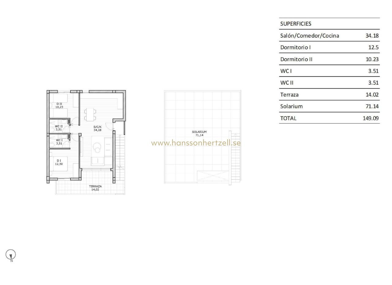 NYBYGGDA BUNGALOWLÄGENHETER I SAN MIGUEL DE SALINAS Nybyggt bostadsområde med bungalows i San Miguel del Salinas. Bostäderna består av bungalowlägenheter med 2 och 3 sovrum, på bottenvåningen med en privat trädgård eller översta våningen med ett privat solarium. Ett exklusivt bostadsområde som erbjuder högkvalitativa bostäder med utmärkt termisk och akustisk isolering, ytbehandlingar av högsta kvalitet och kompletta faciliteter. Faciliteterna inkluderar två pooler, stora trädgårdsområden och väl utformade gemensamma utrymmen, vilket garanterar en bekväm och säker miljö. Varje fastighet har modernt utrustade kök, porslinsgolv och effektiva VVS- och luftkonditioneringssystem. Bostadsområdet ligger i San Miguel de Salinas nära golfbanorna Las Colinas och Campoamor, köpcentra, lagunerna Torrevieja och La Mata och sandstränderna i Orihuela Costa. San Miguel de Salinas är en kommun i Valencian Community, Spanien. Beläget i södra delen av provinsen Alicante, i regionen Vega Baja del Segura nära regionen Murcia. Alicantes flygplats ligger 35 minuters bilresa bort och Murcias Corvera flygplats ligger cirka 1 timmes bilresa bort.
