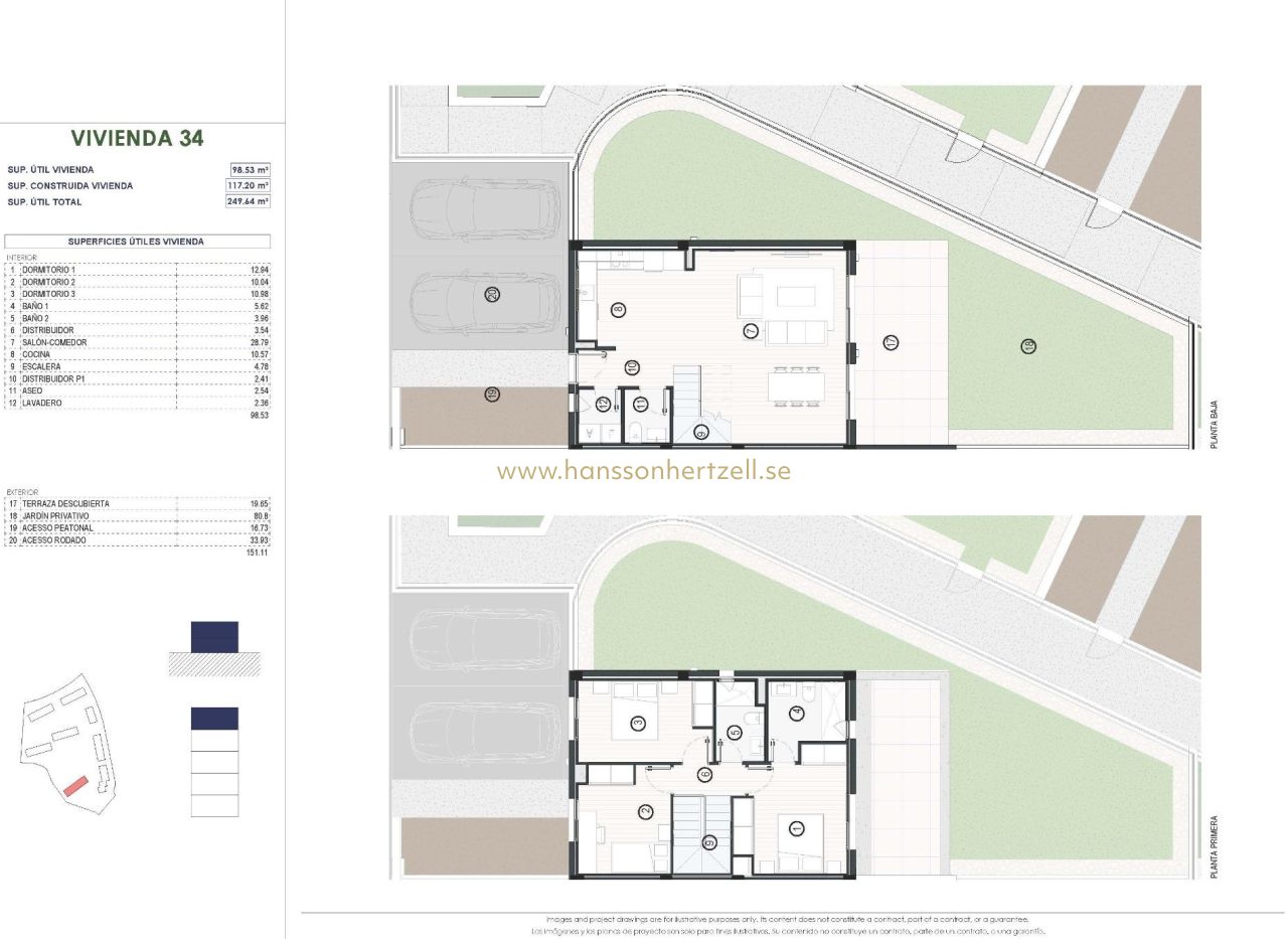 Moderna radhus med 3 sovrum till salu i Balcon de Finestrat på Costa Blanca Moderna bostäder i ett utmärkt läge vid Medelhavet Detta nya bostadsområde med radhus med 3 sovrum, 2 badrum och 1 gästtoalett ligger i Balcon de Finestrat, ett lugnt och välskött område på Costa Blanca. Bara några minuter från Benidorm och intill golfbanan Puig Campana erbjuder detta läge en idealisk balans mellan natur, hav och nödvändiga tjänster. Området är känt för sitt vackra bergslandskap, enkel tillgång till fritidsområden och ett behagligt klimat året runt. Modern design med ljusa och funktionella interiörer Radhusen har en modern öppen planlösning. Bottenvåningen har ett rymligt kök, matplats och vardagsrum med mycket naturligt ljus, samt en gästtoalett. På övervåningen erbjuder de dubbla sovrummen och de fullt utrustade badrummen komfort och avskildhet för hela familjen. Vissa enheter har en 50 m2 stor källare med förinstallation för ett extra badrum och ett öppet utrymme som ägarna kan anpassa efter eget tycke, med direkt tillgång till trädgården. Utomhusutrymmen utformade för medelhavsliv Varje fastighet har generösa terrasser, perfekta för att njuta av utsikten över den natursköna omgivningen och det soliga vädret på Costa Blanca. Bostadsområdet har en pool, anlagda trädgårdar och utomhusområden för avkoppling, vilket skapar en lugn miljö för de boende. Högkvalitativa ytbehandlingar och energieffektivitet Bostäderna har fullt utrustade badrum med möbler, speglar och duschväggar, komplett luftkonditioneringsinstallation, solpaneler för elförsörjning, pansrad ytterdörr och energicertifikat A. Källarna har förinstallation för luftkonditioneringsaggregat. Utmärkt kommunikation och närliggande tjänster Sandstränderna i Benidorm och Villajoyosa ligger bara 4 km bort, och shoppingcentret La Marina ligger bara en kort bilresa bort och erbjuder restauranger, butiker och underhållning. I närheten finns internationella skolor, stormarknader och alla dagliga bekvämligheter. Intressanta avstånd: Alicante flygplats 40 km, Puig Campana golfbana 1 km, Benidorms stränder 4 km, Villajoyosas hamn 9 km. En bekväm och praktisk livsstil Varje fastighet har en eller två privata parkeringsplatser utomhus, vilket garanterar praktiskhet och komfort året runt. Kontakta oss idag för att boka en visning och säkra ditt nya hem i Balcon de Finestrat.