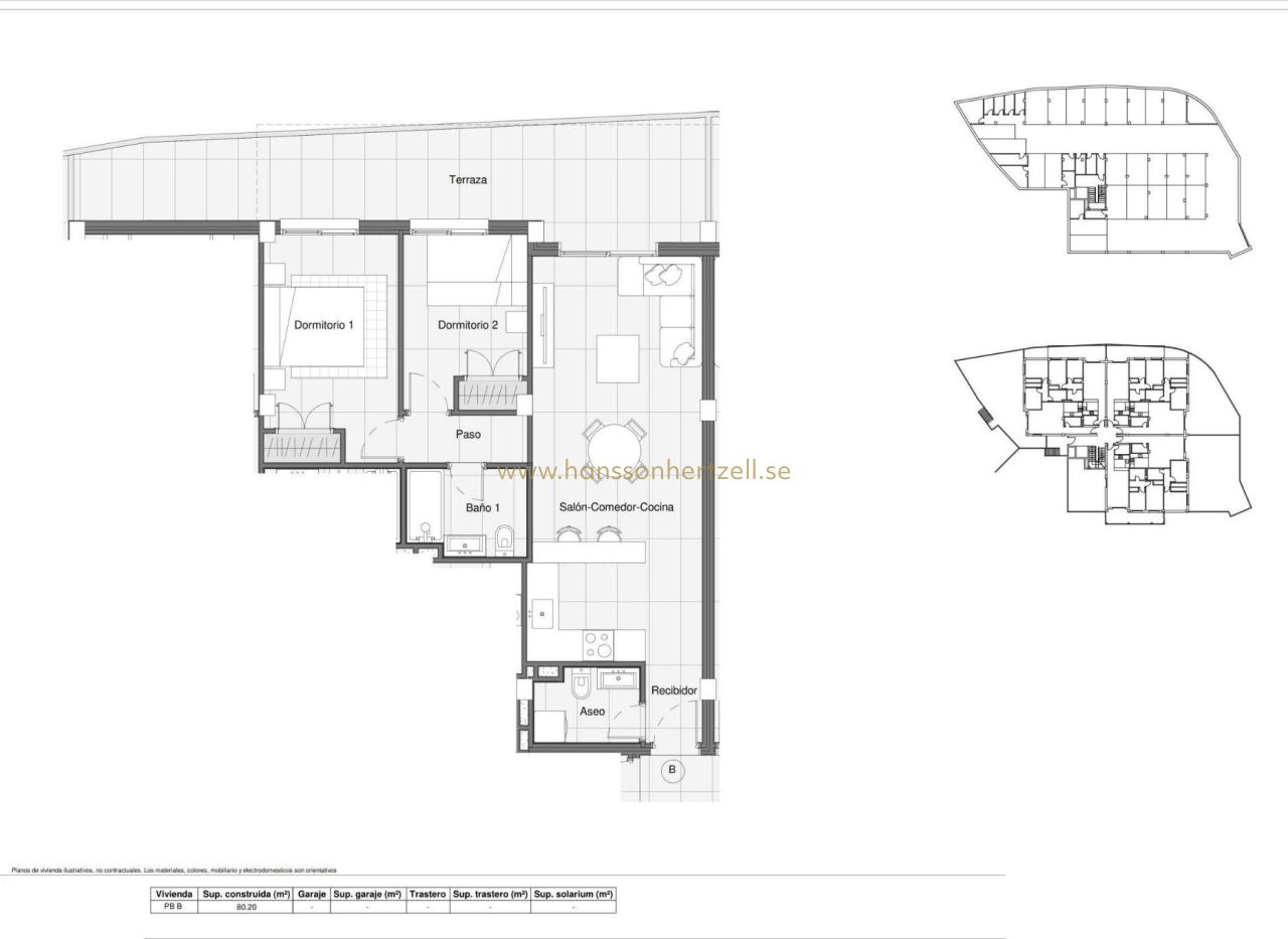 Nybyggda lägenheter i Bigastro Costa Blanca Modernt boende i Vega Baja del Segura Detta nya bostadsområde ligger i hjärtat av regionen Vega Baja del Segura, i den charmiga staden Bigastro i Alicante. Bigastro är känt för sin fridfulla atmosfär och traditionella omgivning och erbjuder en utmärkt balans mellan natur, komfort och närhet till de viktigaste kustorterna på Costa Blanca. Bara några minuter från Orihuela och inom bekvämt avstånd från Torrevieja och Guardamar del Segura är detta läge idealiskt för dem som söker lugn och ro utan att ge avkall på kommunikationer och service. Moderna lägenheter med utomhusutrymmen Byggnaden består av bottenvåningen plus tre våningar och erbjuder moderna lägenheter med 2 sovrum, 1 badrum och 1 gästtoalett, med tillräckligt med utrymme för att lägga till en extra dusch. Varje bostad har utformats för att maximera utrymmet och det naturliga ljuset. Lägenheterna på bottenvåningen har stora terrasser eller privata trädgårdar, lägenheterna på mellanvåningarna har rymliga terrasser och takvåningarna har privata solterrasser, perfekta för utomhusliv året runt. Högkvalitativa ytbehandlingar och inkluderade funktioner Alla lägenheter levereras med högkvalitativa specifikationer utformade för komfort och effektivitet. Funktionerna inkluderar fullständig luftkonditionering med kanaler, möblerade kök utrustade med vitvaror, elektriska fönsterluckor och badrum utrustade med möbler, speglar och duschväggar. En underjordisk parkeringsplats ingår i varje bostad, och utvalda enheter har även ett privat förråd. Gemensamma utrymmen och medelhavslivsstil Bostadskomplexet erbjuder en väl utformad gemensam pool och anlagda trädgårdsområden, vilket skapar en avkopplande miljö för boende. Området är omgivet av traditionell jordbruksmark, mjuka kullar och vandringsleder och inbjuder till utomhusaktiviteter som promenader och cykling, vilket främjar en hälsosam medelhavslivsstil i en säker och välkomnande miljö. Bigastro Läge och lokala tjänster Bigastro är en mysig kommun i södra Alicante med alla nödvändiga tjänster i närheten, inklusive stormarknader, skolor, vårdcentraler, idrottsanläggningar och ett varierat gastronomiskt utbud. Trots sin lugna miljö har staden utmärkta vägförbindelser via motorvägen AP 7, vilket gör resor längs Costa Blanca snabba och enkla. Avstånd till viktiga sevärdheter Orihuela centrum: 5 km Guardamar del Segura stränder: 25 km Torrevieja: 30 km Zenia Boulevard shoppingcenter: 30 km Alicante Elche internationella flygplats: 55 km Närmaste golfbanor: 20 km Ett idealiskt hem eller en investeringsmöjlighet Oavsett om du letar efter en permanent bostad, ett semesterhus eller en smart investering på Costa Blanca, erbjuder dessa nybyggda lägenheter i Bigastro modern design, stort värde och ett utmärkt läge. Kontakta oss idag för att få mer information eller för att boka en visning och säkra ditt nya hem i Vega Baja-regionen.