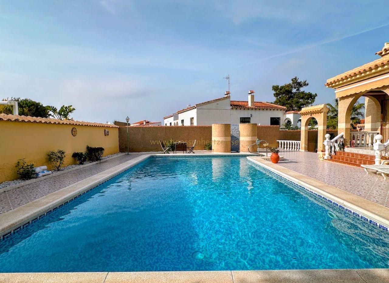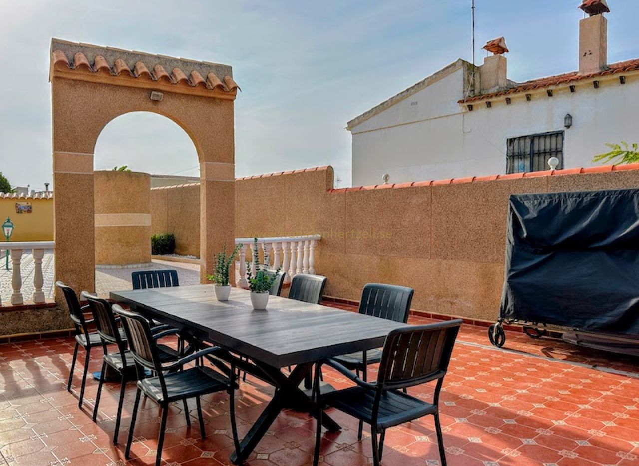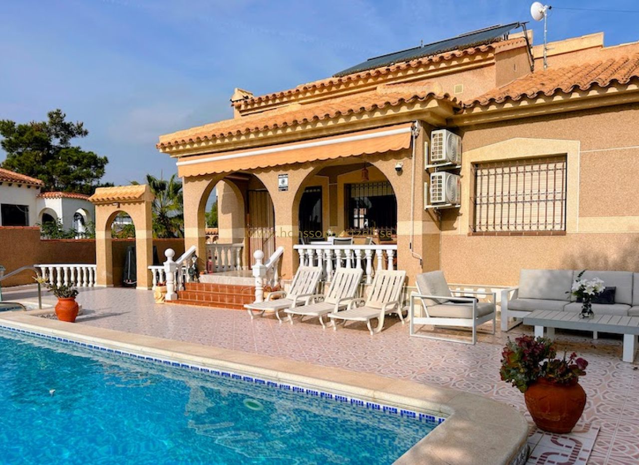 Denna vackert underhållna familjvilla i det lugna kvarteret El Chaparral i Torrevieja erbjuder en exceptionell livsstilsmöjlighet på Spaniens Costa Blanca. Byggd 1993 på en generös tomt på 764m² har denna 212m² stora fastighet vårdats kärleksfullt av sina tyska ägare och nyligen uppdaterats med moderna bekvämligheter genom hela huset.