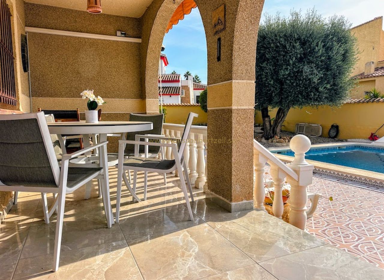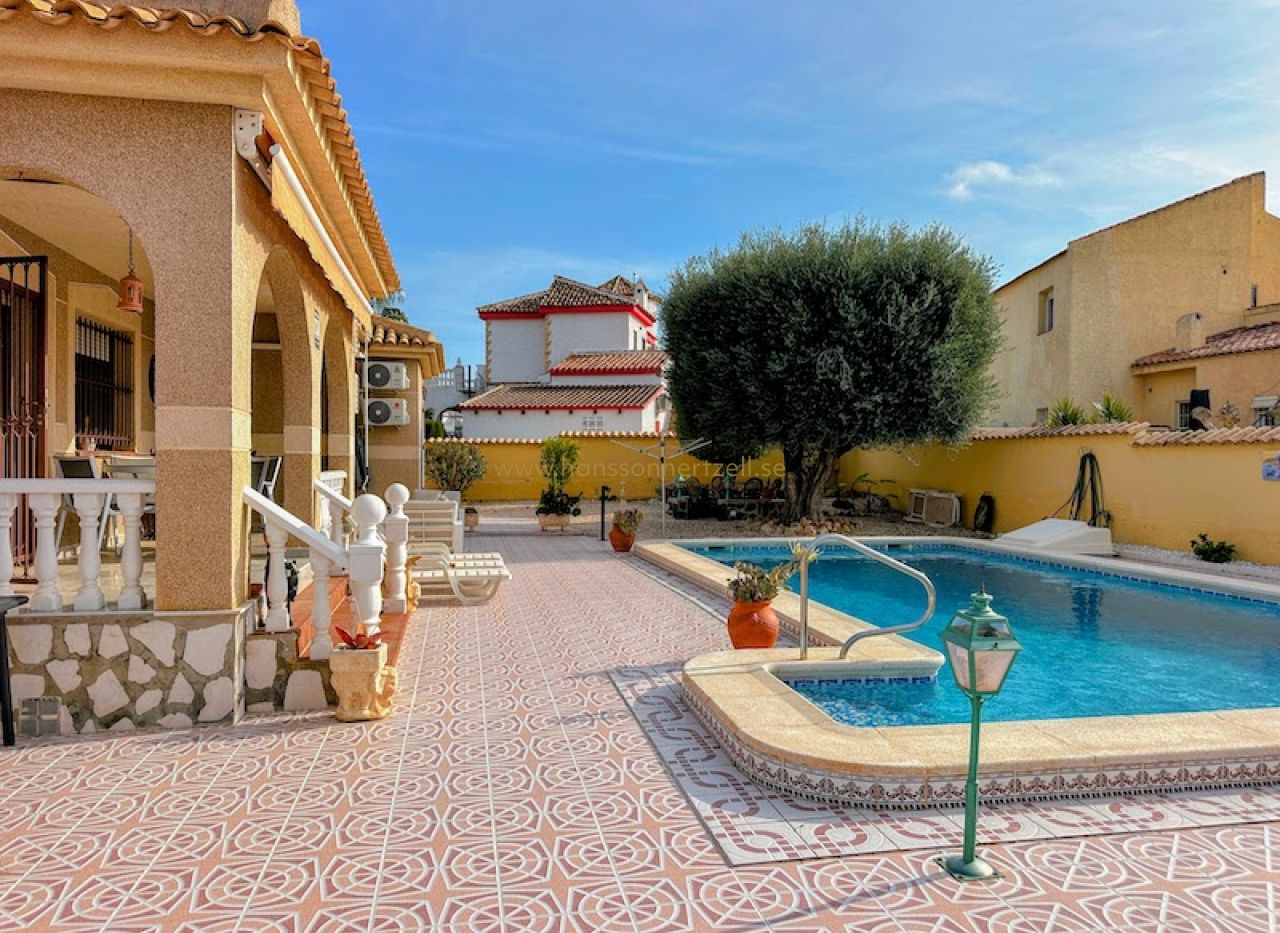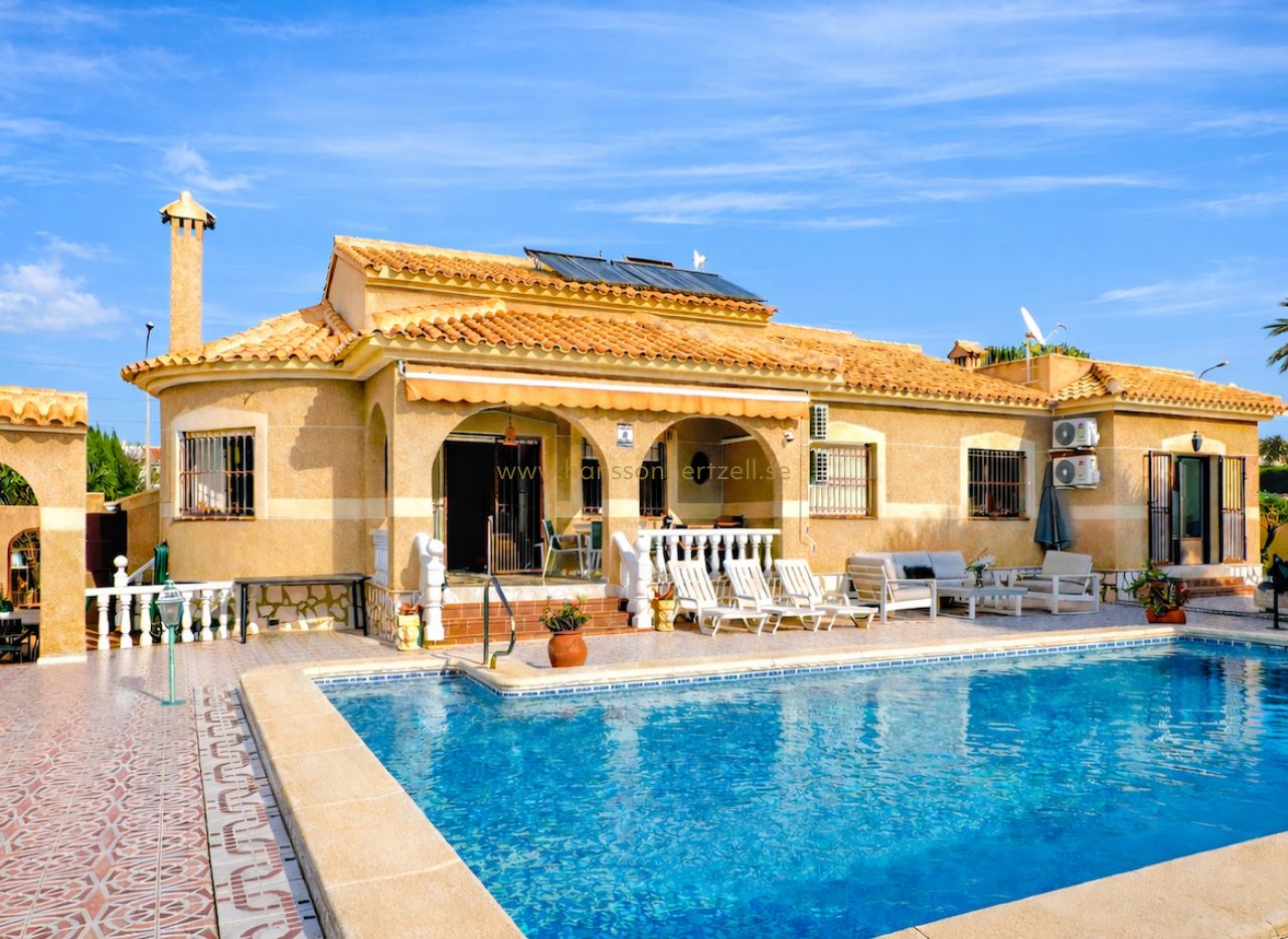 Denna vackert underhållna familjvilla i det lugna kvarteret El Chaparral i Torrevieja erbjuder en exceptionell livsstilsmöjlighet på Spaniens Costa Blanca. Byggd 1993 på en generös tomt på 764m² har denna 212m² stora fastighet vårdats kärleksfullt av sina tyska ägare och nyligen uppdaterats med moderna bekvämligheter genom hela huset.