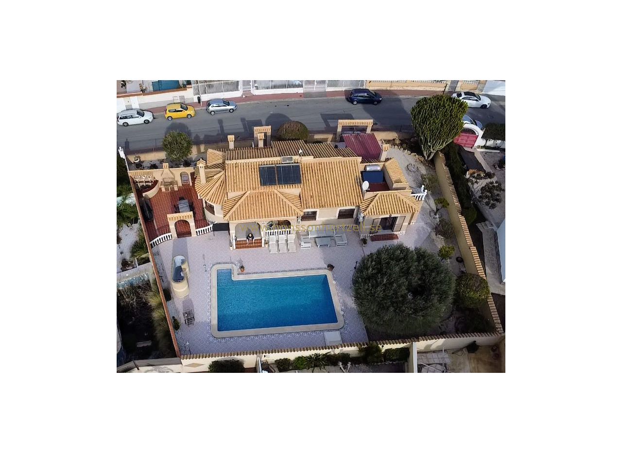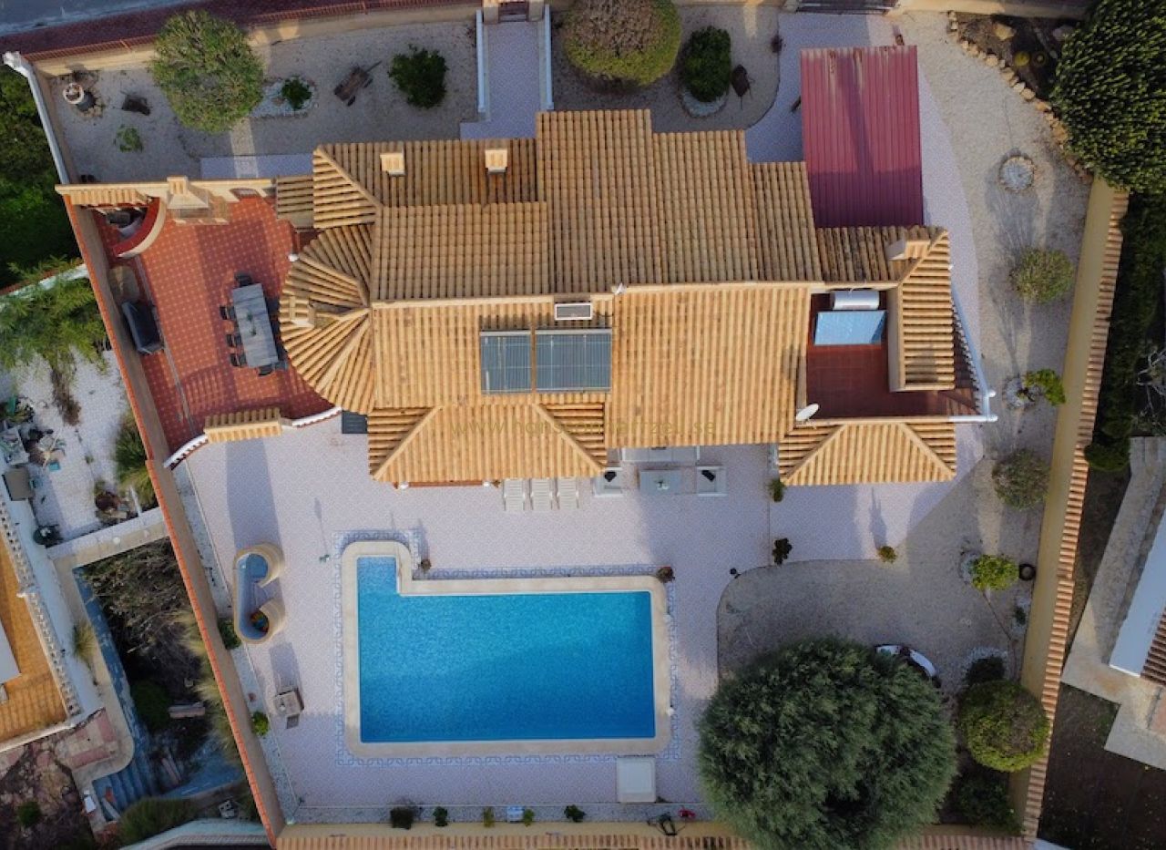 Utomhus tar saltvattenpoolen huvudrollen i en vackert anlagd trädgård som underhålls av ett effektivt bevattningssystem. Det omfattande grillområdet med bar och matplats gör utomhusunderhållning oansträng. En liten takterrass hyser solpanelerna som värmer vattnet året runt, medan automatiska grindar ger säker täckt parkering.