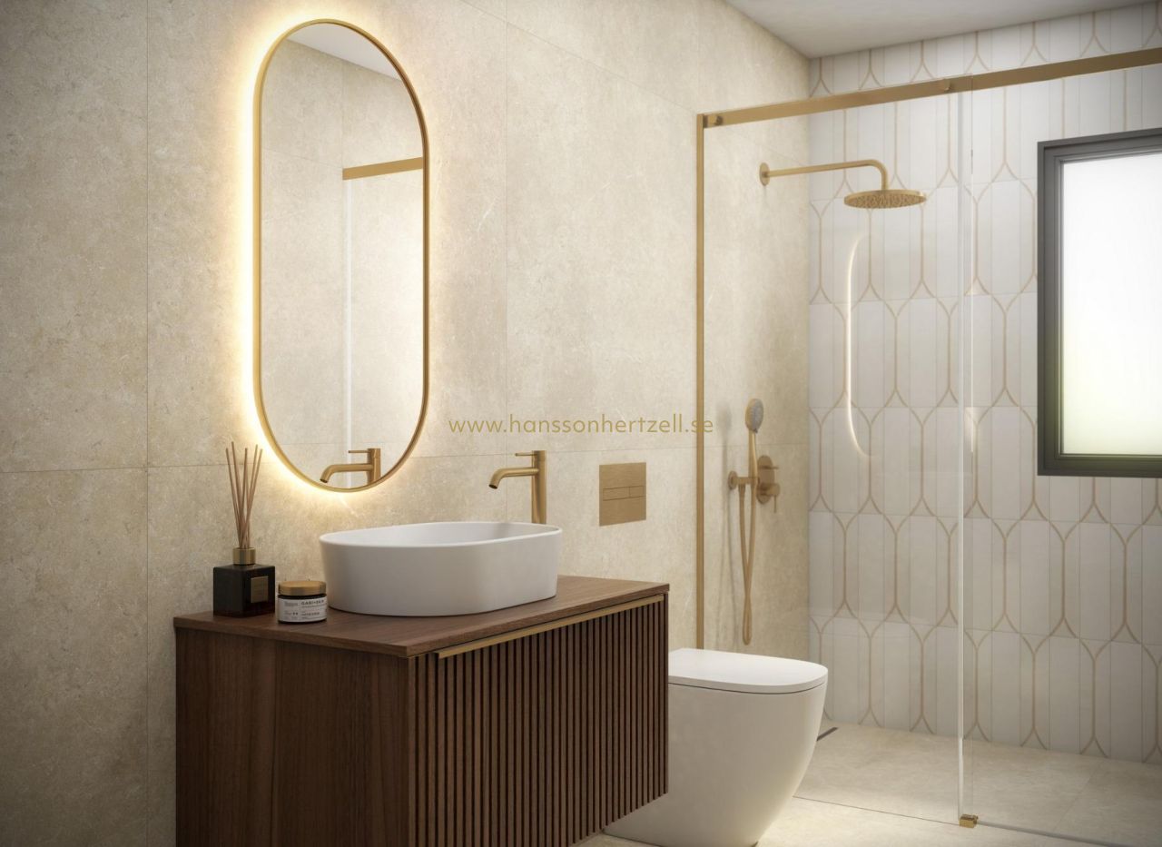 Lyxiga nybyggda villor intill La Finca Golf i Algorfa Exklusiva villor i en prestigefylld golfmiljö Detta boutique-projekt med endast 8 lyxiga fristående villor ligger i andra linjen från den berömda La Finca Golf Resort i Algorfa. Dessa nybyggda villor ligger i ett lugnt och väl etablerat bostadsområde och erbjuder avskildhet, komfort och en exceptionell medelhavslivsstil omgiven av natur och golflandskap. Läget är idealiskt för dem som söker lugn och ro samtidigt som de vill ha nära till service, fritidsaktiviteter och Costa Blancas bästa stränder. Algorfa är en charmig spansk stad känd för sin avslappnade atmosfär, traditionella restauranger och närhet till förstklassiga golfresorter. La Finca Golf är en av de mest prestigefyllda golfanläggningarna i området och erbjuder en 18-håls mästerskapsbana, hotell, spa, sportfaciliteter och högklassiga restauranger. Modern design i ett plan med medelhavskaraktär Alla villor är designade i ett plan för maximal komfort och funktionalitet. Den L-formade planlösningen separerar tydligt vardagsrum och kök från sovrummen, vilket skapar ljusa och välbalanserade interiörer. Stora fönster släpper in naturligt ljus i hela huset och skapar en sömlös övergång till utomhusområdena. Varje villa har 3 rymliga sovrum och 2 moderna badrum, byggda på generösa tomter på över 400 kvm. Utomhusutrymmena inkluderar en privat pool, anlagd trädgård med automatisk bevattning, parkering på tomten och ett stort privat solarium som är perfekt för att njuta av solen året runt. Högkvalitativa funktioner och energieffektivitet Dessa villor kombinerar traditionell medelhavsinspiration med samtida arkitektur och modern teknik. Husen levereras med aerotermiskt system för varmvatten, förinstallation av luftkonditionering, hemautomatiseringssystem, aluminiumfönster med elektriska fönsterluckor och fullt utrustade kök med vitvaror. Badrummen har möbler, duschväggar och golvvärme, vilket garanterar komfort och kvalitet i varje detalj. De övergripande byggstandarderna fokuserar på effektivitet, design och långsiktigt värde. Strategiskt läge nära stränder och service La Finca Golf Resort erbjuder en hälsosam och avslappnad livsstil med sport- och fritidsfaciliteter i närheten. Stränderna i Guardamar del Segura ligger cirka 14 km bort. Torrevieja och Orihuela Costa med shoppingcenter och småbåtshamnar ligger inom 15 till 18 km. Alicante internationella flygplats ligger cirka 35 km bort och erbjuder utmärkta förbindelser över hela Europa. Flera andra golfbanor finns inom 10 km. Ett idealiskt hem eller en investering på Costa Blanca Dessa lyxvillor representerar en unik möjlighet att äga ett modernt hem i ett av de mest eftertraktade golfområdena i södra Costa Blanca. Perfekt som permanentbostad, semesterbostad eller investeringsfastighet. Kontakta oss idag för mer information eller för att boka en privat visning av detta exklusiva bostadsområde.
