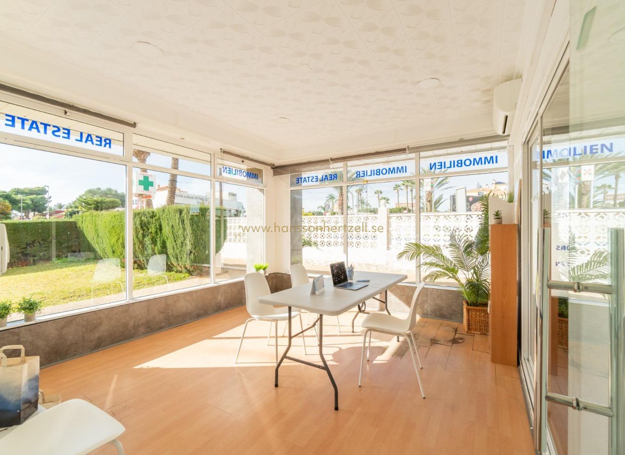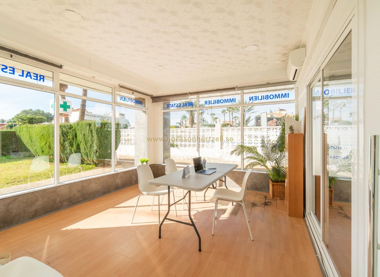 95m² kommersiell lokal uthyres i La Zenia för €1,200 per månad. Belägen på prestigefulla Avenida de la Playa, denna hörnlokal har stora skyltfönster, luftkonditionering, komplett badrum och flera oberoende kontorsrum med pentry.