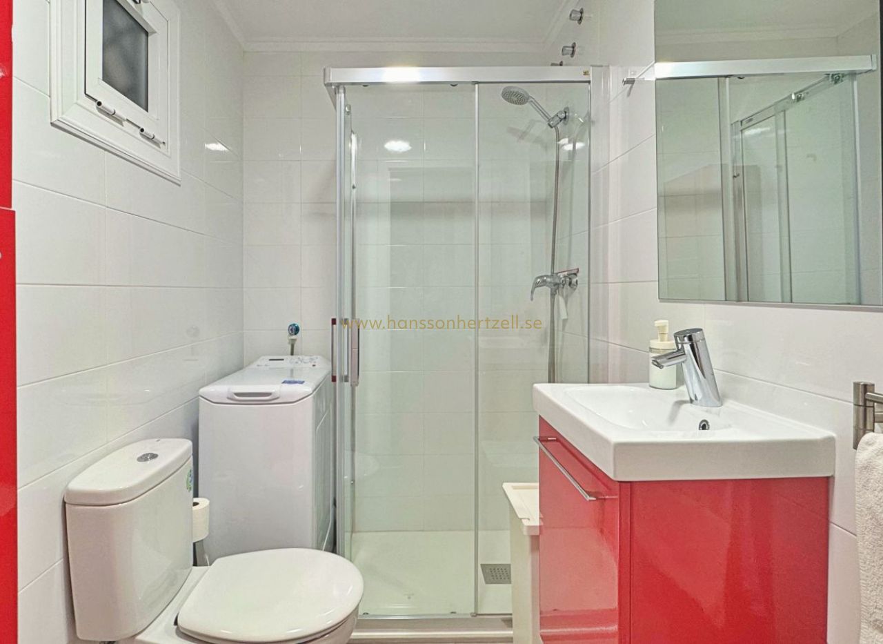 Lägenheten säljs komplett möblerad med alla apparater, luftkonditionering, larmsystem, terrassmarkiser och underjordisk parkeringsplats inkluderad.