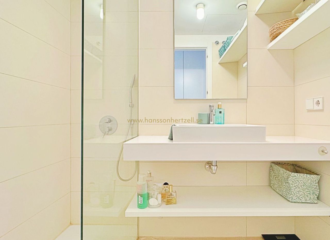 Den verkliga pärlan är det privata 75m² solariumet, perfekt för att njuta av Spaniens medelhavsklimat och spektakulär utsikt. Bostadskomplexet har infinity pool och anlagda trädgårdar som skapar en resort-liknande atmosfär på Costa Blanca.