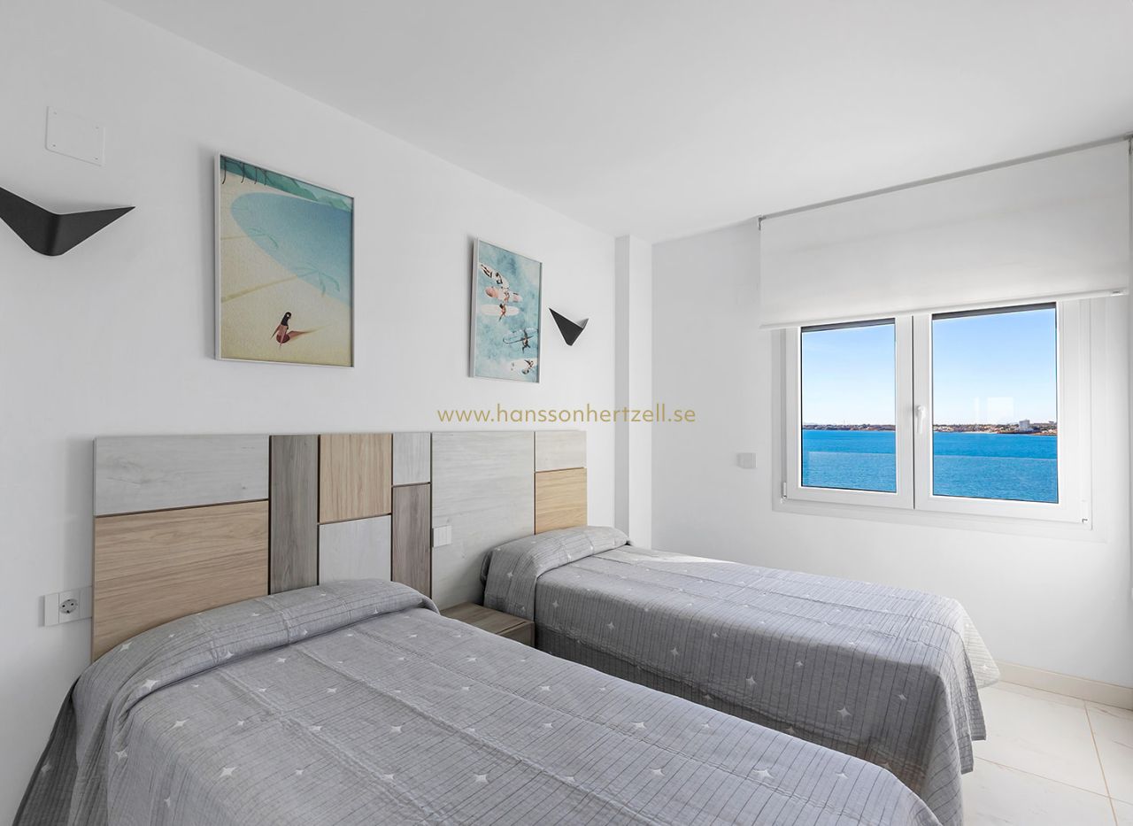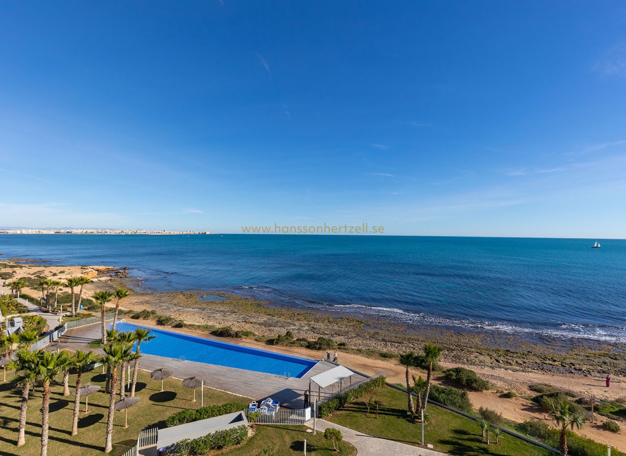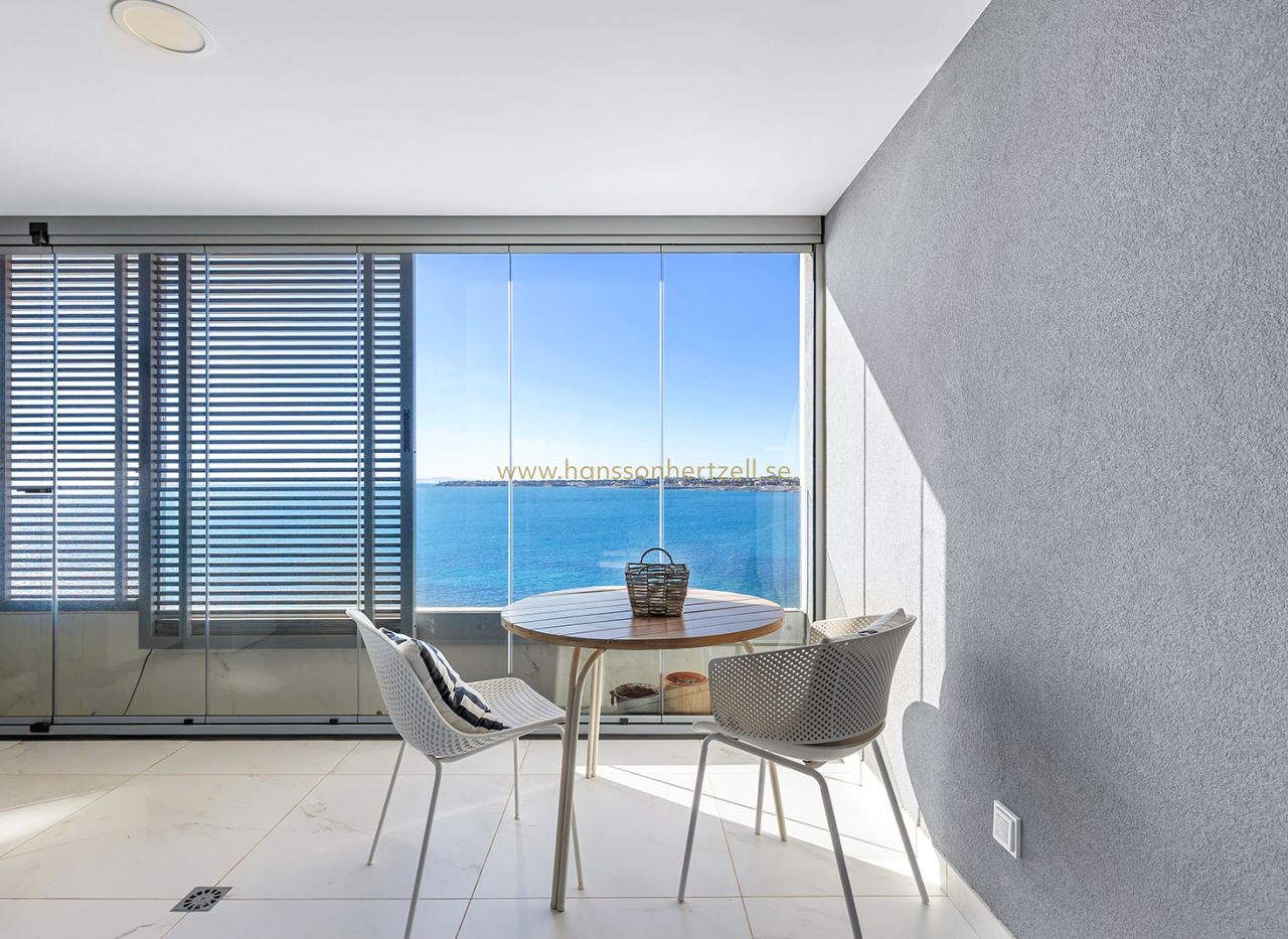 Denna 2-rums lägenhet i Torrevieja erbjuder 122m² bara 50m från stranden för €765.000. Har 16m² terrass, underjordisk parkering och förråd. Belägen i Punta Prima, 45 minuter från Alicante-Elche flygplats.