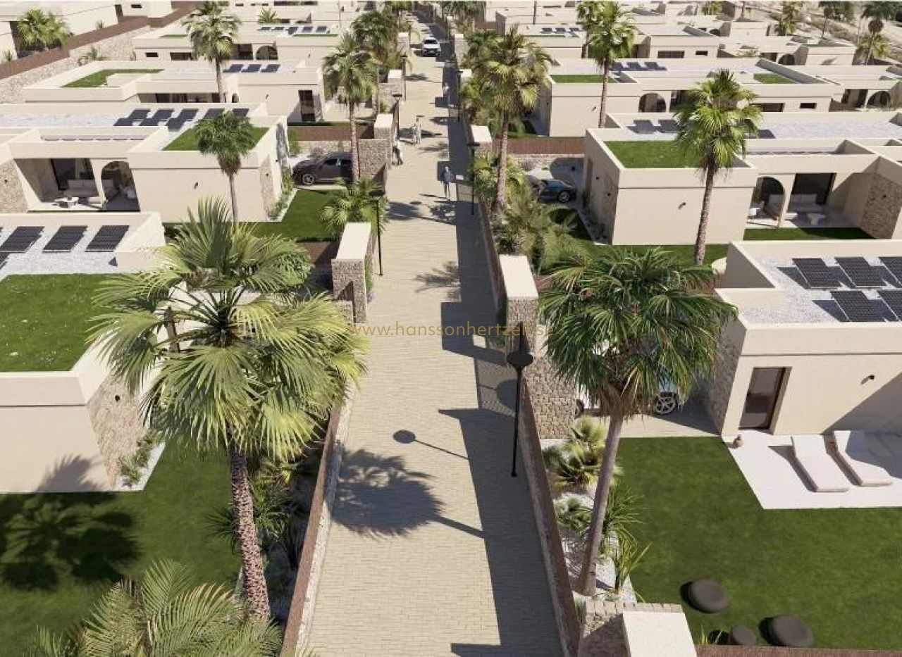Moderna villor i ett plan i Altaona Golf Resort Murcia Förstklassigt läge nära Murcia stad Upptäck denna exklusiva samling av nybyggda fristående villor i det prestigefyllda Altaona Golf Resort i Murcia. Beläget i en säker och fridfull miljö omgiven av natur och en 18-håls golfbana, erbjuder detta bostadsområde den perfekta balansen mellan lugn och tillgänglighet. Altaona Golf ligger bara 15 km från Murcias centrum, där du hittar shoppingcenter, restauranger, skolor och sjukvård, medan stränderna på Costa Calida ligger bara 20 km bort. Murcia Corvera flygplats ligger bekvämt 15 km från resorten, vilket gör detta till en idealisk plats för både permanent boende och semesterbostäder. Modern design i ett plan med privat trädgård och pool Dessa eleganta villor är designade i ett plan för maximal komfort och funktionalitet. Köpare kan välja mellan 2, 3 eller 4 sovrum och 2 eller 3 badrum plus en gästtoalett. Varje hus har ett öppet kök och vardagsrum som smidigt ansluter till utomhusterrassen och den privata anlagda trädgården med pool. En privat parkeringsplats ingår i tomten, vilket garanterar bekvämlighet och avskildhet. Energieffektiva hem med högkvalitativa funktioner Alla villor har energicertifikat klass A, vilket garanterar utmärkt energieffektivitet och låga driftskostnader. Fastigheterna har luftkonditionering med värmepump i hela huset utom i badrummen, och elektrisk golvvärme i vardagsrummet och badrummen med oberoende termostater per zon. Ett mekaniskt ventilationssystem förnyar luften i kök, badrum, tvättstuga och gästtoalett, vilket förbättrar inomhuskomforten. Köket är utrustat med en köksfläkt och elektrisk induktionshäll. LED-belysning ingår i vardagsrummet, hallen och utomhusområdena, medan de övriga rummen är förberedda för att ägaren ska kunna anpassa belysningen. Sovrummen är utrustade med USB-laddningsuttag för extra bekvämlighet. Smart hemteknik och säker gemenskap Varje villa har ett videointercomsystem, smart hemautomatisering med två intelligenta strömbrytare och motoriserad fordonstillgång till den gated community. Den privata trädgården är anlagd med ett droppbevattningssystem och en inbjudande privat pool, perfekt för att njuta av Medelhavsklimatet året runt. Avstånd till viktiga sevärdheter Altaona golfbana 0,1 km Murcias centrum 15 km Stränderna i Los Alcazares och Mar Menor 20 km Murcia Corvera flygplats 15 km Köpcentra och tjänster 10 km Hacienda Riquelme Golf Resort 12 km Din nya livsstil i Altaona Golf väntar Njut av golf, natur, säkerhet och modern komfort i en av de mest attraktiva semesterorterna i Murcia-regionen. Kontakta oss idag för att få mer information eller för att boka en visning av dessa vackra nybyggda villor.