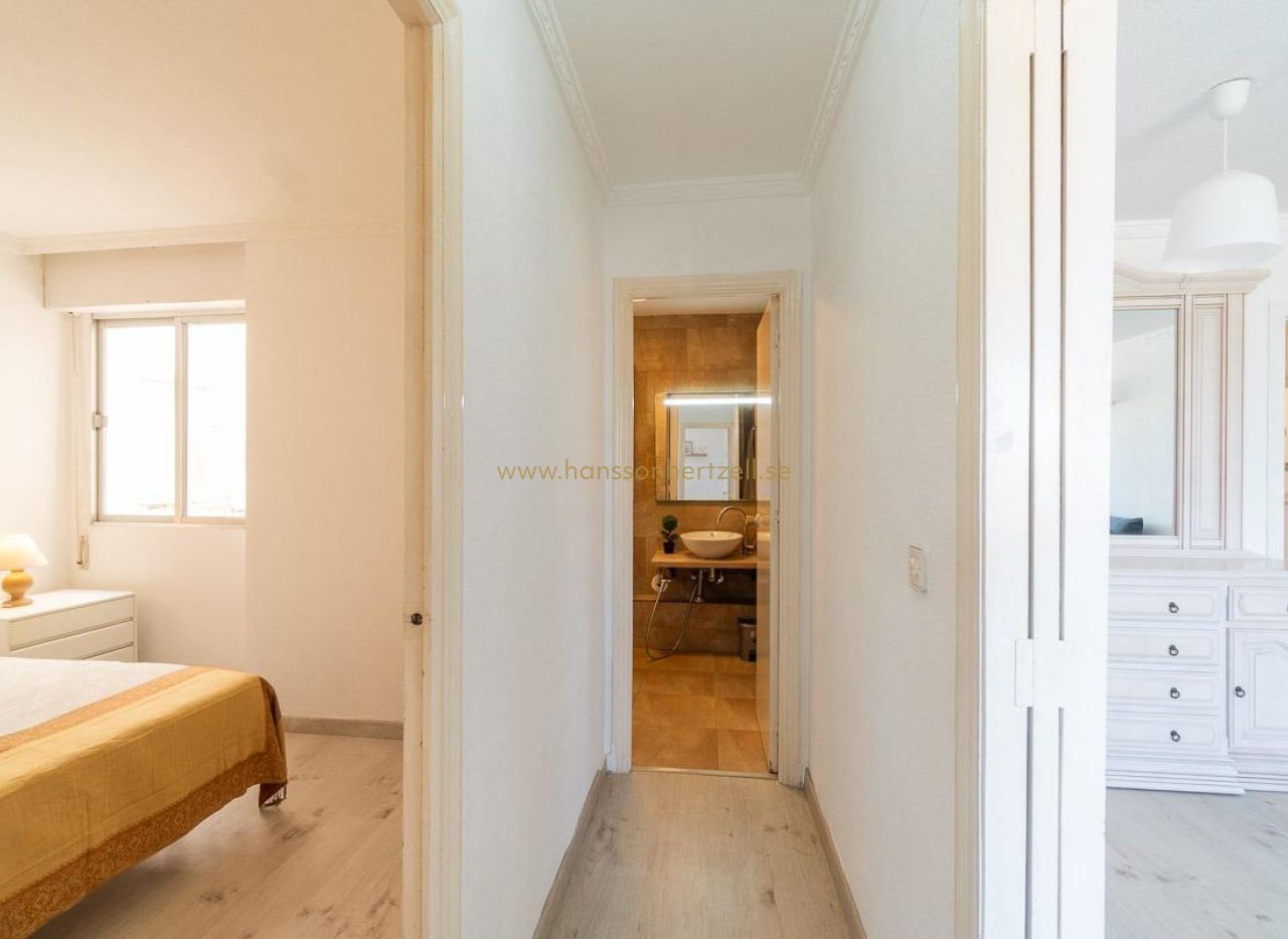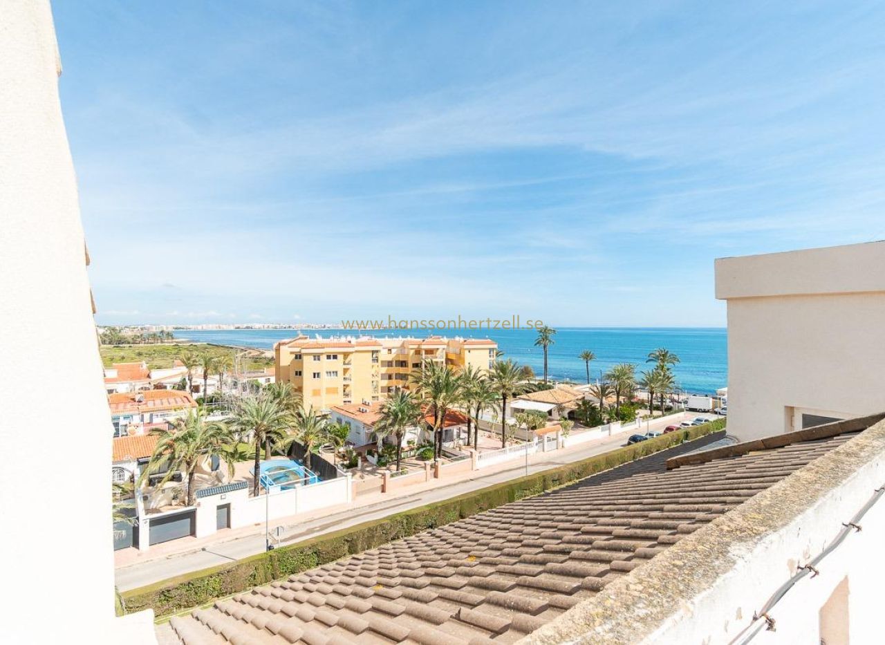 Lägenhet vid första linjen i Rocío del Mar – Punta Prima (Torrevieja)~~Upptäck denna fantastiska möjlighet i Rocío del Mar, Punta Prima, ett av de mest eftertraktade områdena på kusten i Torrevieja, idealiskt både för årsboende och semesteruthyrning. Den privilegierade placeringen, vid stranden och endast 50 meter från Medelhavet, gör detta till en unik investeringsmöjlighet.~~Bostaden har 73 m2 byggyta, fördelat på 2 rymliga dubbelsovrum och 2 kompletta badrum, vilket erbjuder en bekväm och funktionell bostadsyta. Lägenheten är delvis renoverad, redo att flytta in eller börja generera hyresintäkter direkt.~~Terrassen har integrerats i vardagsrummet, vilket skapar ett större, ljusare och mer bekvämt utrymme – perfekt för att njuta av havsutsikt och medelhavsliv året runt.~~Den har ett separat kök, perfekt för dem som uppskattar ett avskilt och praktiskt köksutrymme.~~Bostadsområdet erbjuder gemensam pool omgiven av trädgårdar, vilket skapar en lugn och trevlig miljö för familjer, samt lekplatser inom det stängda området.~~Som ett extra värde ingår garage och förråd i priset, något mycket eftertraktat vid kusten.~~Läget är utmärkt, bredvid naturområdet Cala Ferrís och mycket nära det framtida Cala de la Mosca-projektet, en av de mest värdefulla naturområdena längs kusten. Alla viktiga tjänster finns också i närheten:~~Bara ett par steg från stranden~~Nära köpcentra, mataffärer och restauranger~~Nära sjukhus och skolor~~Kollektivtrafik i närheten~~En unik investeringsmöjlighet i ett av de mest eftertraktade områdena på Costa Blanca, perfekt både som permanent bostad eller för semesteruthyrning.~~Pris: 229.000 €~Skatter och köpkostnader ingår ej (enligt gällande lagstiftning). En detaljerad redovisning av eventuella ytterligare kostnader ges före bokning.~~Vid dubbelmedling uppgår köparens professionella avgifter till 1,5 % av slutpriset, med ett minimum på 3 000 € + moms (21%), om inte annat avtalats. Dessa avgifter ingår inte i det annonserade priset.