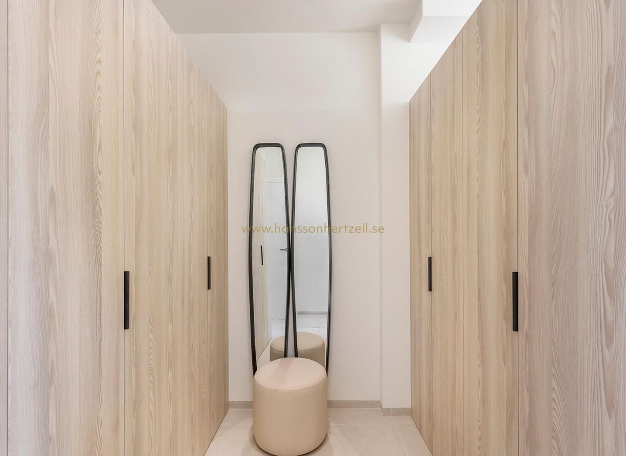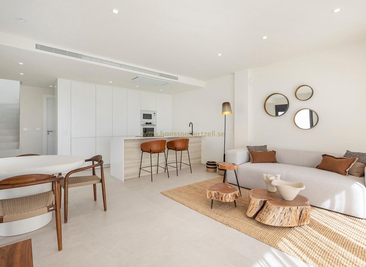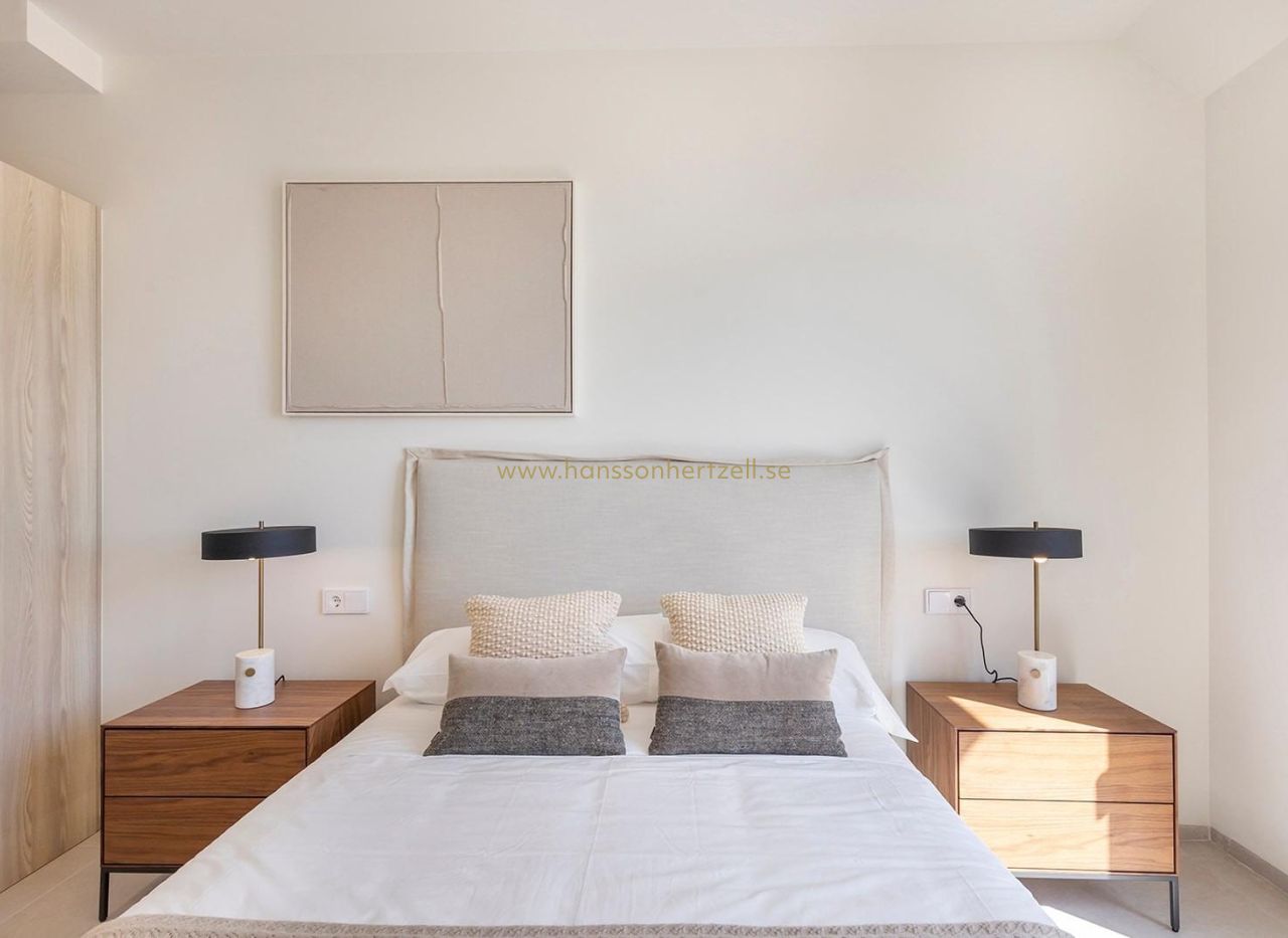 Nybyggda villor med privat pool nära La Serena Golf i Los Alcazares Exklusivt boutique-bostadsprojekt nära golf och strand Upptäck detta exklusiva bostadsprojekt med endast åtta fristående nybyggda villor, idealiskt beläget mellan La Serena Golf och den charmiga kuststaden Los Alcazares. Bostäderna ligger bara 1 500 meter från stränderna vid Mar Menor och erbjuder den perfekta kombinationen av golf, hav och medelhavsliv. Läget gör att boende kan njuta av gångavstånd till både golfbanan och stadskärnan, där ett brett utbud av restauranger, butiker, kaféer och nödvändiga tjänster finns. Los Alcazares är känt för sin avslappnade atmosfär, långa strandpromenad och grunda, varma vatten, vilket gör det till ett populärt resmål för både semesterfirare och fastboende. Moderna villor med flexibla planlösningar Dessa moderna villor finns i konfigurationer med två eller tre sovrum, med alternativ för planlösningar i en eller två våningar. Byggda på privata tomter från 200 m² är varje bostad utformad för att maximera utrymme, komfort och naturligt ljus. Alla villor har en privat pool och parkering på tomten, vilket skapar en privat och funktionell utomhusmiljö som är idealisk för att njuta av det soliga klimatet året runt. Villorna i en plan har ett privat solarium på taket, perfekt för solbad eller avkoppling med fri utsikt. Villorna i två plan har rymliga terrasser på övervåningen, vilket ger ytterligare utomhusutrymmen. Öppen planlösning och kontakt med utomhusmiljön Interiörens planlösning fokuserar på en öppen planlösning, med ljusa vardagsrums- och matplatser som smidigt ansluter till moderna kök. Stora fönster låter naturligt ljus fylla rummen samtidigt som de erbjuder direkt tillgång till terrasser och poolområden. Denna design förstärker den livsstil som kombinerar inomhus- och utomhusliv, vilket kännetecknar livet på Costa Calida, vilket gör dessa villor idealiska både för vardagsliv och för att ta emot gäster. Högkvalitativa ytbehandlingar och moderna funktioner Villorna är byggda enligt höga standarder med kvalitetsmaterial och pålitliga varumärken. Funktionerna inkluderar en förstärkt säkerhetsdörr från DIERRE, helt inbyggda garderober och moderna kök utrustade med vitvaror från BOSCH. Ytterligare specifikationer inkluderar ett aerotermiskt system för varmvatten, motoriserade fönsterluckor och en automatiserad infartsgrind. Varje detalj har noggrant övervägts för att erbjuda komfort, effektivitet och bekvämlighet. Förstklassigt läge på Costa Calida Los Alcazares erbjuder ett utmärkt läge med enkel tillgång till stränder, golfbanor och transportförbindelser. Mar Menor-stränderna ligger bara 1,5 km bort, medan La Serena Golf ligger inom gångavstånd. Andra viktiga avstånd inkluderar Murcia Corvera flygplats 35 km, Cartagena 25 km, staden Murcia 50 km och Alicante flygplats 90 km. Perfekt investering eller möjlighet till semesterbostad Dessa nybyggda villor erbjuder en sällsynt möjlighet att äga en modern fastighet i ett utmärkt läge nära både havet och golf. Kontakta oss idag för mer information eller för att boka en visning och säkra din nya villa i Los Alcazares.