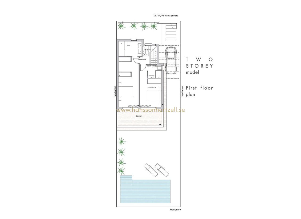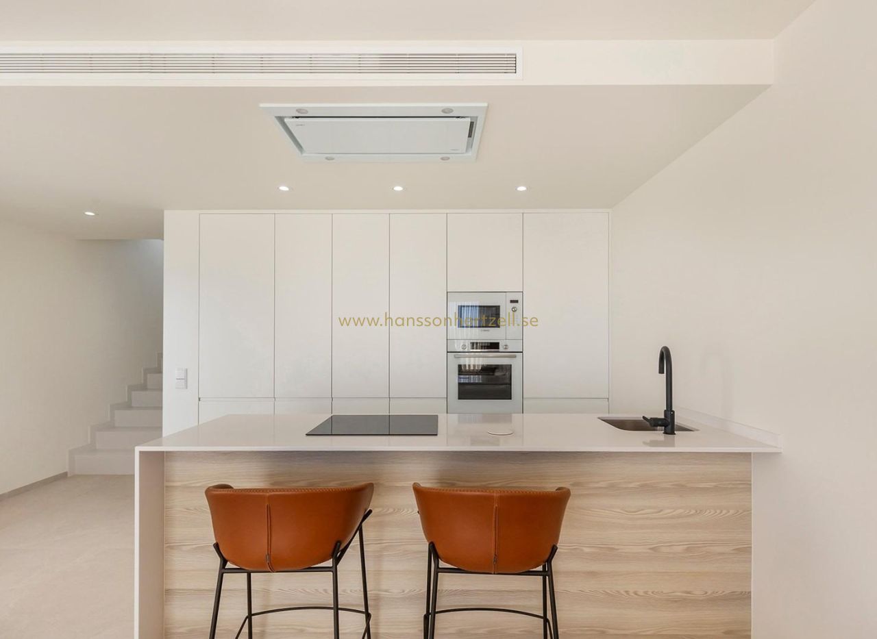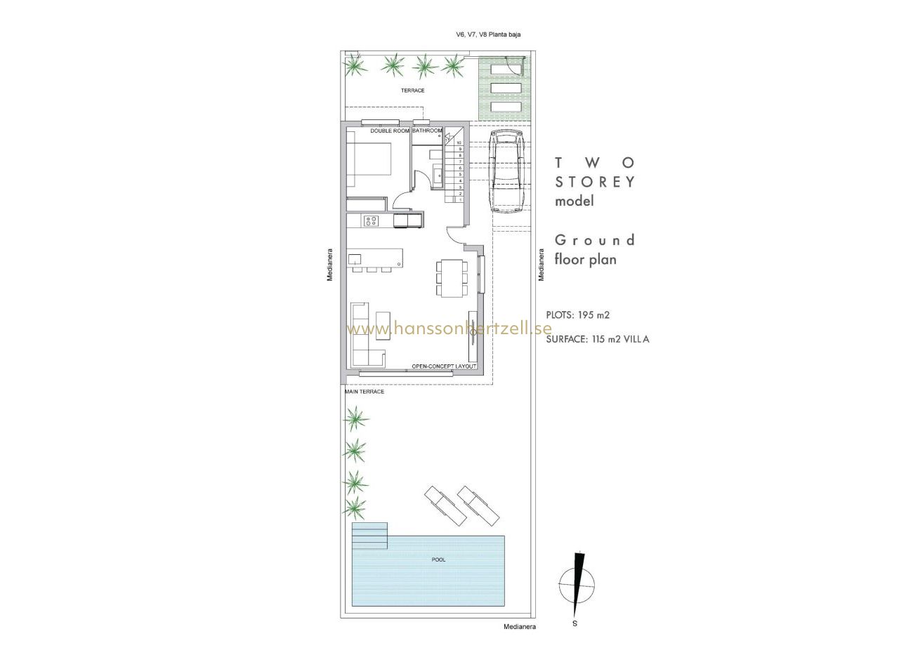 Nybyggda villor med privat pool nära La Serena Golf i Los Alcazares Exklusivt boutique-bostadsprojekt nära golf och strand Upptäck detta exklusiva bostadsprojekt med endast åtta fristående nybyggda villor, idealiskt beläget mellan La Serena Golf och den charmiga kuststaden Los Alcazares. Bostäderna ligger bara 1 500 meter från stränderna vid Mar Menor och erbjuder den perfekta kombinationen av golf, hav och medelhavsliv. Läget gör att boende kan njuta av gångavstånd till både golfbanan och stadskärnan, där ett brett utbud av restauranger, butiker, kaféer och nödvändiga tjänster finns. Los Alcazares är känt för sin avslappnade atmosfär, långa strandpromenad och grunda, varma vatten, vilket gör det till ett populärt resmål för både semesterfirare och fastboende. Moderna villor med flexibla planlösningar Dessa moderna villor finns i konfigurationer med två eller tre sovrum, med alternativ för planlösningar i en eller två våningar. Byggda på privata tomter från 200 m² är varje bostad utformad för att maximera utrymme, komfort och naturligt ljus. Alla villor har en privat pool och parkering på tomten, vilket skapar en privat och funktionell utomhusmiljö som är idealisk för att njuta av det soliga klimatet året runt. Villorna i en plan har ett privat solarium på taket, perfekt för solbad eller avkoppling med fri utsikt. Villorna i två plan har rymliga terrasser på övervåningen, vilket ger ytterligare utomhusutrymmen. Öppen planlösning och kontakt med utomhusmiljön Interiörens planlösning fokuserar på en öppen planlösning, med ljusa vardagsrums- och matplatser som smidigt ansluter till moderna kök. Stora fönster låter naturligt ljus fylla rummen samtidigt som de erbjuder direkt tillgång till terrasser och poolområden. Denna design förstärker den livsstil som kombinerar inomhus- och utomhusliv, vilket kännetecknar livet på Costa Calida, vilket gör dessa villor idealiska både för vardagsliv och för att ta emot gäster. Högkvalitativa ytbehandlingar och moderna funktioner Villorna är byggda enligt höga standarder med kvalitetsmaterial och pålitliga varumärken. Funktionerna inkluderar en förstärkt säkerhetsdörr från DIERRE, helt inbyggda garderober och moderna kök utrustade med vitvaror från BOSCH. Ytterligare specifikationer inkluderar ett aerotermiskt system för varmvatten, motoriserade fönsterluckor och en automatiserad infartsgrind. Varje detalj har noggrant övervägts för att erbjuda komfort, effektivitet och bekvämlighet. Förstklassigt läge på Costa Calida Los Alcazares erbjuder ett utmärkt läge med enkel tillgång till stränder, golfbanor och transportförbindelser. Mar Menor-stränderna ligger bara 1,5 km bort, medan La Serena Golf ligger inom gångavstånd. Andra viktiga avstånd inkluderar Murcia Corvera flygplats 35 km, Cartagena 25 km, staden Murcia 50 km och Alicante flygplats 90 km. Perfekt investering eller möjlighet till semesterbostad Dessa nybyggda villor erbjuder en sällsynt möjlighet att äga en modern fastighet i ett utmärkt läge nära både havet och golf. Kontakta oss idag för mer information eller för att boka en visning och säkra din nya villa i Los Alcazares.