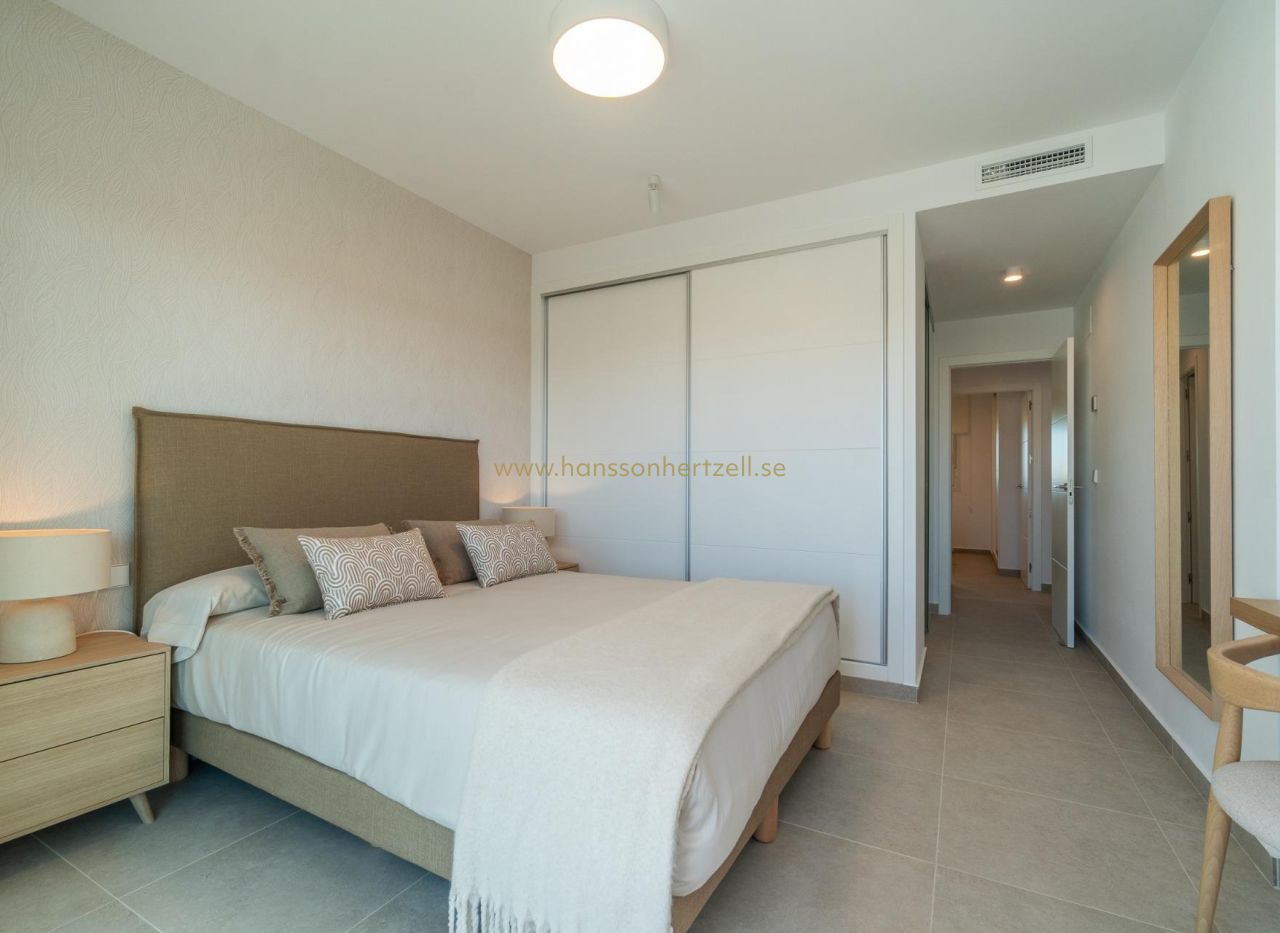 Upptäck ett exklusivt nyproduktionsprojekt i Playa Flamenca, Orihuela Costa, utformat för dig som söker ett modernt och välbeläget boende med stor potential både för eget bruk och som investering på Costa Blanca. Projektet utvecklas i flera etapper, vilket ger möjlighet att förvärva nyproducerade bostäder i olika byggfaser med god värdeutvecklingspotential.~~Bostadsområdet har redan ett första hus som är färdigställt och helt slutsålt, med gemensam pool i drift. Hus 2 är i slutfasen, hus 3 är under uppförande (invändiga väggar), och hus 4 — där dessa bostäder ingår — befinner sig i grund- och stomfas. Detta gör hus 4 till ett mycket intressant alternativ för den som vill köpa till ett konkurrenskraftigt pris i ett område under stark utveckling.~~Bostäderna har en modern, funktionell och ljus design med rymliga terrasser som är perfekta för att njuta av det medelhavska klimatet året runt. De finns med 2 eller 3 sovrum och erbjuder välplanerade ytor, öppna kök som kan anpassas efter egen smak samt kvalitetsmaterial som PVC-fönster med dubbelglas, klinkergolv och förinstallation av luftkonditionering. Parkeringsplats och förråd ingår.~~När projektet är färdigställt kommer området att erbjuda flera gemensamma pooler, gröna trädgårdsområden och ytor för avkoppling, allt inom ett privat och tryggt bostadsområde.~~Läget är en av de stora fördelarna, endast 500 meter från stranden och nära alla bekvämligheter. Det ligger nära Mercadona och Centro Comercial La Zenia Boulevard samt omges av restauranger, butiker, nöjen, vårdcentraler, skolor och golfbanor.~~Sammanfattningsvis en bostad som kombinerar läge, kvalitet och investeringspotential på bästa sätt.~~Pris: 395 000 €*. Skatter och köpkostnader ingår INTE (enligt gällande lagstiftning).~En detaljerad specifikation av tillkommande kostnader lämnas före bokning.~*Priset kan innehålla skrivfel; vänligen kontrollera med byggherren.