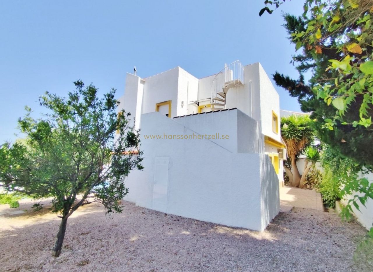Till ett pris av 425 000 € och en boyta på 187 m² landar priset per kvadratmeter på 2 272 €/m². Det genomsnittliga marknadspriset för friliggande villor i San Miguel de Salinas ligger på ungefär 1 900 €/m². Den prisskillnaden motiveras av tydligt verifierbara faktorer: en stor privat tomt om 625 m², privat pool, takterrass med utsikt över hav och saltsjöar, fullt möblerat och inflyttningsklart skick samt den unika möjligheten att generera uthyrningsinkomst från två separata bostäder. Fastigheter med denna kombination av yta och läge är en ovanlig företeelse i området.