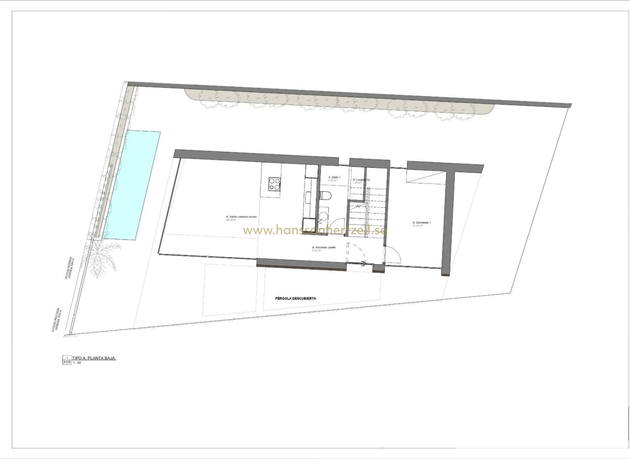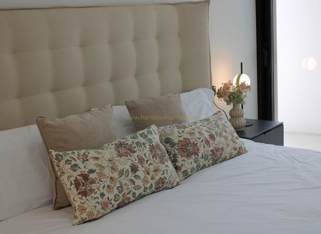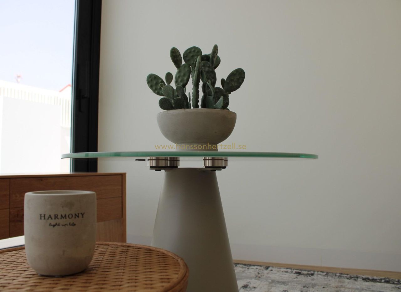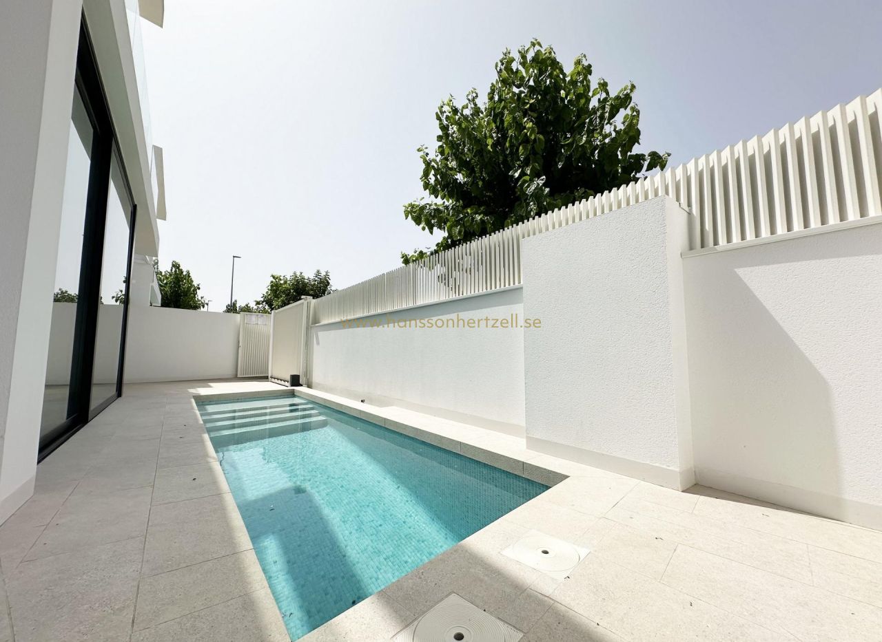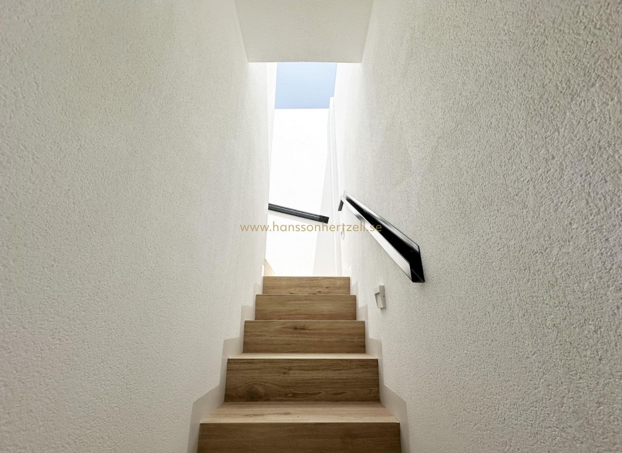 Exklusiva nybyggda villor 300 m från stranden i Torre de la Horadada Lyxigt kustliv i ett utmärkt läge Upptäck detta exklusiva nybyggnadsprojekt i Torre de la Horadada, en av de mest eftertraktade kuststäderna i södra Alicante. Dessa villor ligger bara 300 m från Medelhavet och inom gångavstånd från butiker, restauranger och dagliga tjänster, och erbjuder en exceptionell möjlighet att njuta av Costa Blancas livsstil. Torre de la Horadada är känt för sin avslappnade atmosfär, vackra strandpromenad och fina sandstränder, vilket gör det idealiskt för både permanent boende och semesteranvändning. Sista nyckelfärdiga villan fullt utrustad Detta boutique-projekt består av endast fyra fristående villor, varav den sista enheten är nyckelfärdig och fullt möblerad. Villan levereras komplett med möbler, vitvaror och luftkonditionering, så att du kan flytta in omedelbart och börja njuta av ditt nya hem vid havet. Villan ligger på en privat tomt på cirka 207 m2 och erbjuder cirka 130 m2 boyta fördelat på bottenvåningen, första våningen och ett privat solarium på taket. Modern design med privat pool och solarium Villan har en modern design med öppna och ljusa utrymmen. Inuti hittar du tre rymliga sovrum och tre badrum, ett vardagsrum med matplats och öppet kök, samt direkt tillgång till trädgården och den privata poolen. Solterrassen på taket är en idealisk plats att koppla av, sola eller njuta av den öppna utsikten, vilket skapar ett perfekt utomhusvardagsrum året runt. Högkvalitativa specifikationer och komfort Fastigheten är byggd enligt höga standarder och har en förstärkt entrédörr, motoriserade fönsterluckor i sovrummen, en privat pool och ett grundläggande hemautomatiseringssystem för elektronisk styrning. Luftkonditionering med kanaler är fullt installerad, vilket garanterar komfort under alla årstider. En privat parkeringsplats på tomten ger extra bekvämlighet och säkerhet. Torre de la Horadada och omgivningar Torre de la Horadada erbjuder en charmig kustmiljö med en lång strandpromenad, småbåtshamnar och ett brett utbud av restauranger, barer och lokala butiker. De närliggande stränderna Torre de la Horadada och Mil Palmeras är bland de bästa i området, perfekta för simning, vattensporter, snorkling och dykning. Området har bra förbindelser och är omgivet av golfbanor, shoppingcenter och fritidsaktiviteter. Avstånd till viktiga sevärdheter Stranden: 0,3 km Shoppingområdet Plaza Nueva: 0,2 km Lo Romero Golf: 7 km Marinan i Torre de la Horadada: 1,5 km Murcia Corvera flygplats: 45 km Alicante flygplats: 50 km Ditt nya hem vid Medelhavet väntar Denna nyckelfärdiga villa i Torre de la Horadada är ett unikt tillfälle att äga ett modernt hem bara några steg från stranden. Kontakta oss idag för att boka en visning och säkra denna exceptionella nybyggda villa på Costa Blanca.