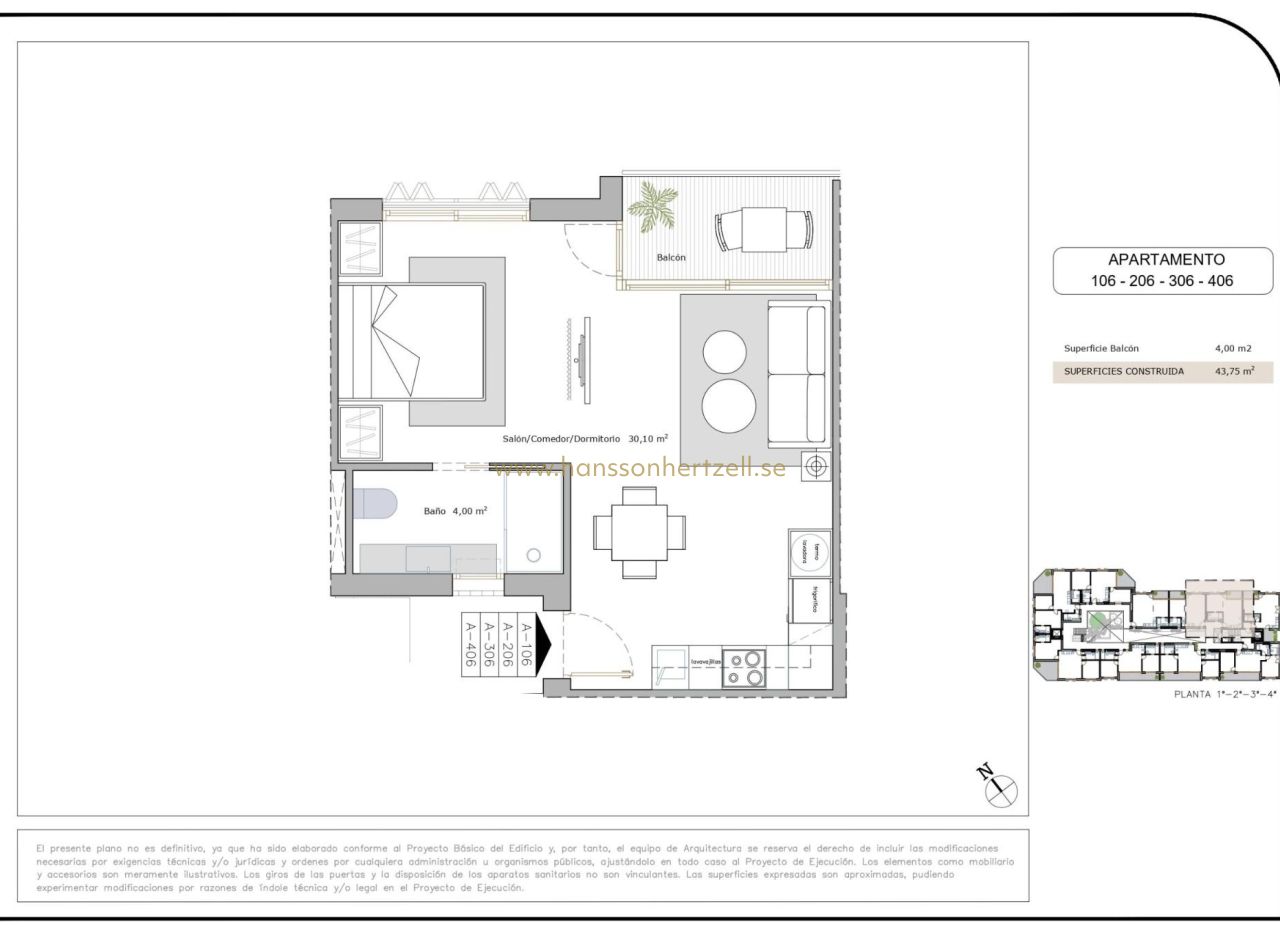 Turistlägenheter nära stranden i Lo Pagán-San Pedro del Pinatar: Investeringsmöjlighet på Costa Cálida Förstklassigt läge vid kusten i Lo Pagán Upptäck detta nya bostadsprojekt med 44 fullt möblerade turistlägenheter i Lo Pagán, San Pedro del Pinatar, en av de mest populära destinationerna på Costa Cálida. Bara 800 meter från stranden erbjuder detta bostadskomplex den perfekta balansen mellan avkoppling, kustliv och investeringspotential. Området är känt för sin närhet till både Mar Menor och Medelhavet, med lugna vatten, småbåtshamnar och ett brett utbud av vattensporter. Lo Pagán har också en livlig strandpromenad med restauranger, kaféer och butiker, samt de berömda naturliga lerbaden som lockar besökare året runt. Moderna lägenheter utformade för komfort och flexibilitet Projektet erbjuder en mängd olika planlösningar för att passa olika behov. Köpare kan välja mellan rymliga studiolägenheter med 1 badrum och terrass, eller större lägenheter med 2 sovrum och 2 badrum, inklusive ett badrum i anslutning till sovrummet, alla med privata utomhusterrasser. Varje lägenhet har noggrant utformats för att maximera komfort, funktionalitet och naturligt ljus. Alla bostäder levereras fullt möblerade och utrustade med vitvaror, vilket gör dem redo för omedelbar inflyttning eller uthyrning. Interiören präglas av en modern stil med högkvalitativa ytbehandlingar, vilket garanterar en bekväm och stilfull boendemiljö bara några minuter från havet. Högkvalitativa funktioner och smart boende Dessa lägenheter har fullt installerad luftkonditionering, aerotermiskt system för varmvatten och fullt utrustade badrum med möbler, speglar och duschväggar. Dessutom har byggnaden och de enskilda bostäderna smarta låssystem, vilket ökar säkerheten och bekvämligheten. Vissa lägenheter har även parkeringsplatser i källaren eller utomhus samt förråd, beroende på fastigheten. Resortliknande bekvämligheter för avkoppling och välbefinnande Boende och gäster kan njuta av utmärkta gemensamma faciliteter, inklusive en takpool med solterrass, perfekt för avkoppling under Medelhavssolen. Anläggningen har även ett gym och ett café på plats, vilket skapar en bekväm och social miljö som är idealisk för både semester och längre vistelser. Utmärkta förbindelser och sevärdheter i närheten Lo Pagán-stranden 0,8 km Mar Menor 0,8 km San Pedro del Pinatar centrum 2 km Dos Mares Shopping Center 3 km Lo Romero Golf 10 km Murcias internationella flygplats 35 km Alicantes flygplats 75 km San Pedro Marina 2 km Smart investering med uthyrningsförvaltning Dessa turistlägenheter erbjuder en utmärkt investeringsmöjlighet, med avdragsgill moms och ett professionellt förvaltningsbolag som sköter uthyrningen när fastigheten inte används. Detta garanterar en bekymmersfri ägarupplevelse och attraktiva hyresintäkter. Säkra din fastighet på Costa Cálida Oavsett om du letar efter ett fritidshus, en hyresinvestering eller båda, erbjuder dessa lägenheter i Lo Pagán läge, kvalitet och lönsamhet. Kontakta oss idag för mer information eller för att boka en visning och säkra din nya fastighet vid havet.